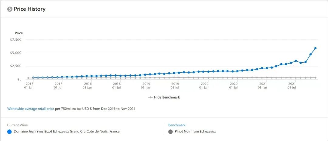 当今全球富豪醉疯狂追捧的勃艮第名庄Bizot大家肯定不陌生啦!近4年来已经疯涨百倍(比英伟达股票还疯狂),现在他家随便一个村级酒都能价格上万,地位直逼Leroy老太太。