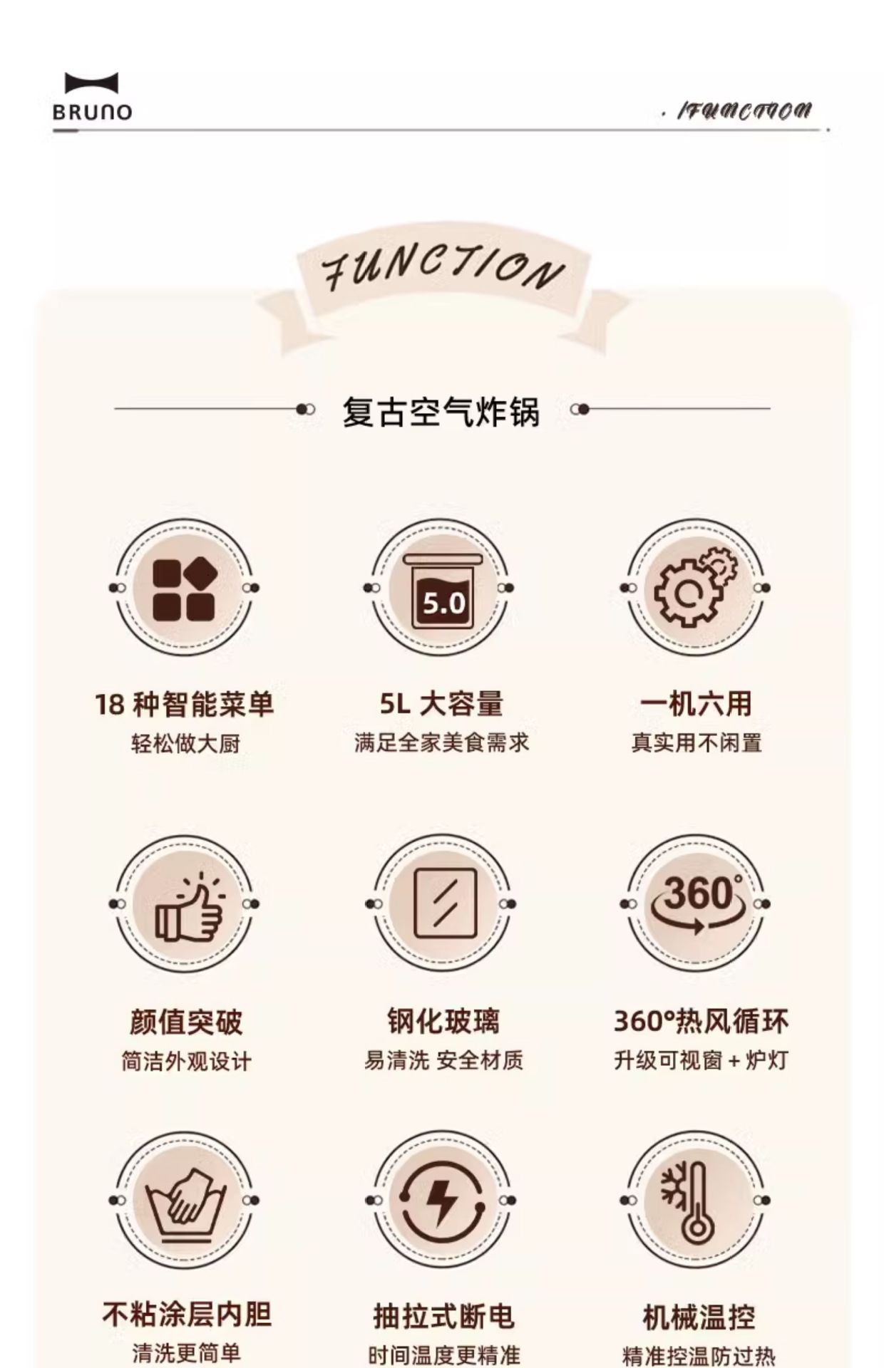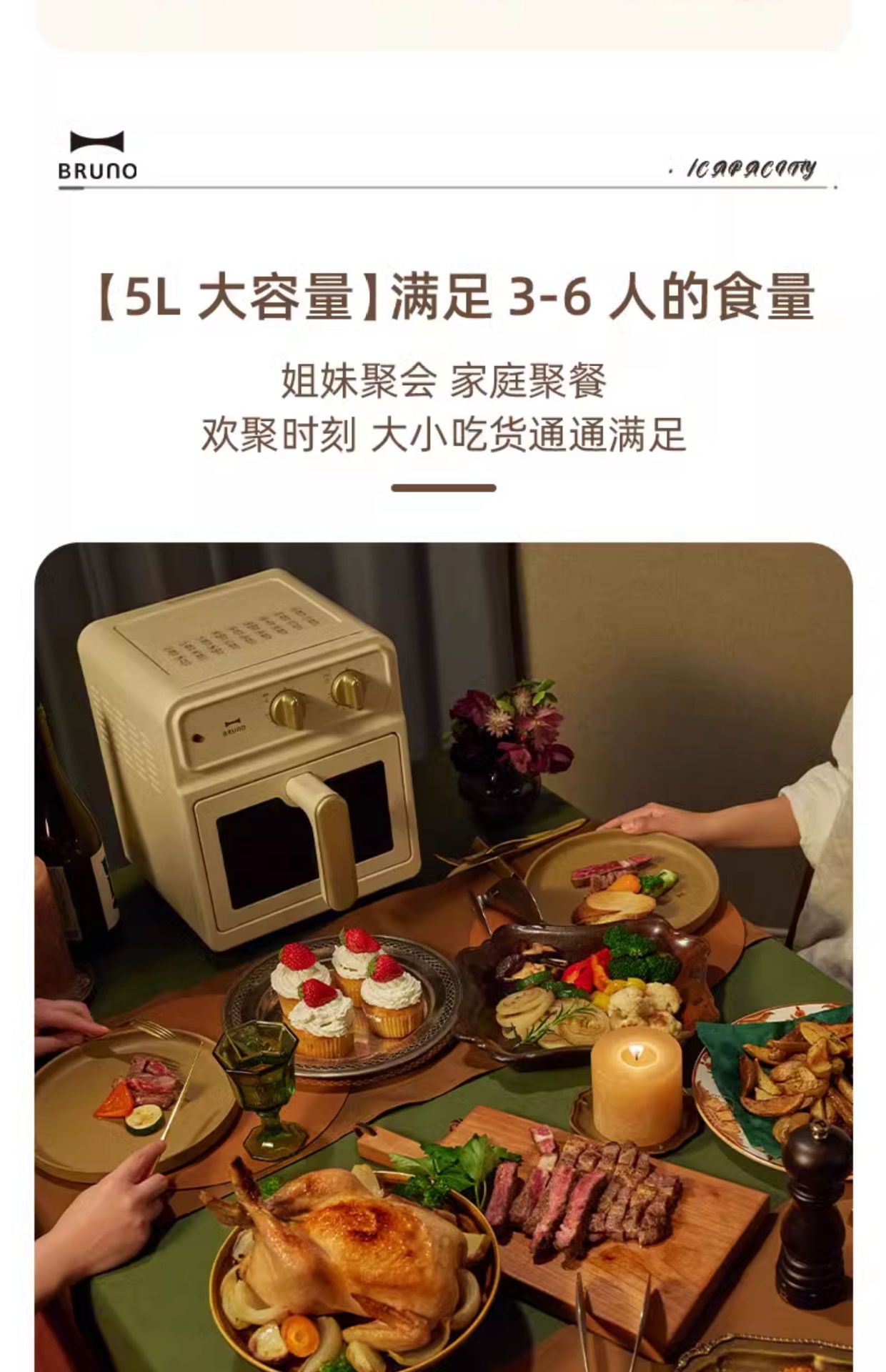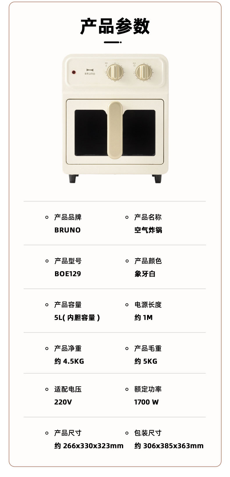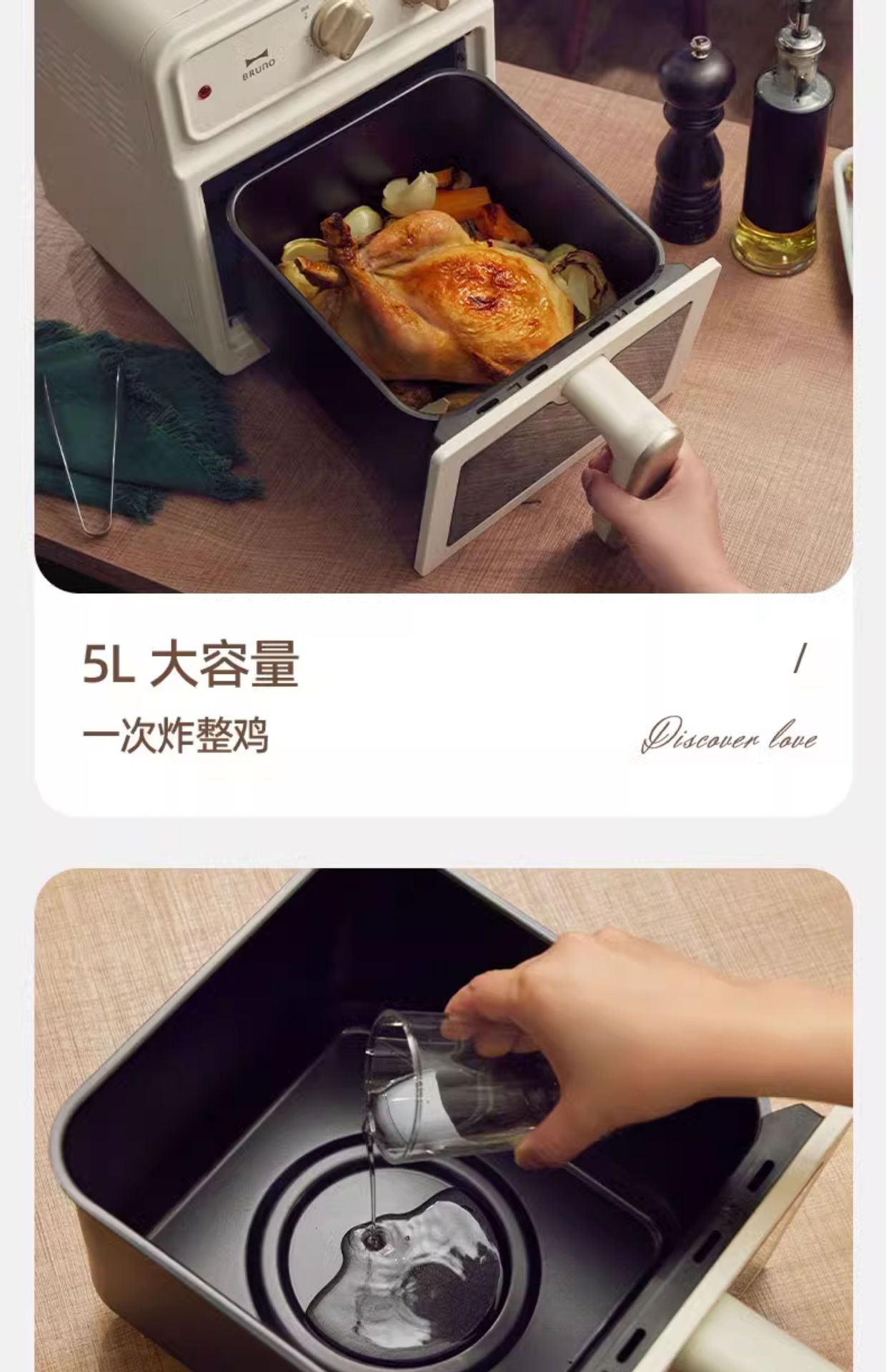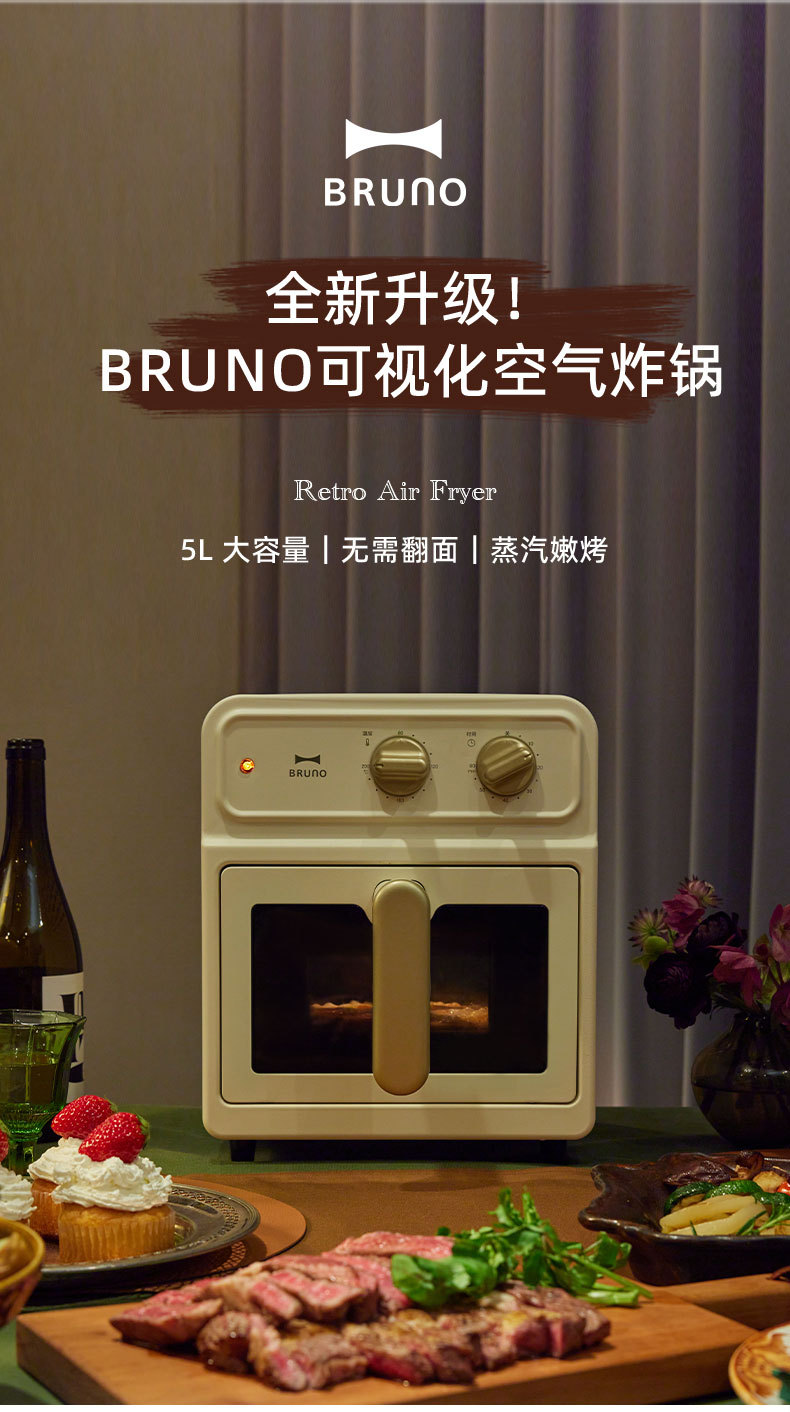 BRUNO空气炸锅 5L家用可视化全自动炸锅 大容量新款多功能电炸锅