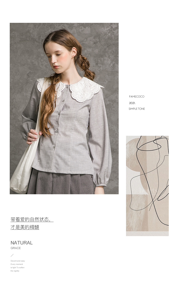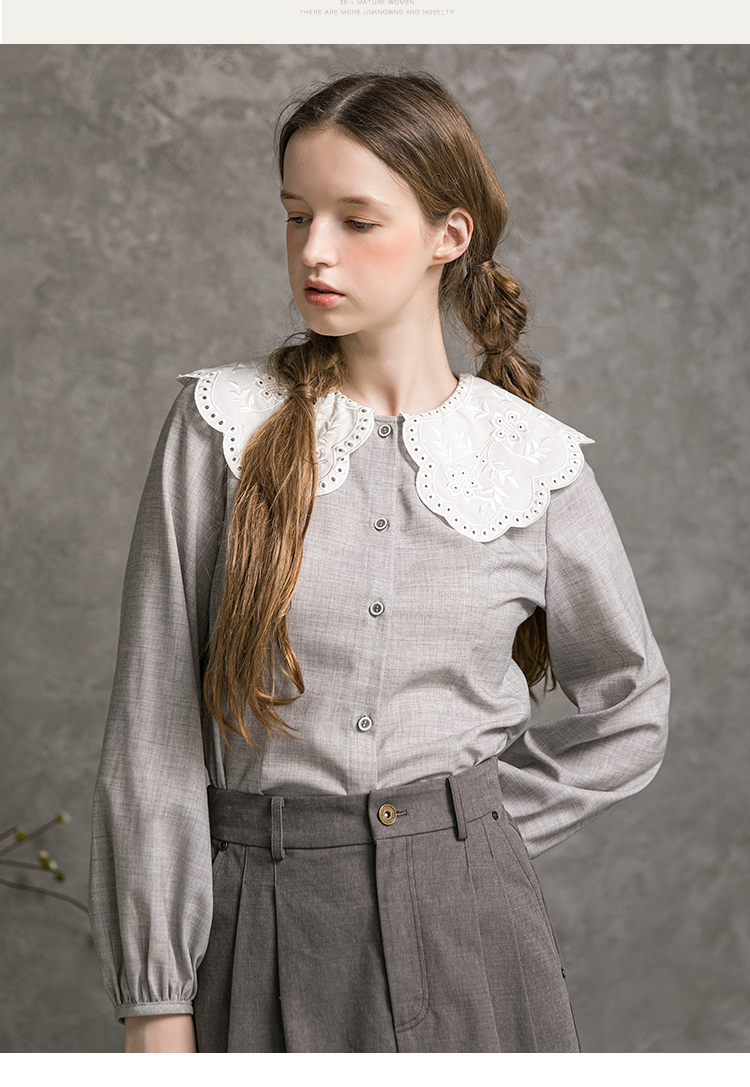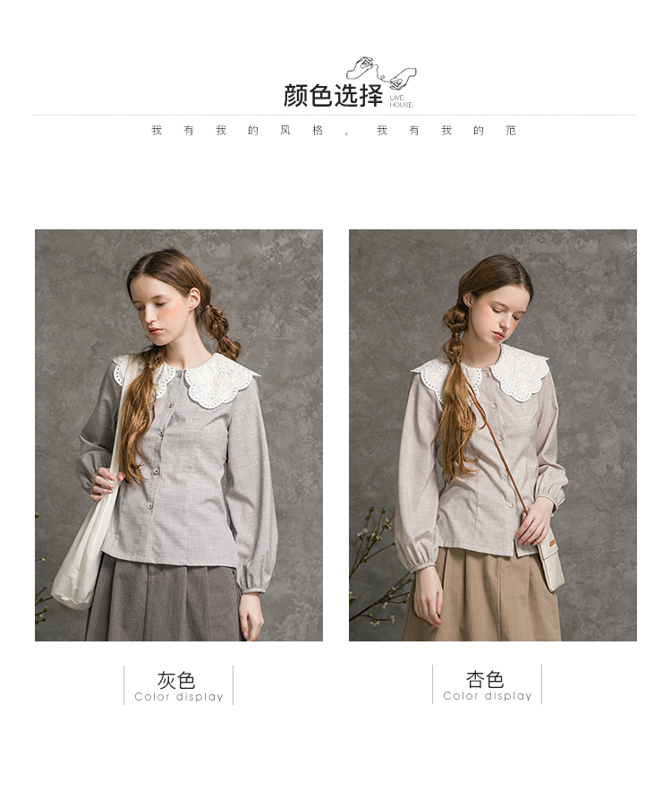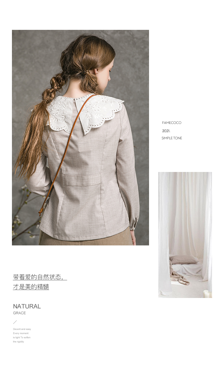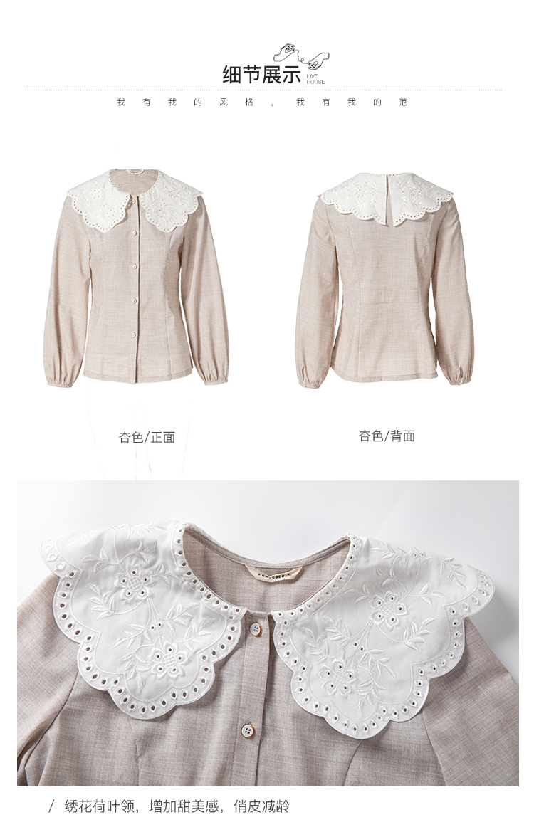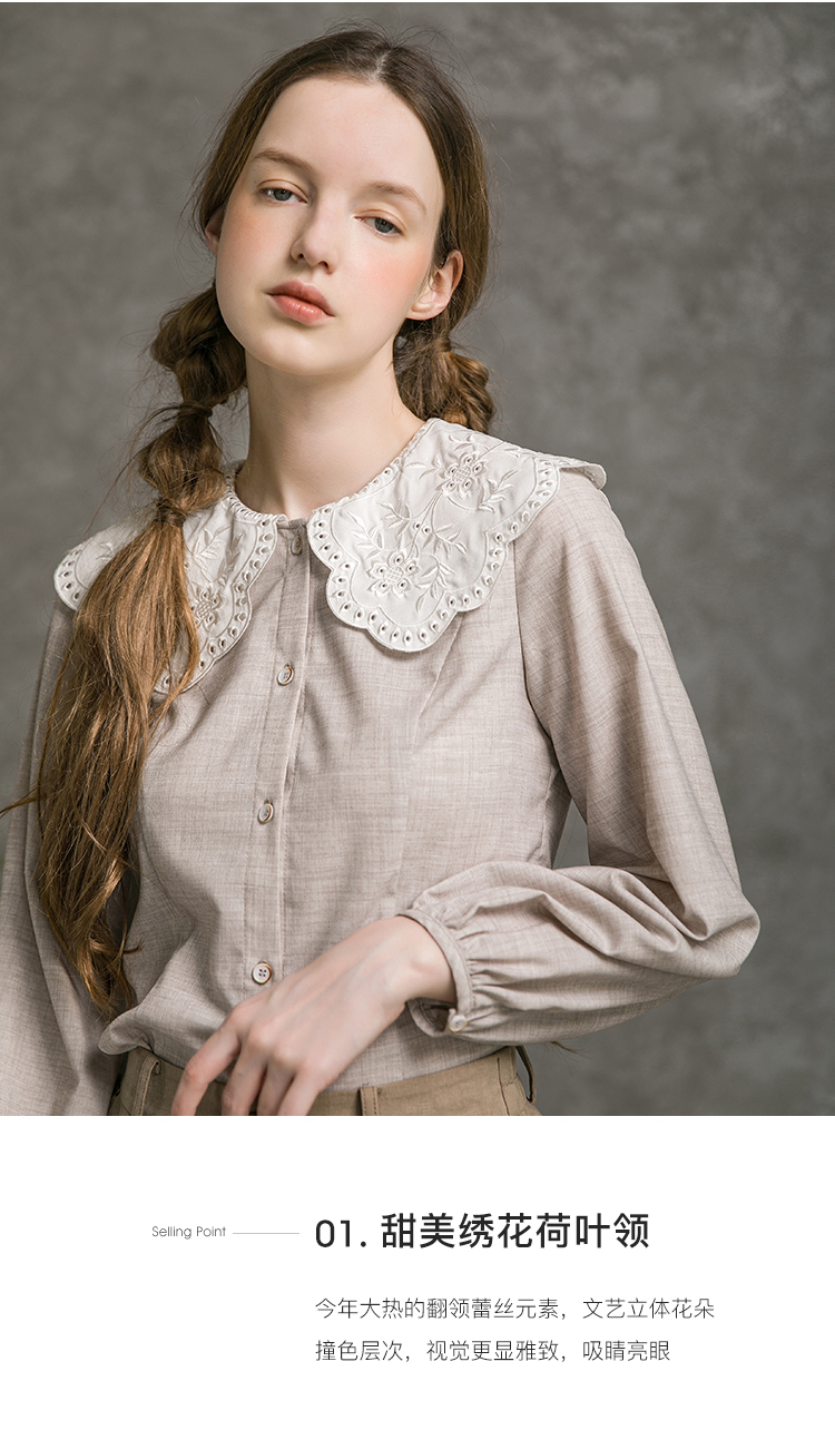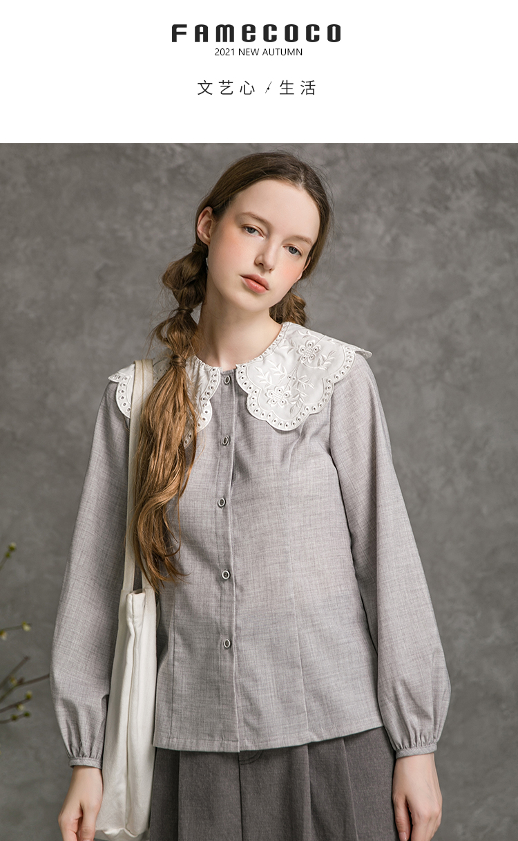 Famecoco范可儿荷叶领衬衫女秋灯笼袖甜美减龄衬衣F216BH019