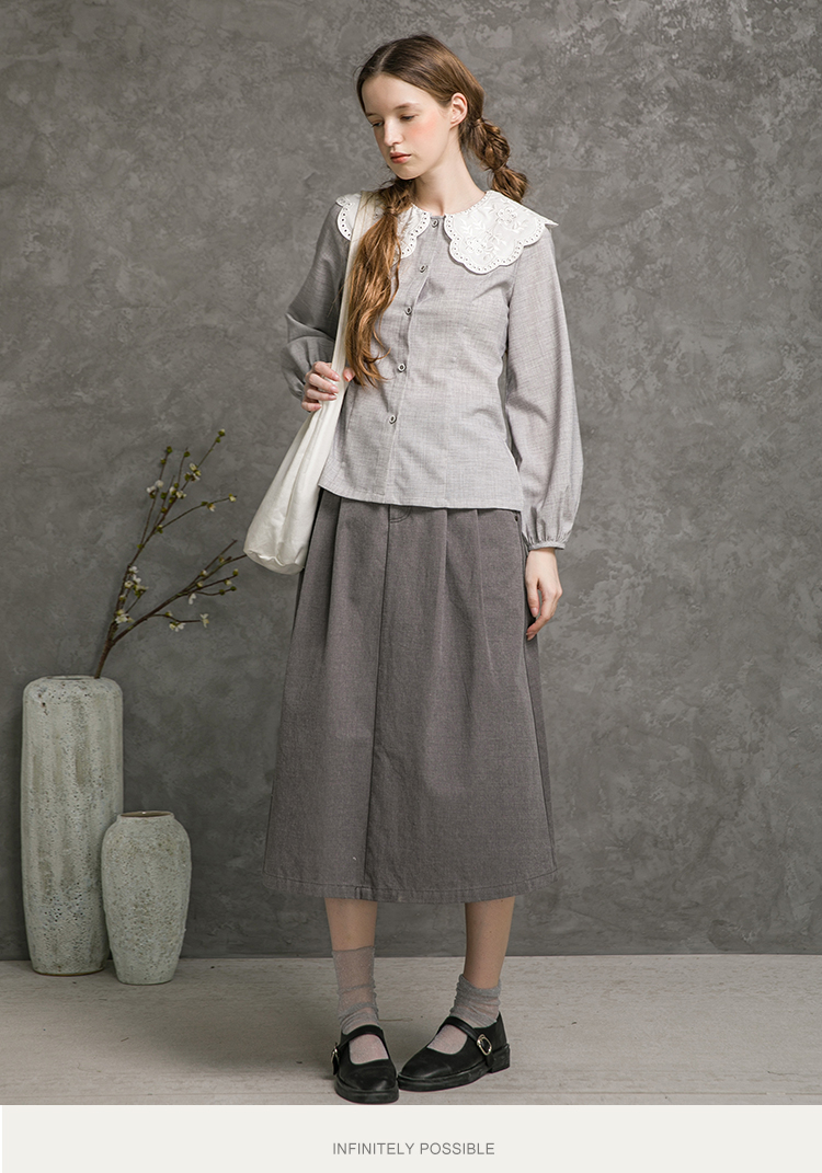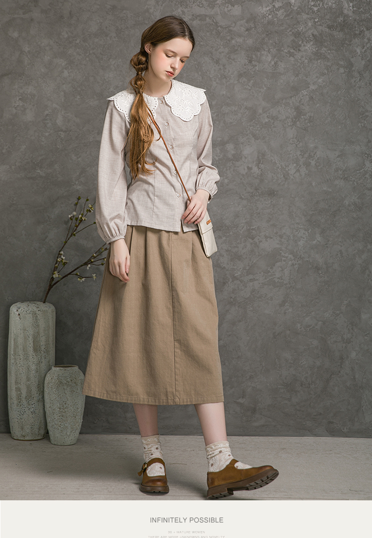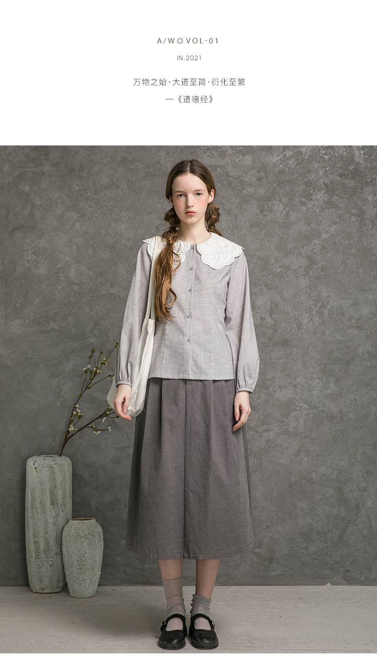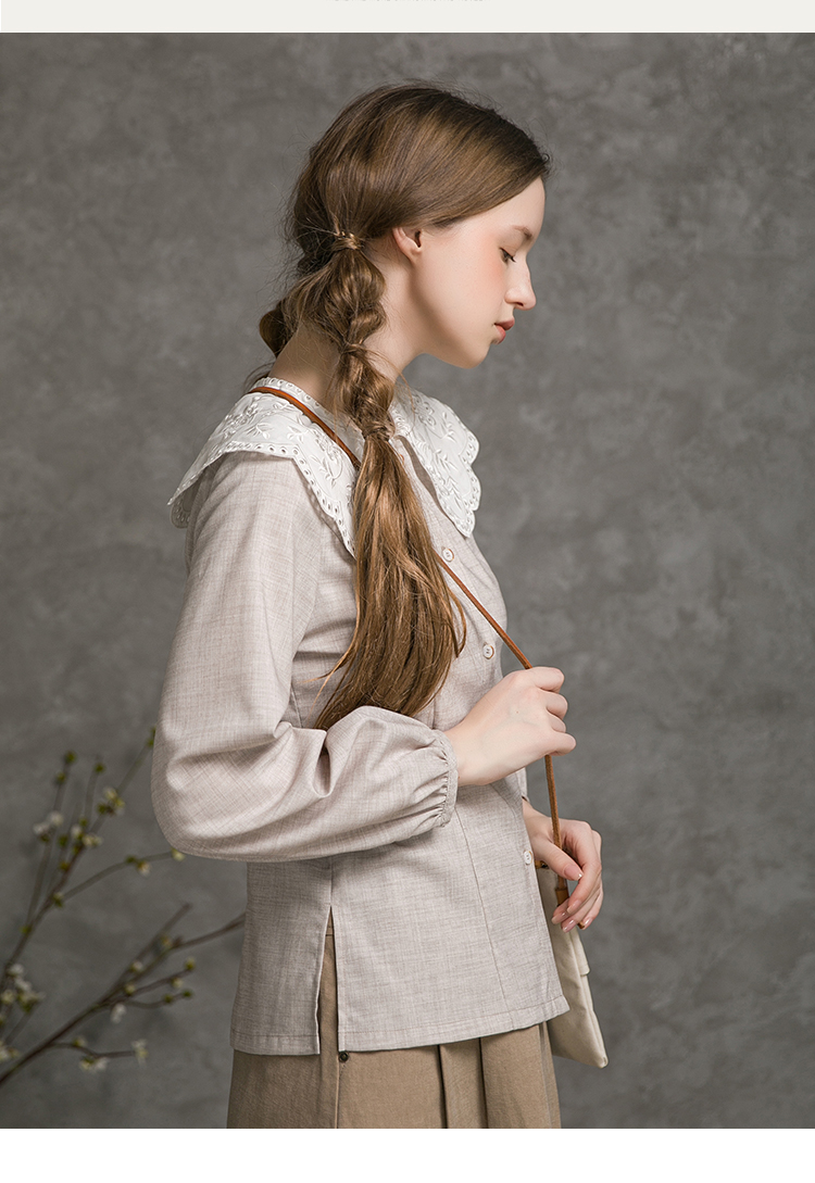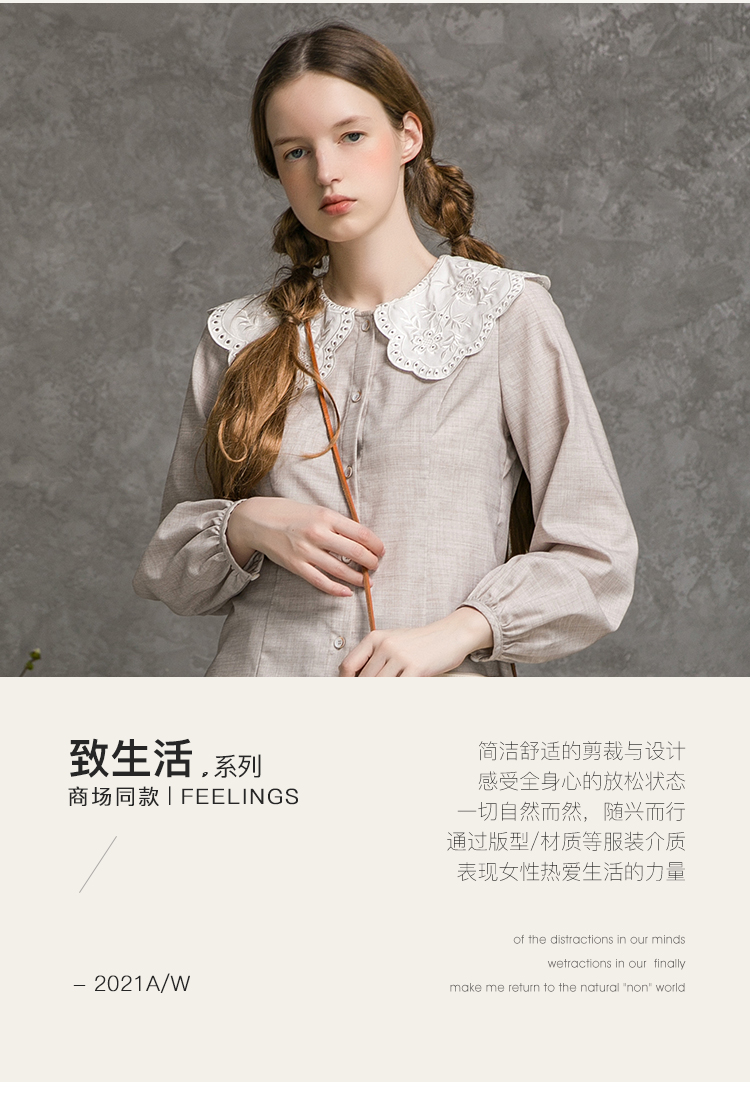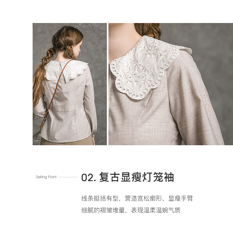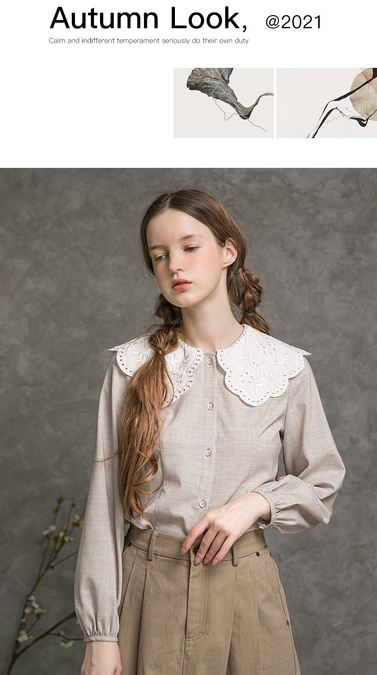 Famecoco范可儿荷叶领衬衫女秋灯笼袖甜美减龄衬衣F216BH019