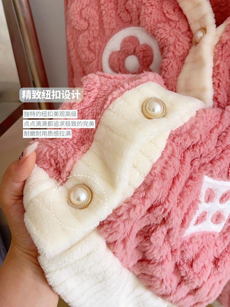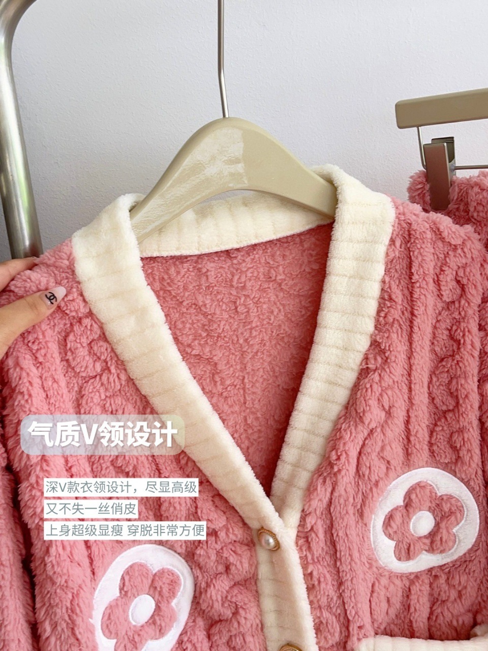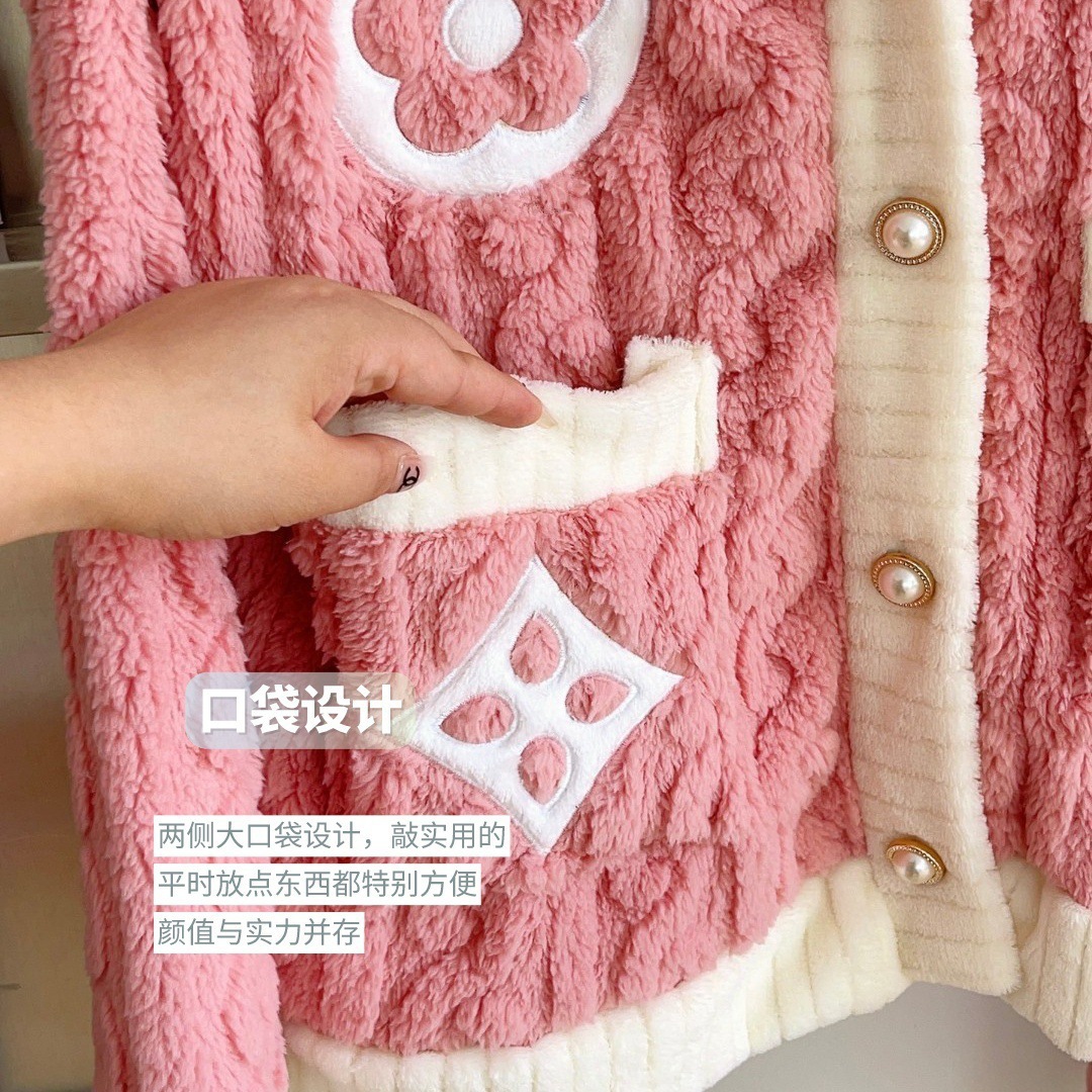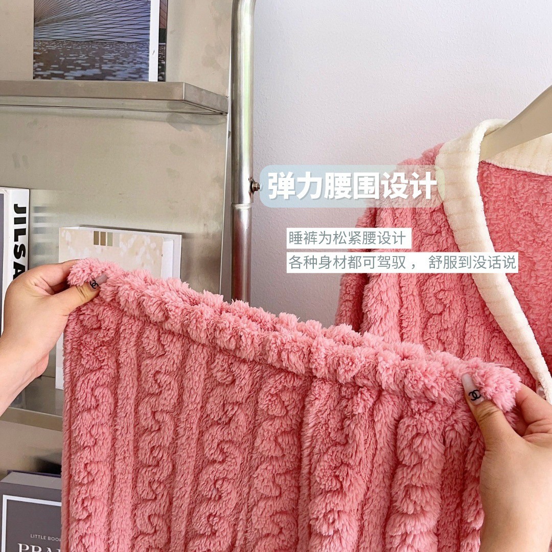 【蓄热恒温!不跑绒、不掉绒】耐磨耐用,质感拉满,纯色提花舒棉绒睡衣套装女秋冬季加厚保暖长袖珊瑚绒家居服可外穿。rc