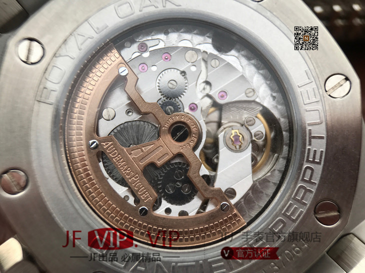 JF爱彼皇家橡树26574。功能:日期显示、星期显示、月份显示、年历显示、万年历、月相进口机克隆原装5134自动机械机芯,