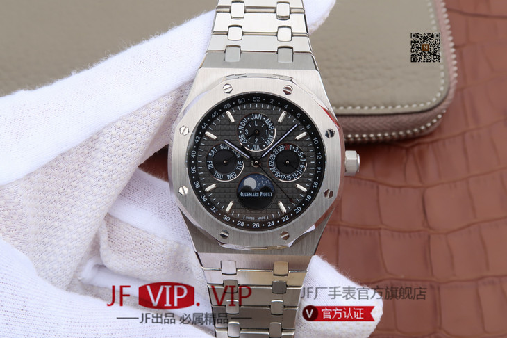 JF爱彼皇家橡树26574。功能:日期显示、星期显示、月份显示、年历显示、万年历、月相进口机克隆原装5134自动机械机芯,41毫米,男士手表腕表