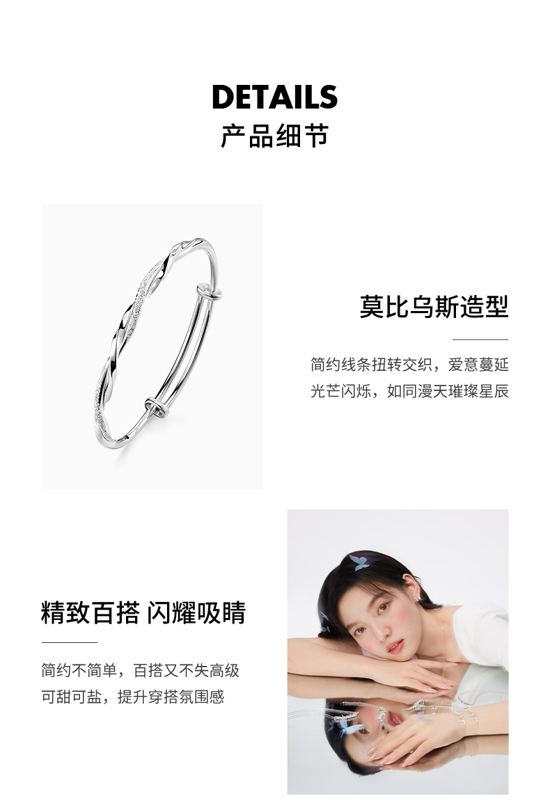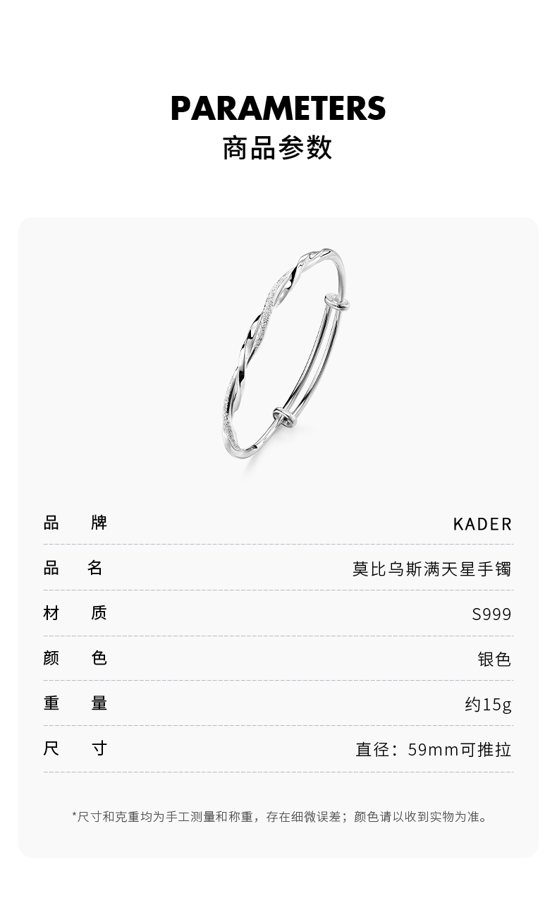 KADER卡蒂罗 满天星手镯 999银 女莫比乌斯环轻奢小众生日礼物送闺蜜送女友