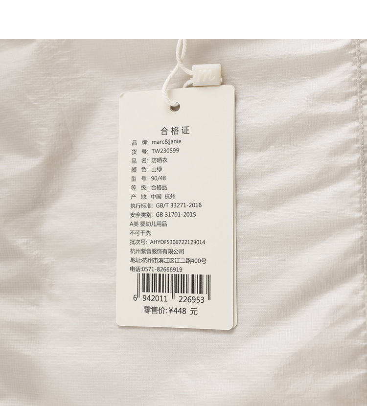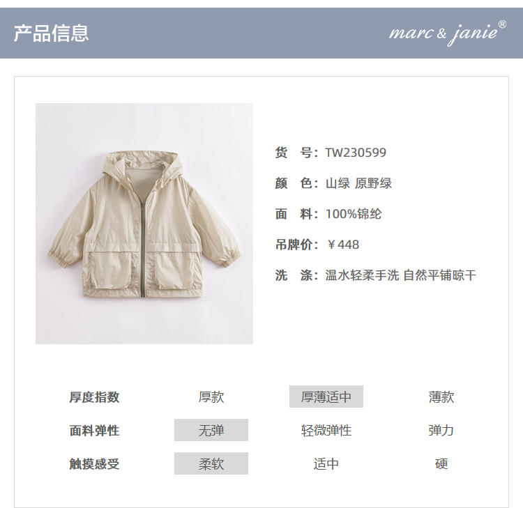 【真正防紫外线】马克珍妮夏装新款 男童轻薄防晒衣230599