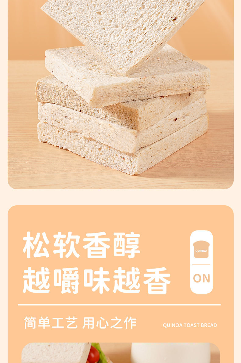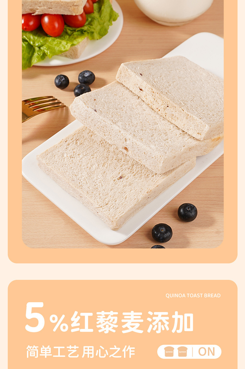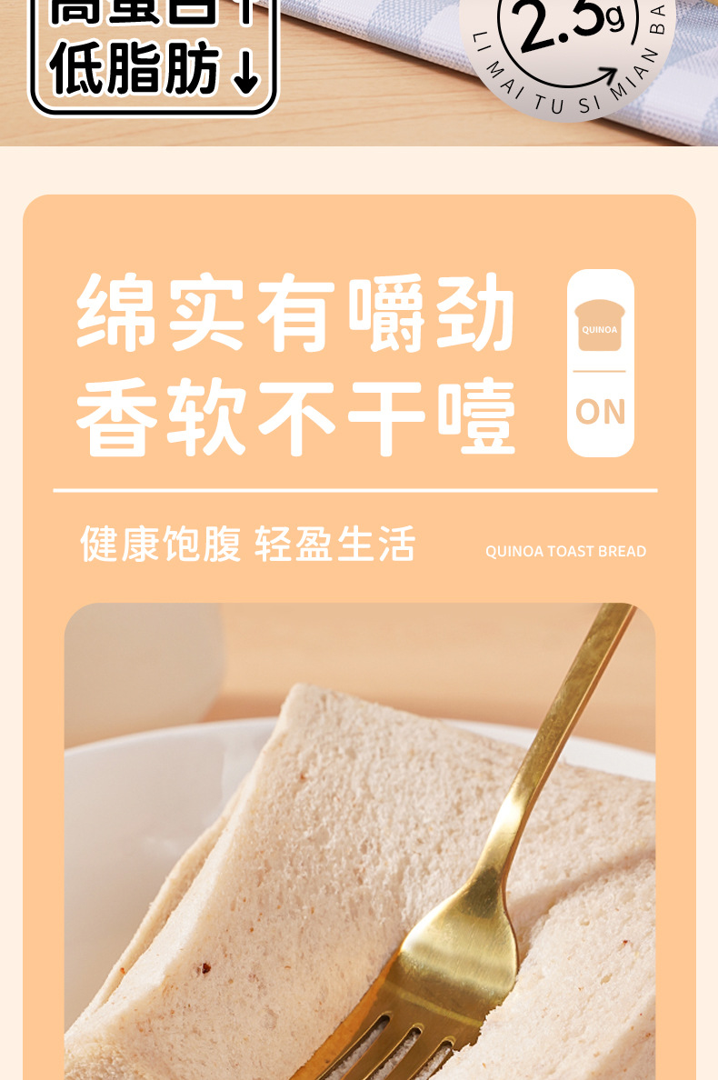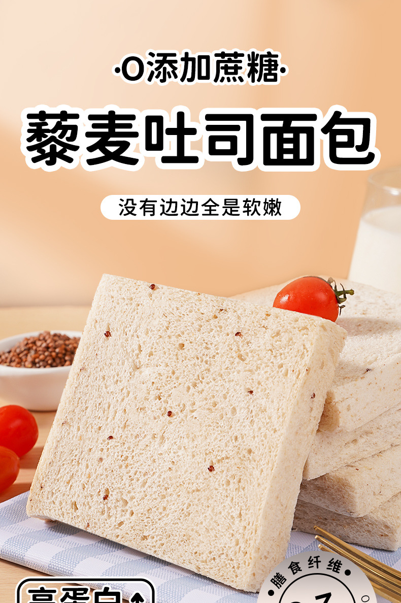 【健康少负担!藜麦吐司面包】牛乳无边厚切吐司,绵实有嚼劲香软不干噎,松软香醇,早餐代餐健康轻食打工人能量补给Y