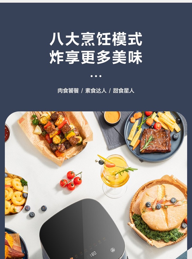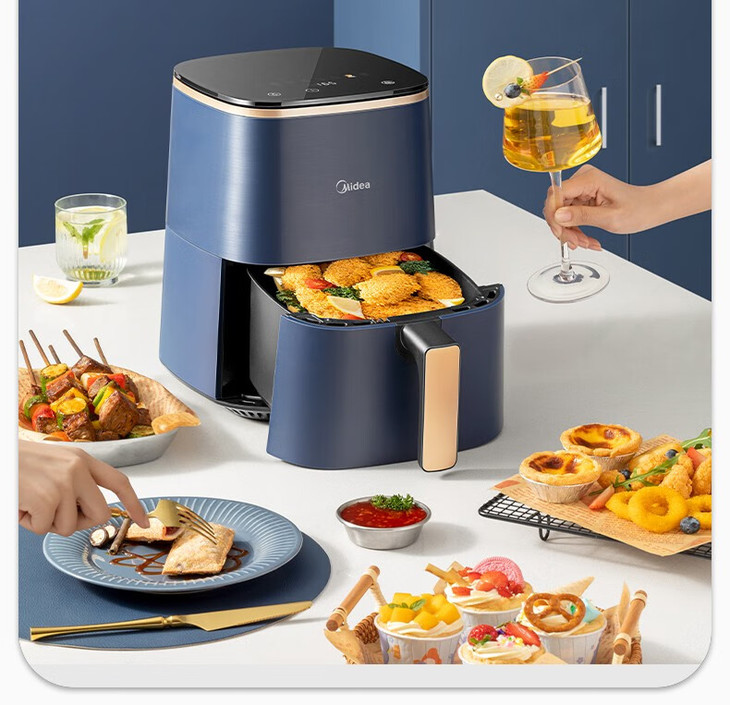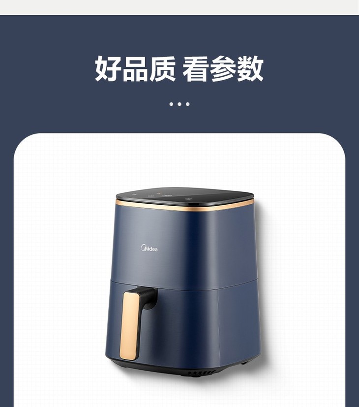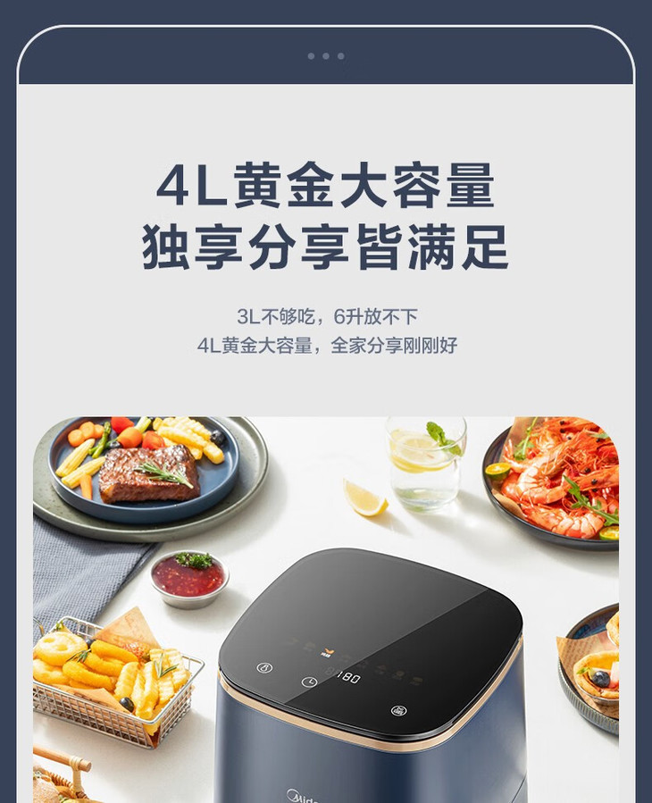 美的(Midea)(509889)空气炸锅家用大容量大功率 多功能无油低腊电炸锅炸锅智能触屏不粘易清洗薯条机4升精准控温 KZC4001 线下同款 4L