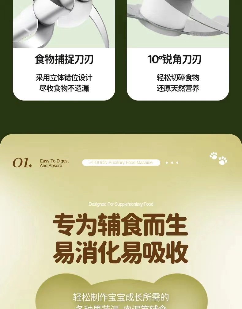【积分商城】浦利顿辅食机 八叶刀单杯 婴儿小型宝宝辅食工具套装料理机研磨打泥 商品图4