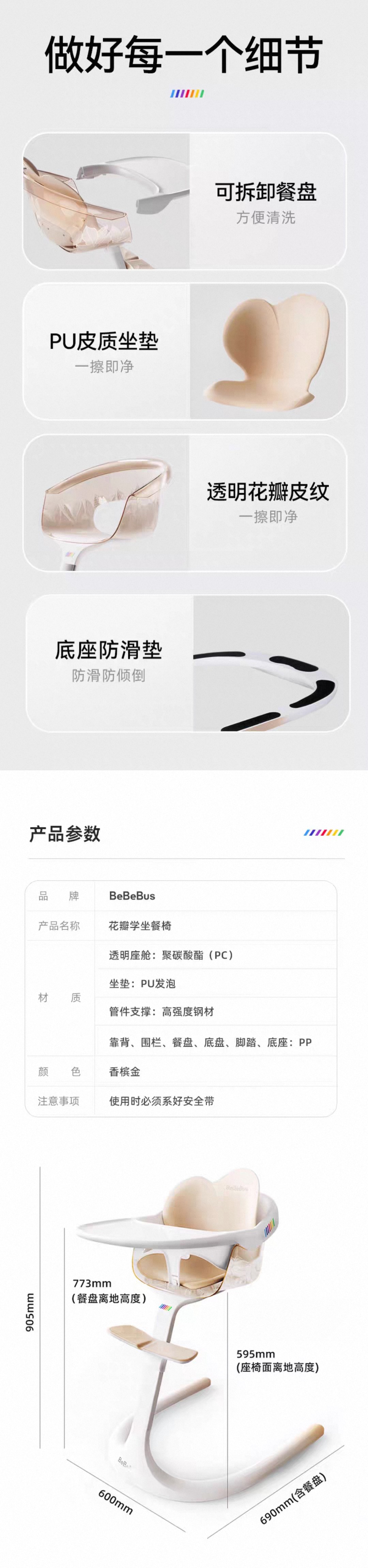 BeBeBus宝宝餐椅花瓣餐椅儿童成长椅婴儿学坐家用座椅多功能吃饭