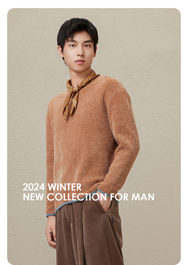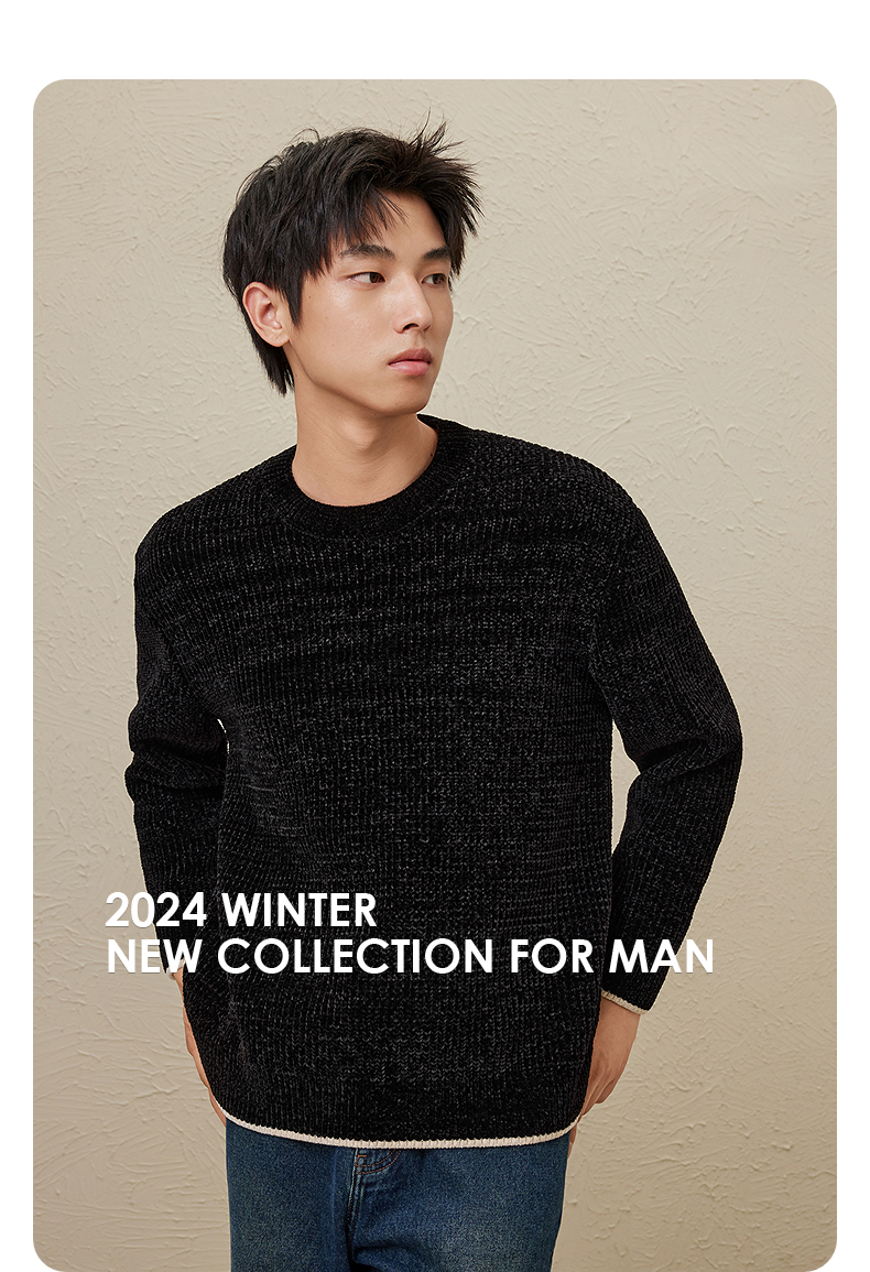 2024秋冬新品GXG男士纯色圆领休闲毛衣男百搭毛衫内搭线衫