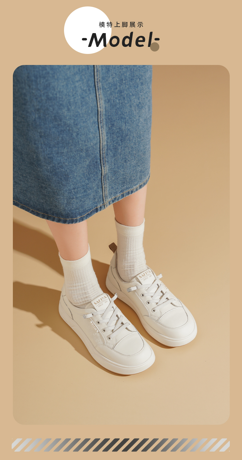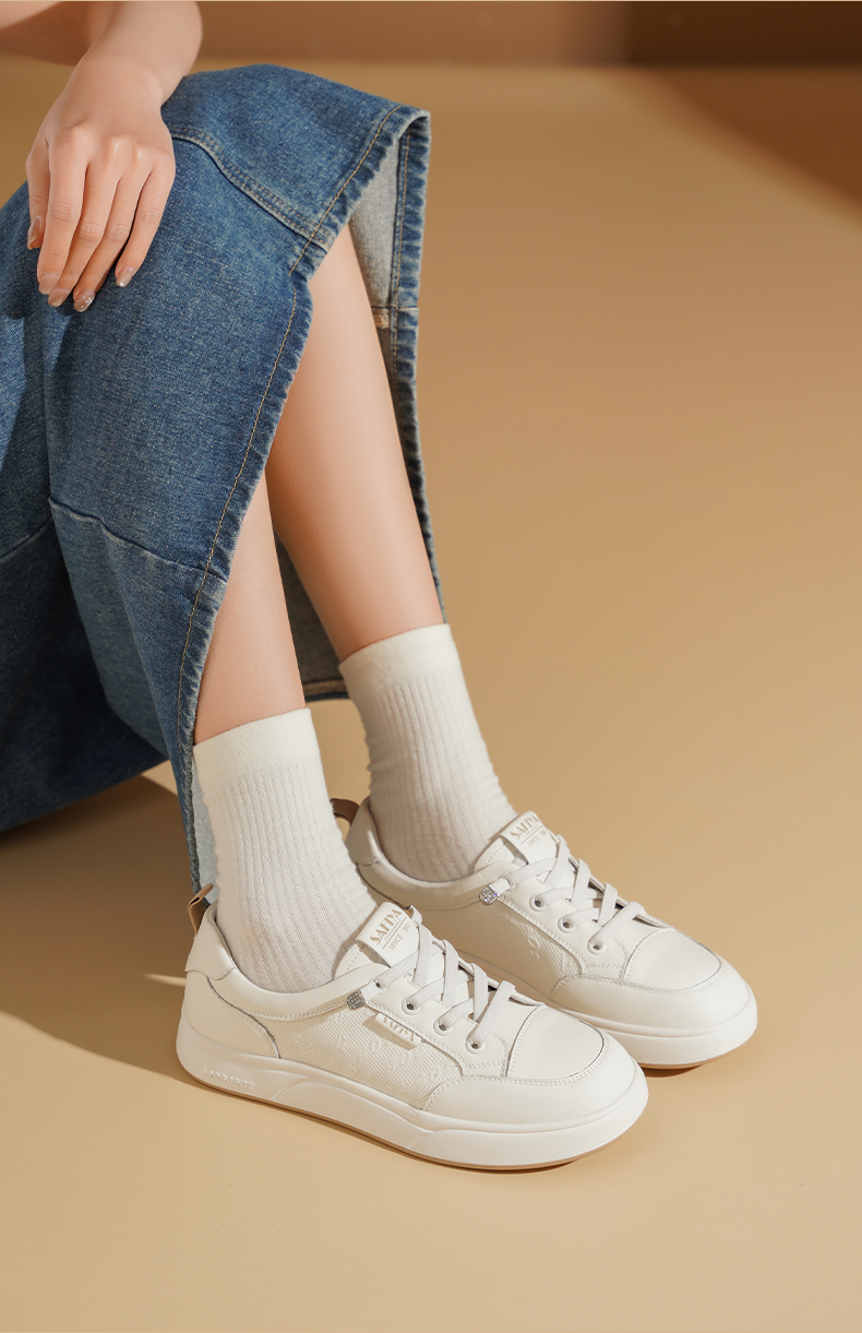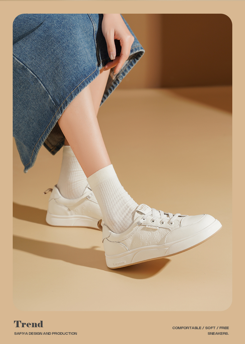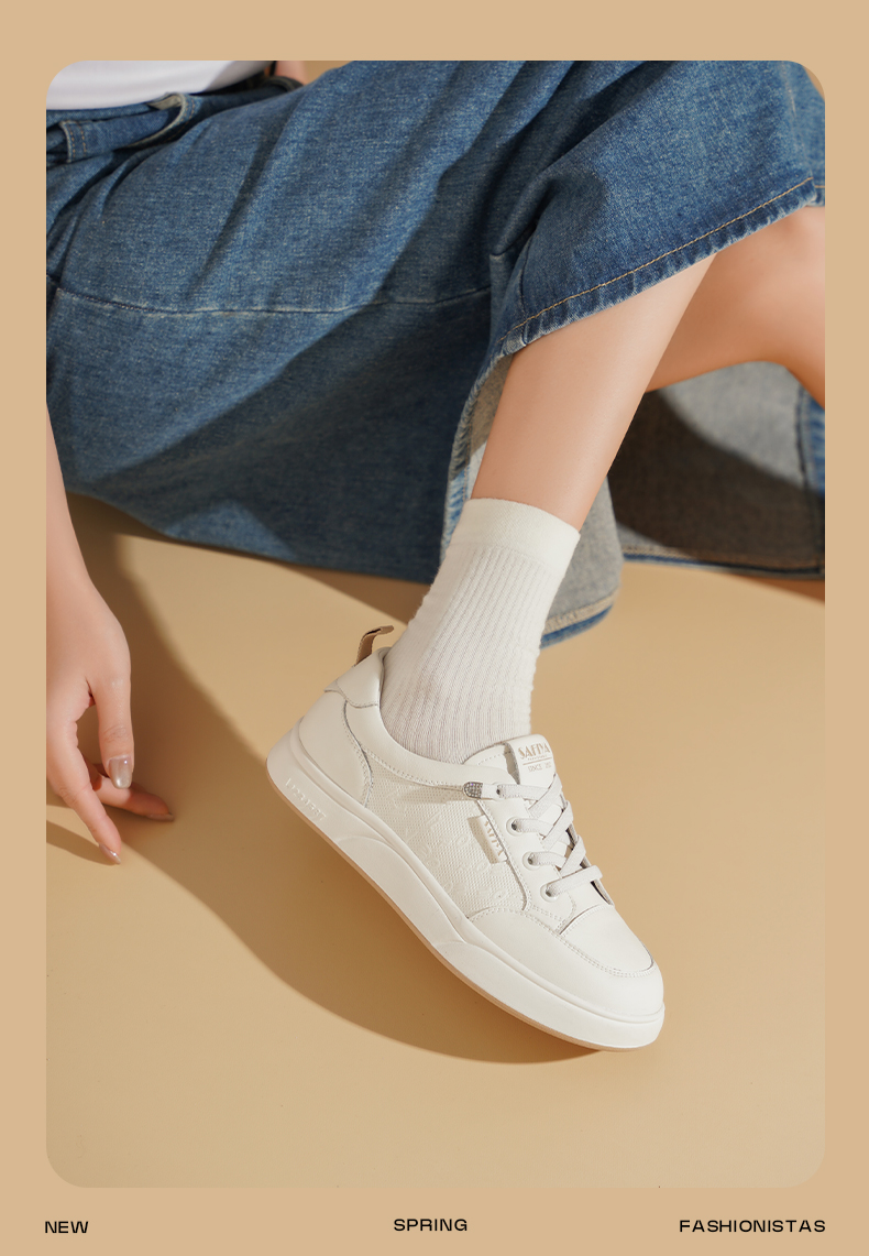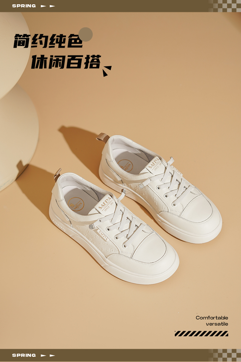 Safiya/索菲娅2025春新款百搭平底学院休闲小白鞋 SFD1112163