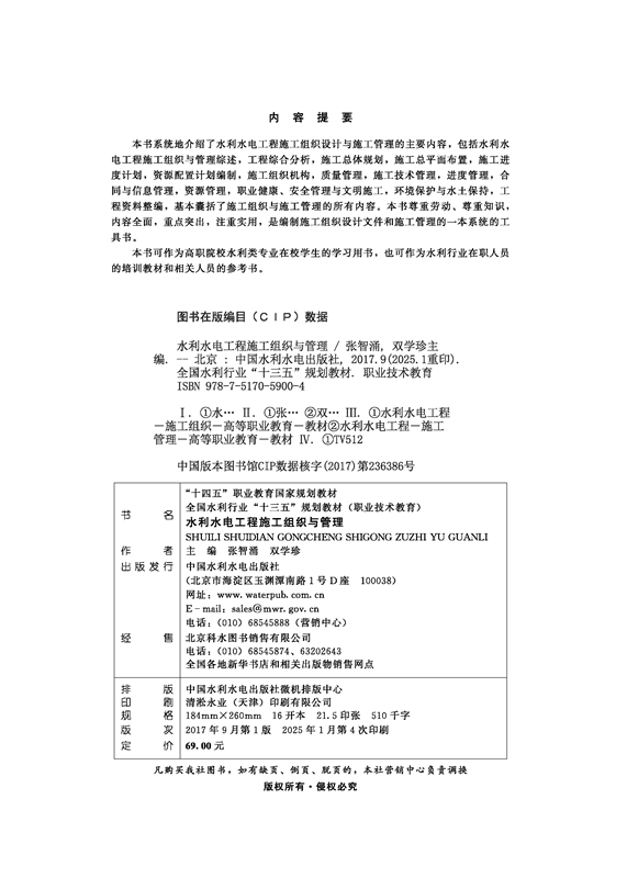 水利水电工程施工组织与管理(全国水利行业“十三五”规划教材(职业技术教育))