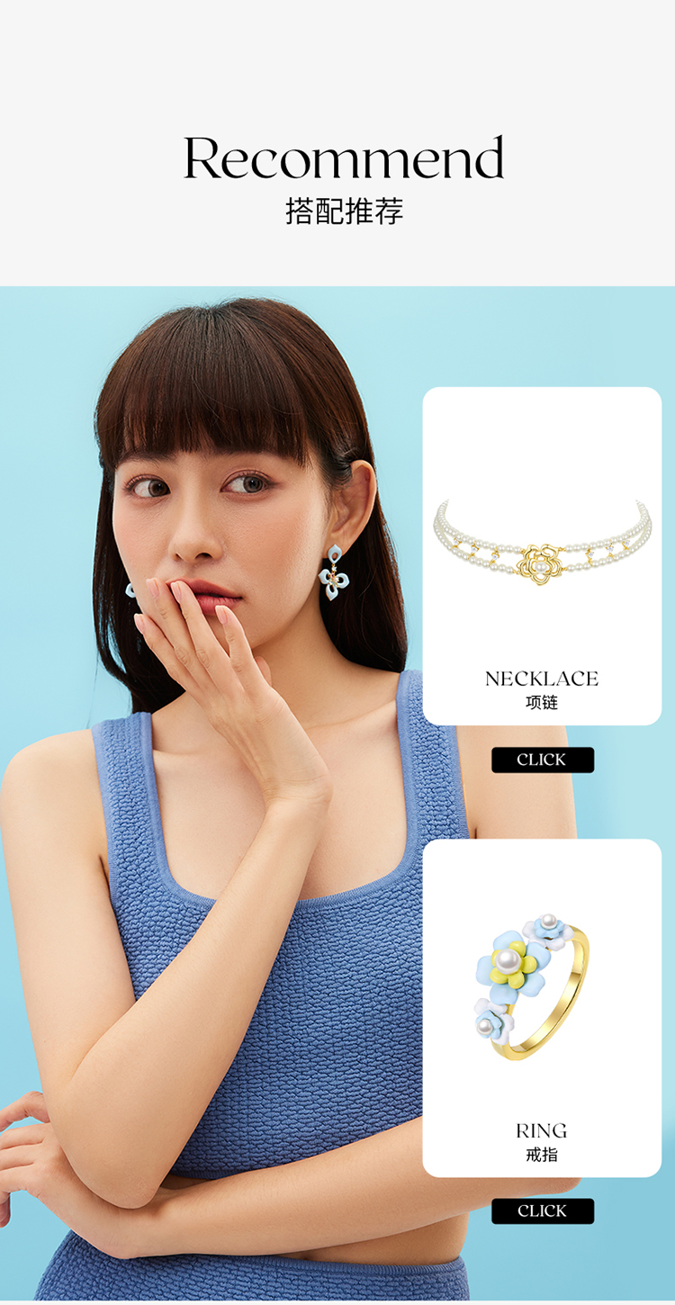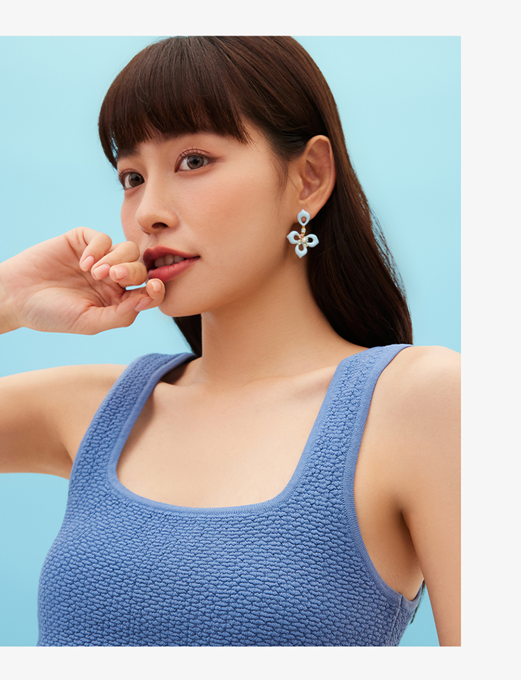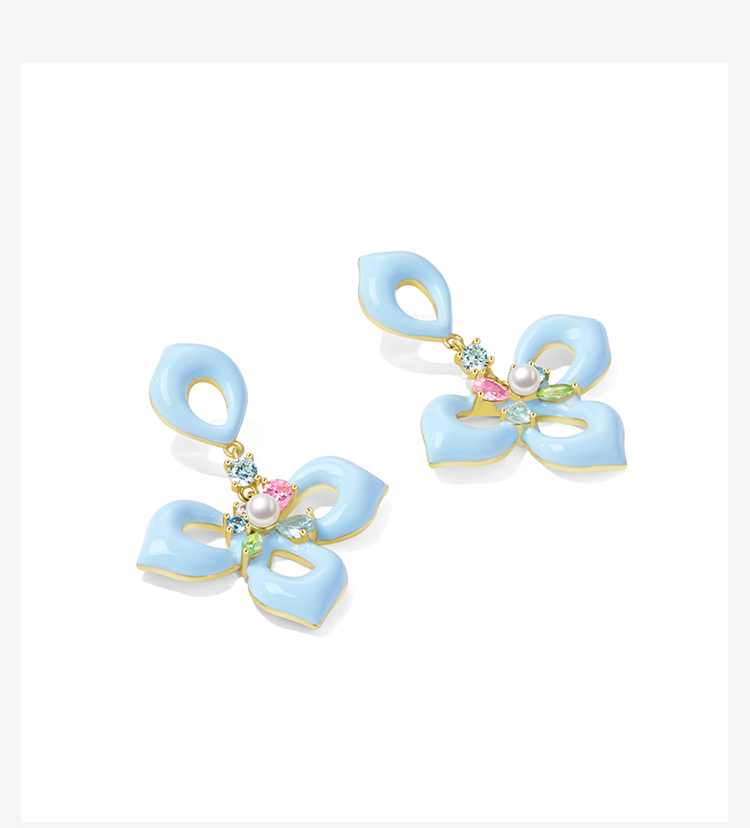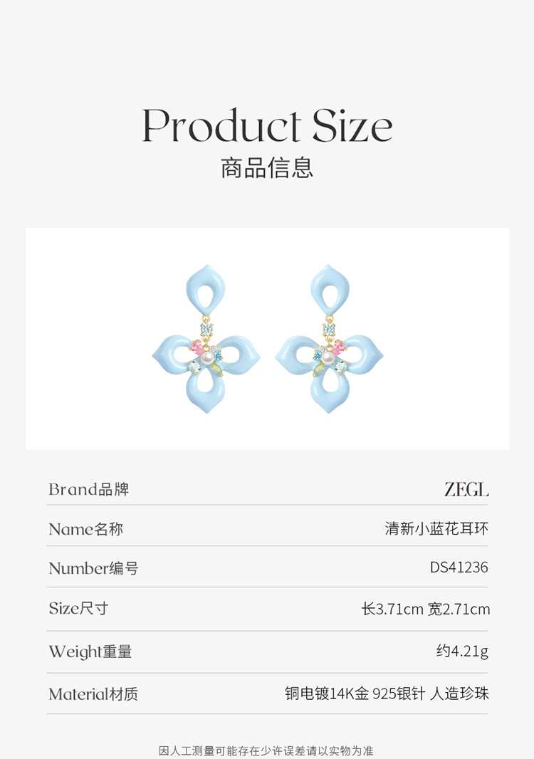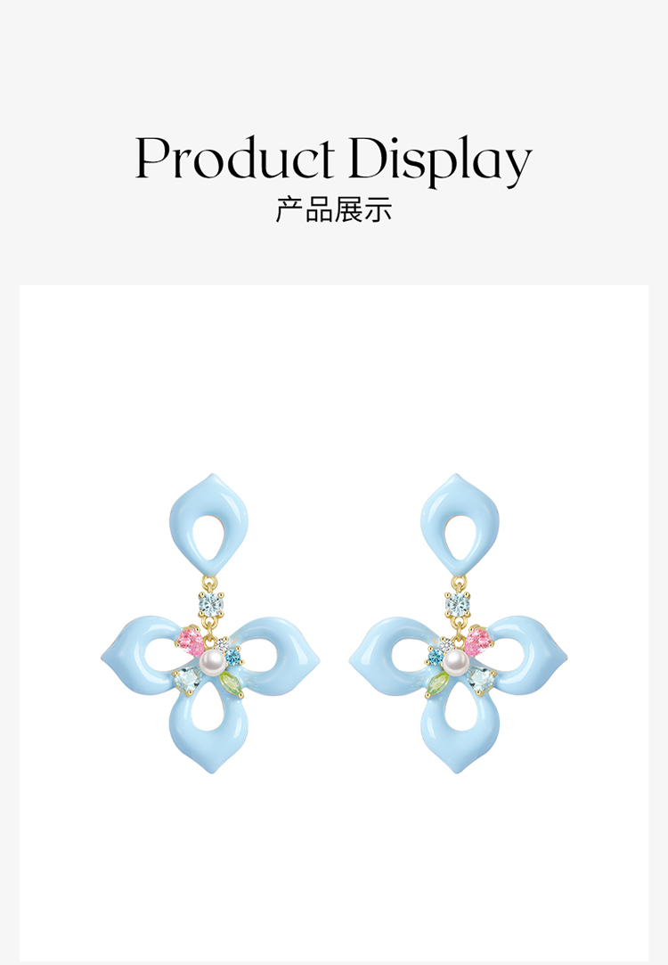 ZEGL设计师秘密花园系列蓝色花朵耳环女小众森系耳钉银针夏天耳饰