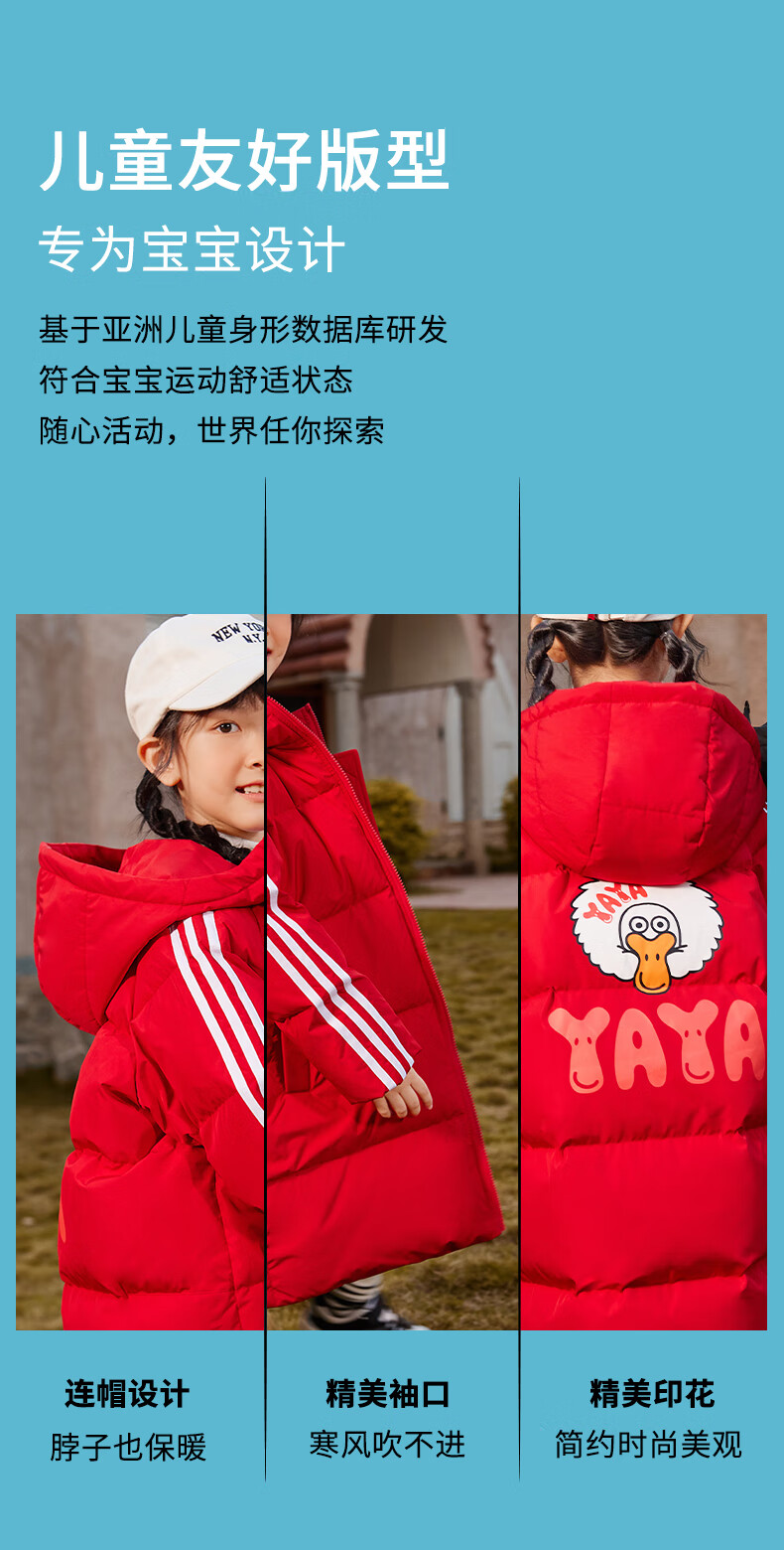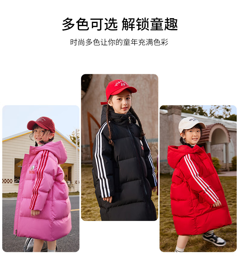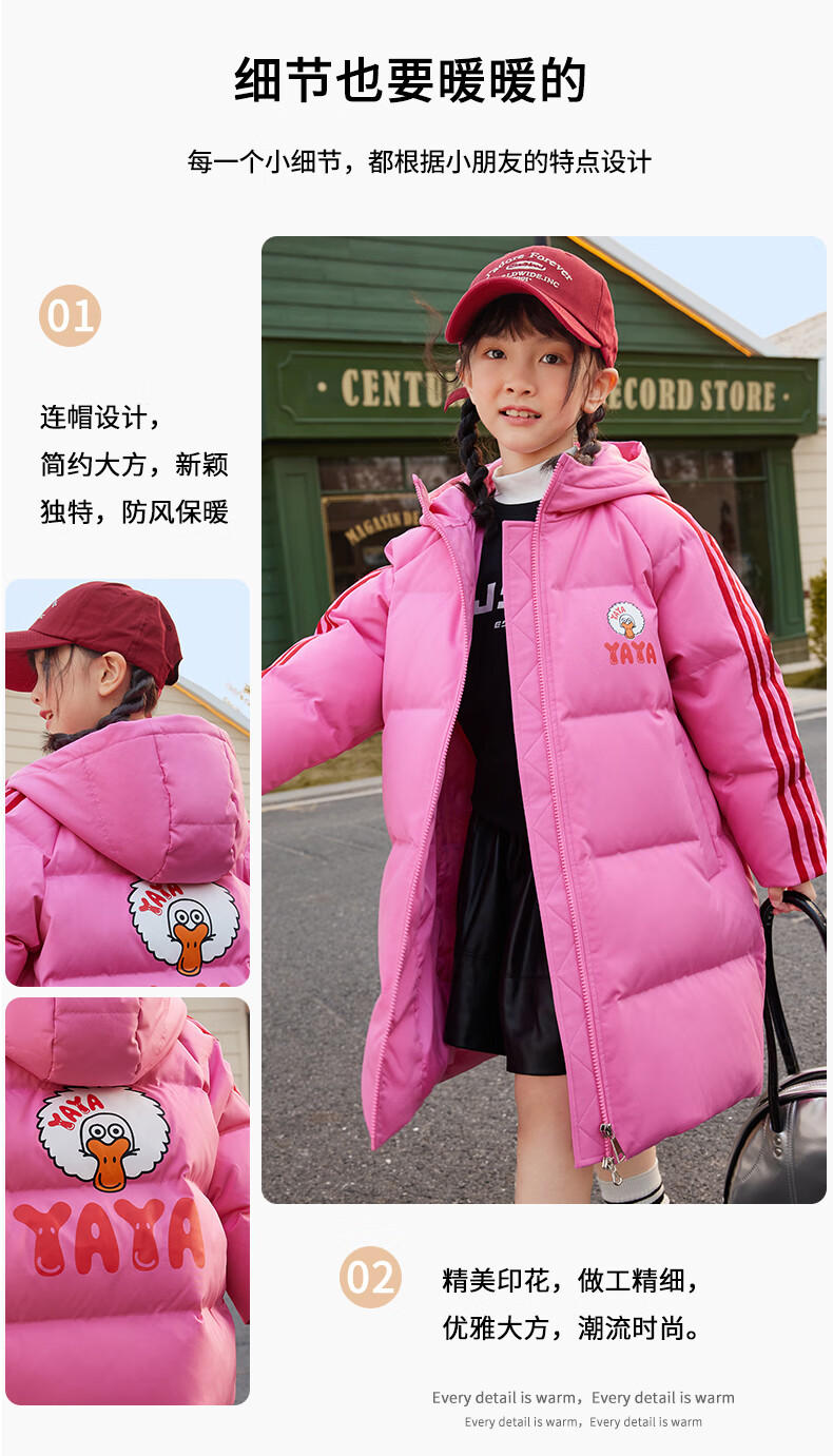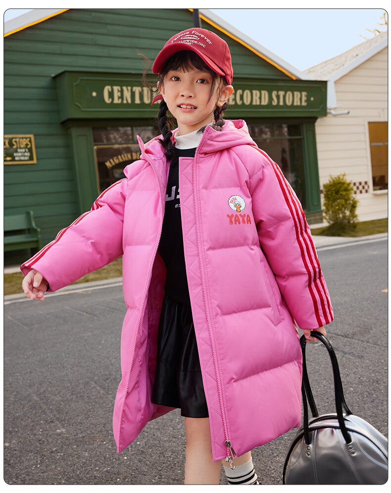 鸭鸭(YAYA)童装女童羽绒服中长款加厚保暖连帽中大童羽绒外套 YE2B826053E