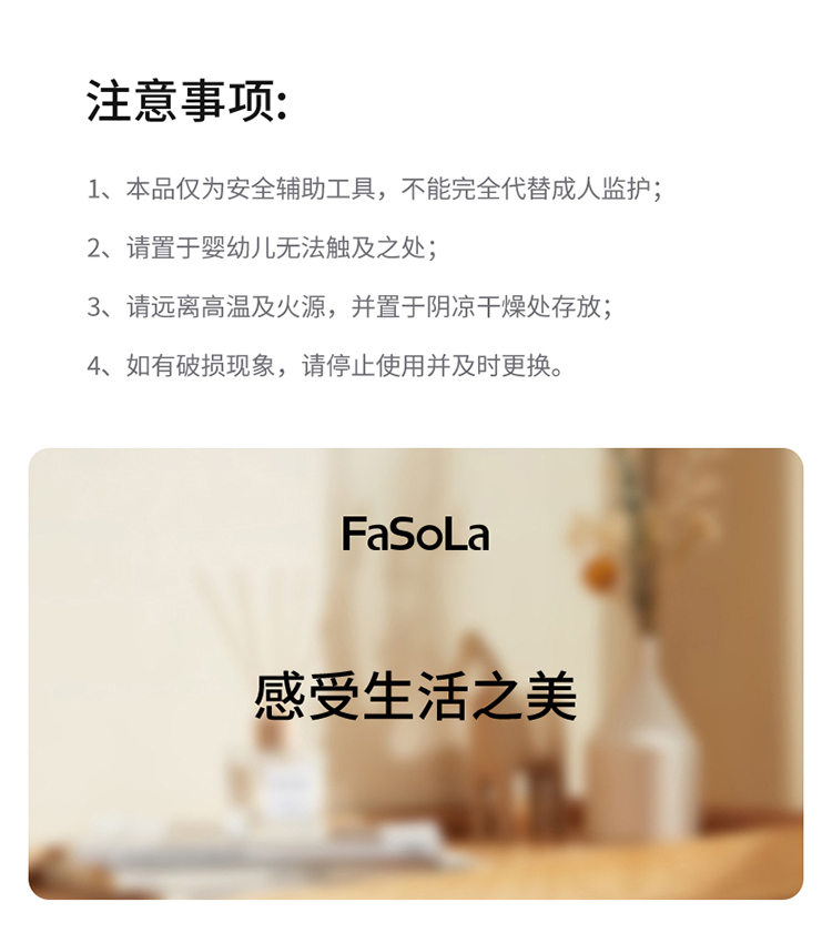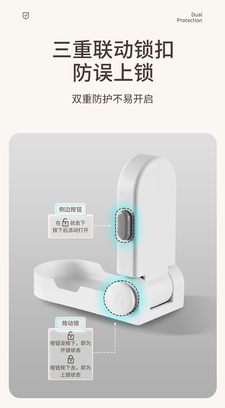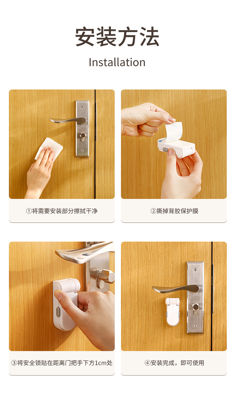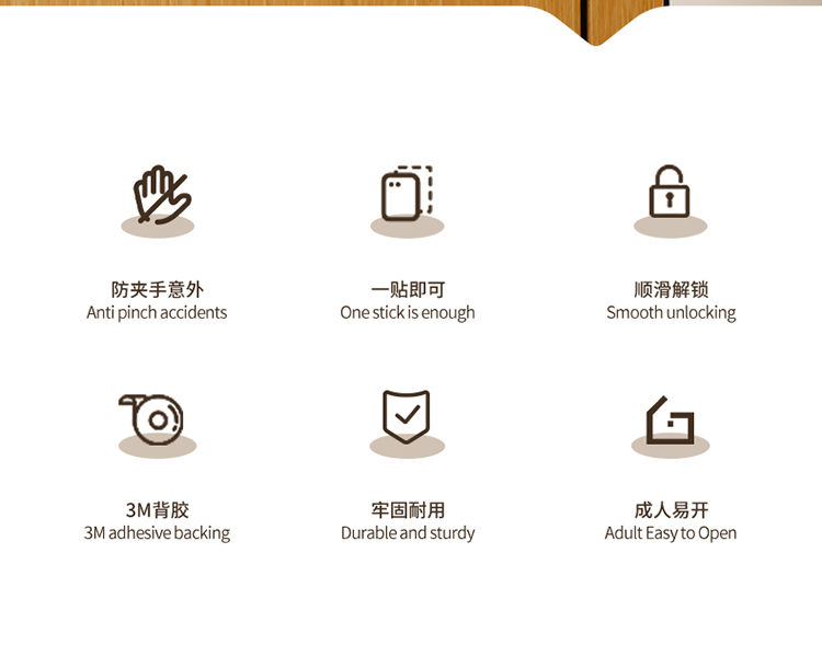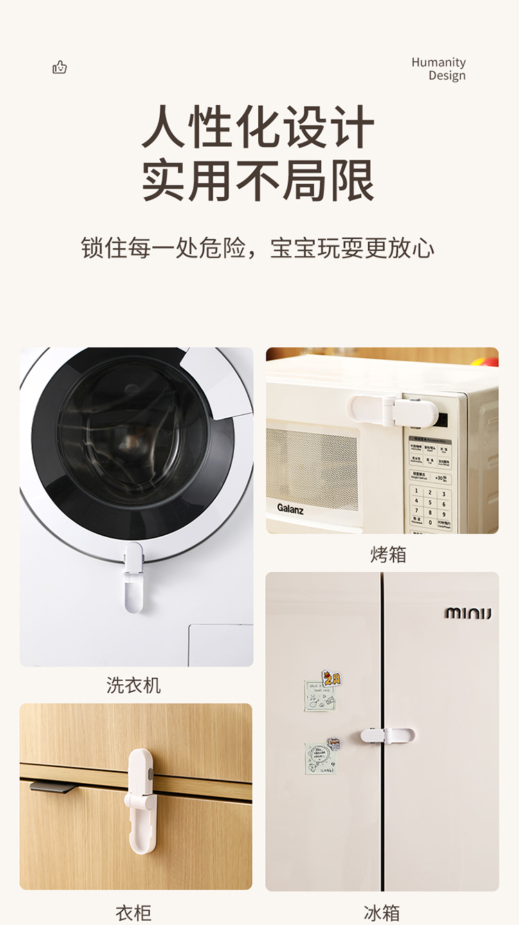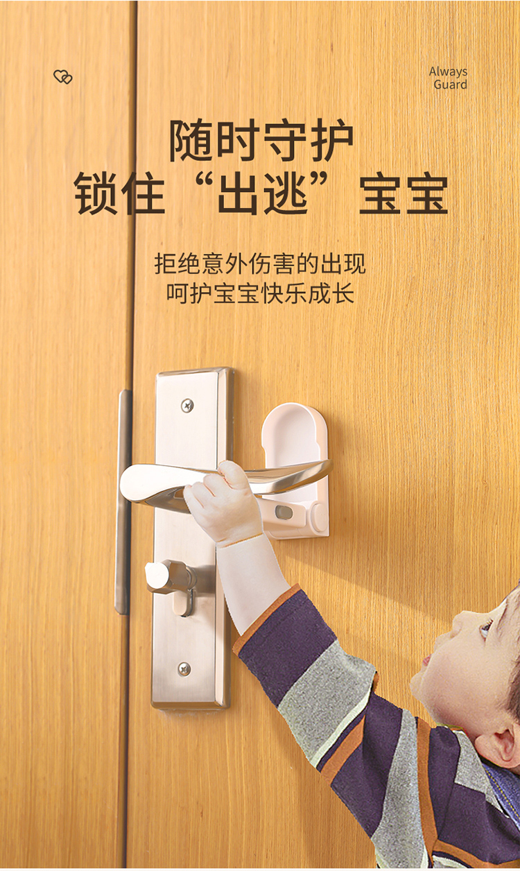 FaSoLa儿童安全锁宝宝开门防夹手免打孔门把手卡扣抽屉柜子柜门锁