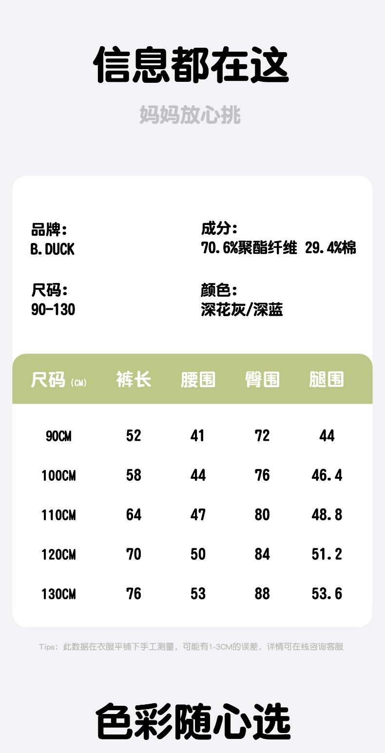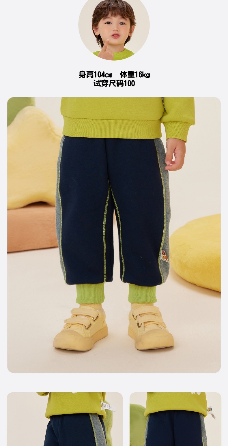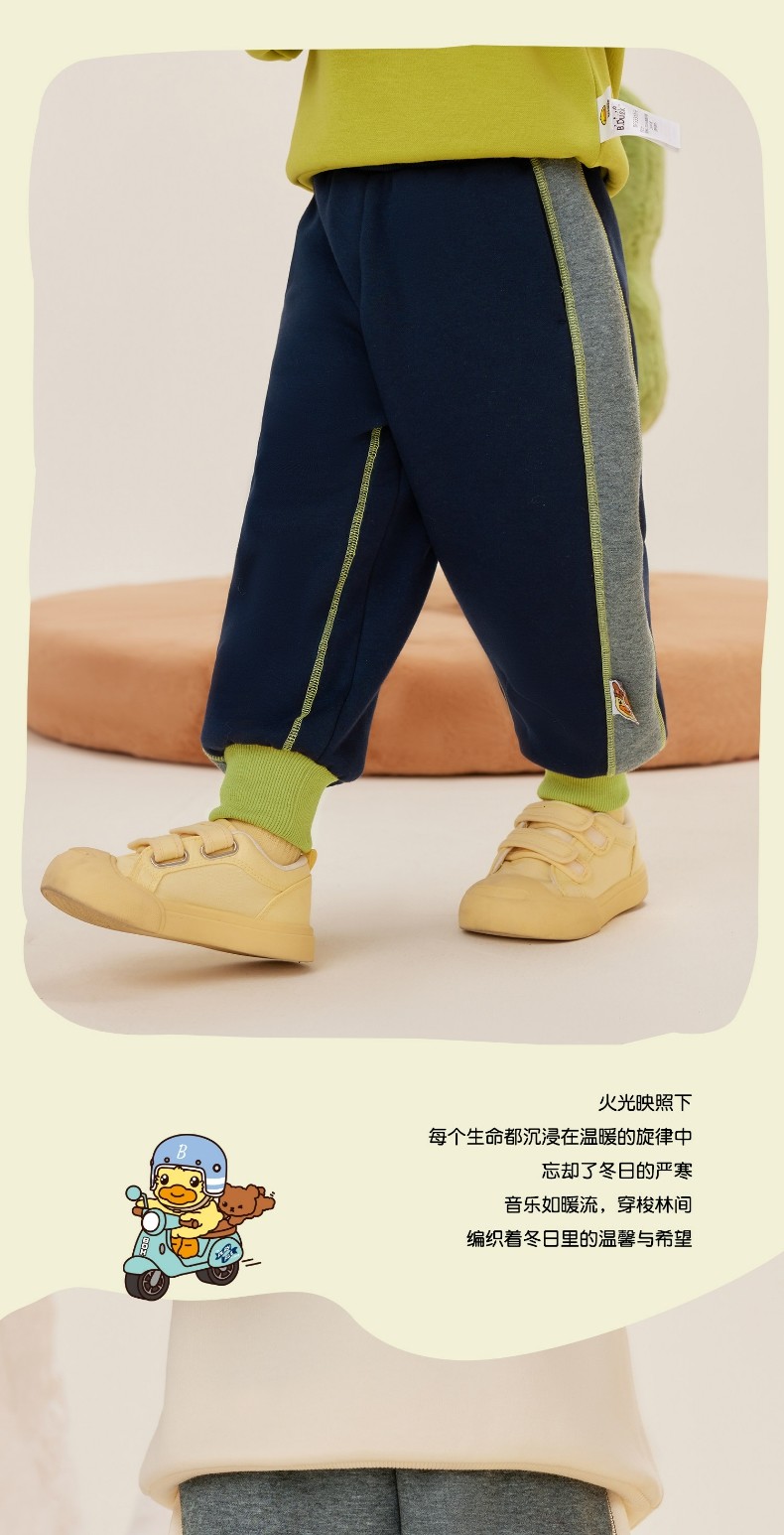 bduck小黄鸭童装男童裤子加绒宝宝冬装儿童保暖长裤加厚90-130 BF5573018