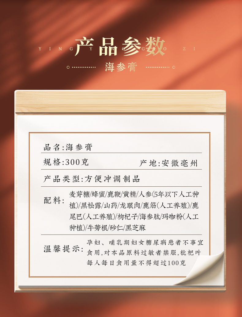 海参膏 300g/罐 甄选原料 男人的加油站 专为男性设计 十大原料 一勺浓缩的营养