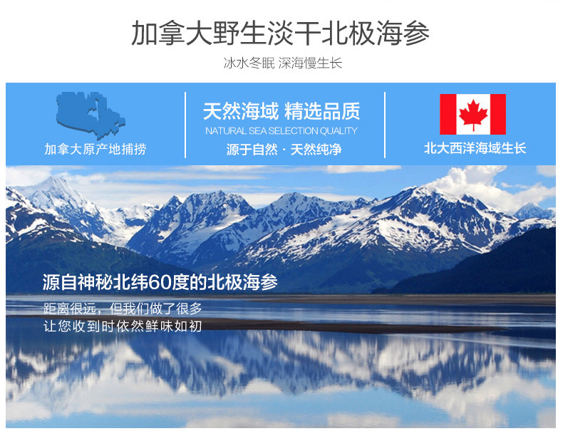 【周五配送|加拿大野生淡干北极参】纯野生生长的海参,生长周期7年以上 生长的海域无人涉足,海参非饲料养大,纯自然生长。 如风生活特惠