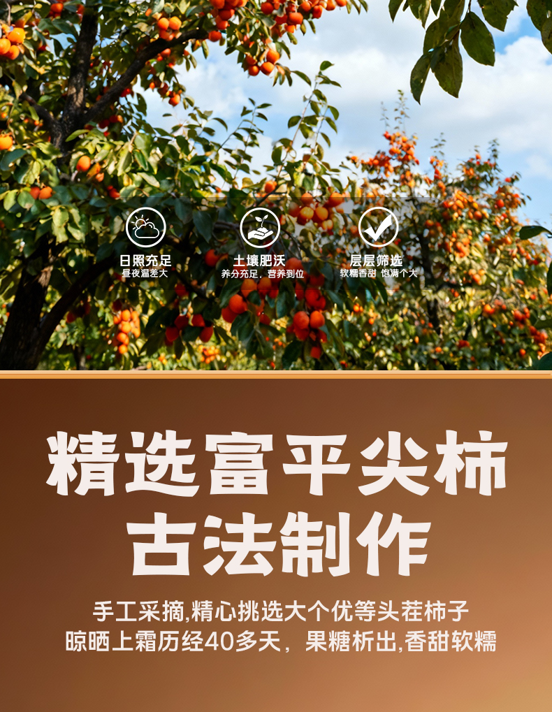陕西 • 富平柿饼# 地标产品,年度美食,正宗富平柿饼,香甜软糯,糖心十足,每一口都是出口级品质~