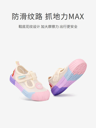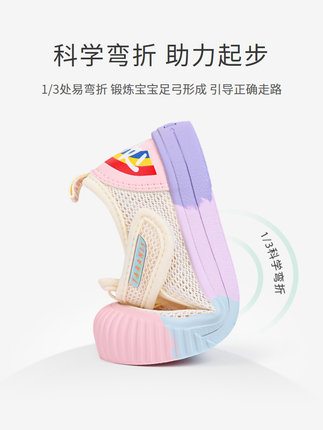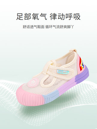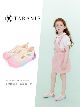 泰兰尼斯夏季新款女童鞋子网布透气板鞋彩虹软底宝宝幼儿园室内鞋