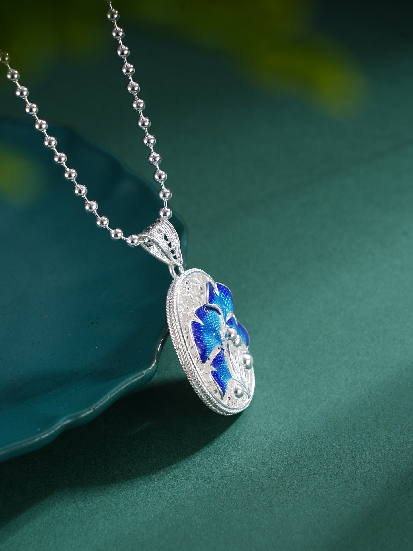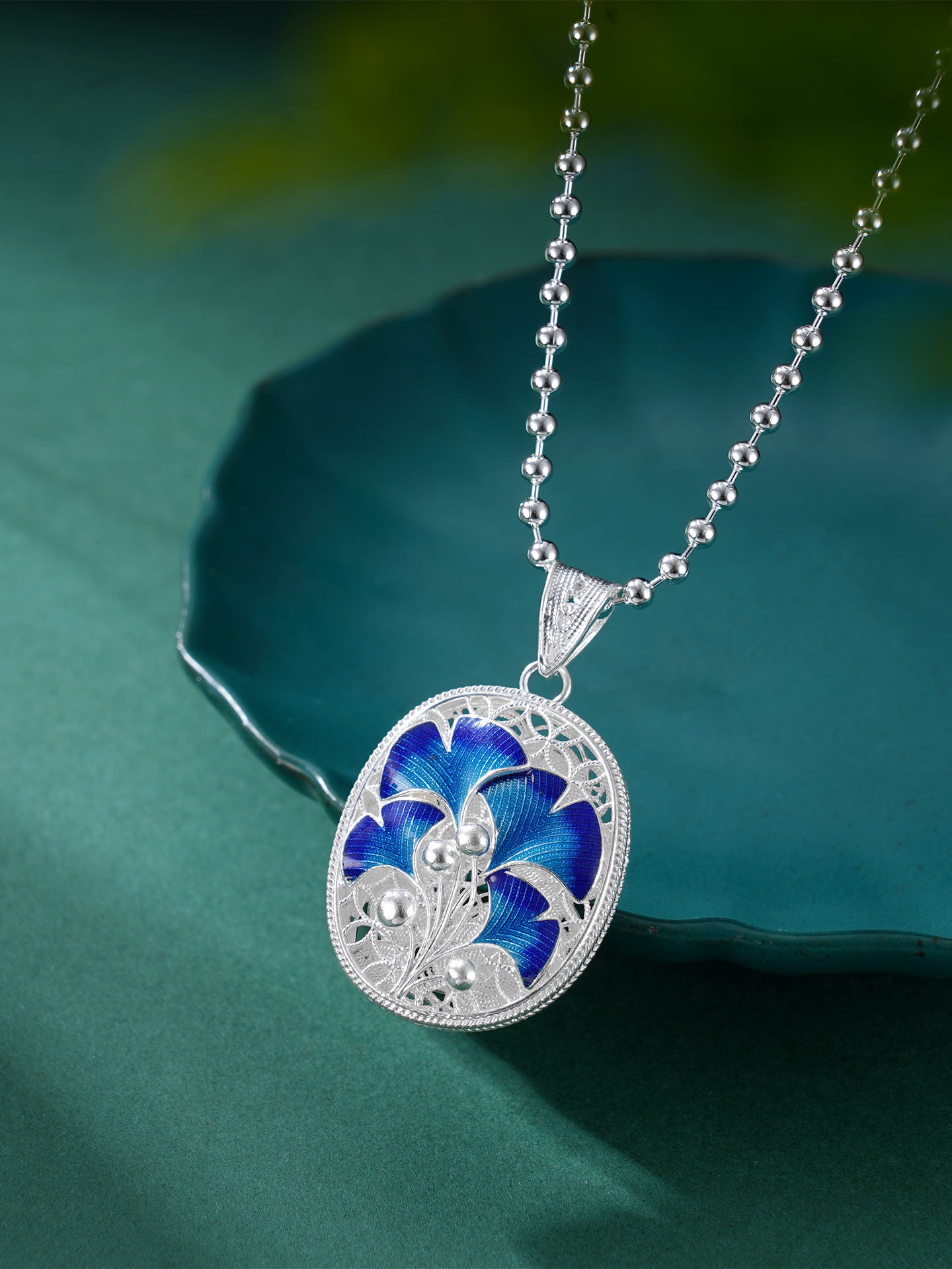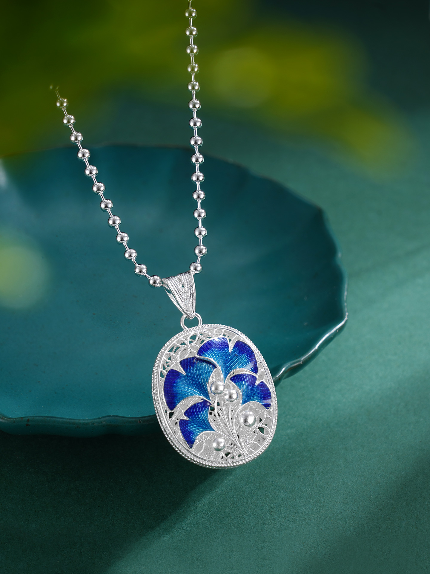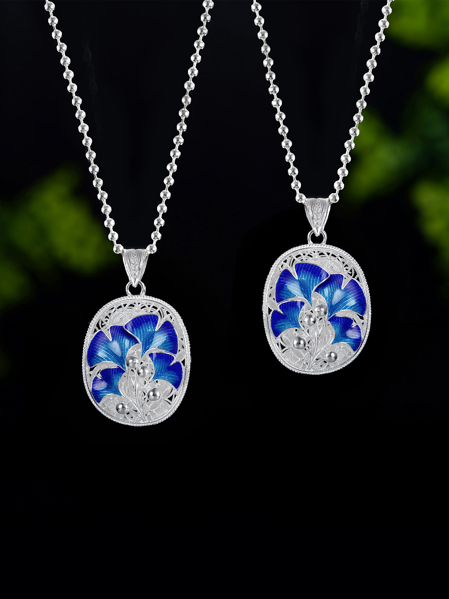 子佩集S990银【银杏寄情】情侣套链项链【DSDZ005】原创作品花丝珐琅彩双面吊坠2509