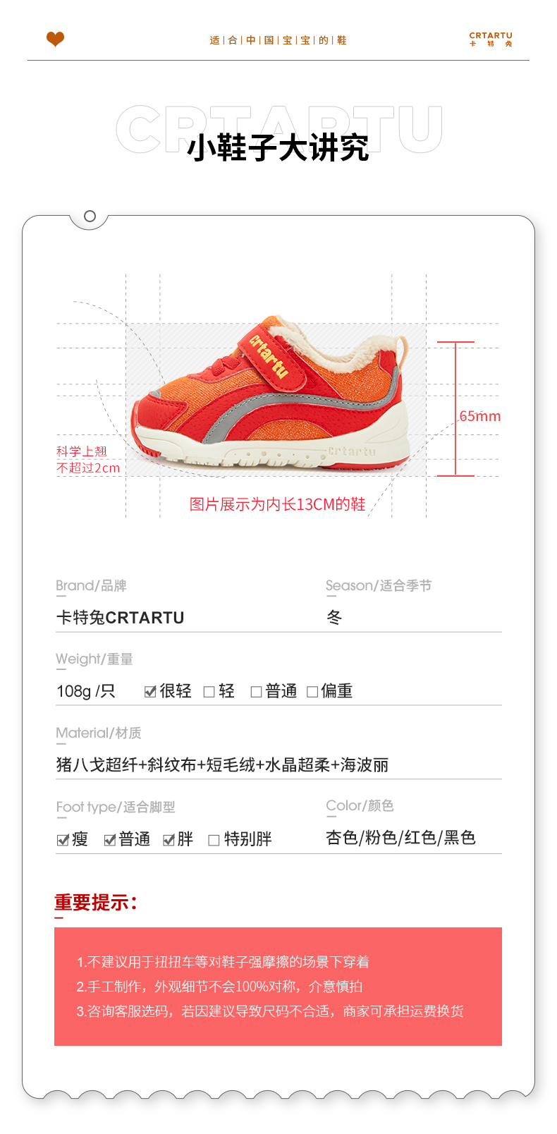 卡特兔冬款宝宝加绒冰河运动鞋 4色 一段/二段