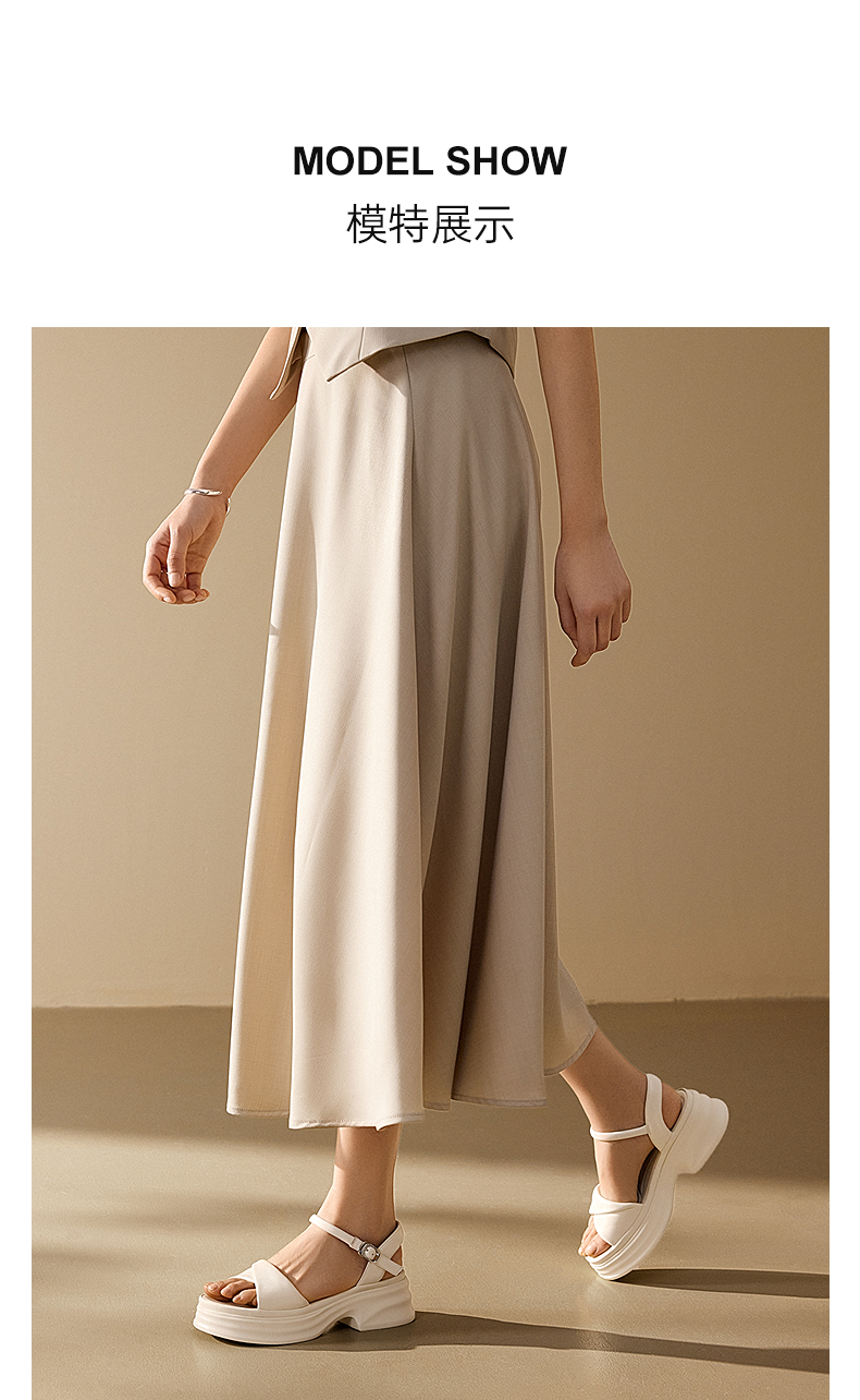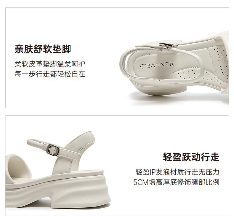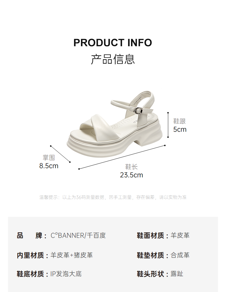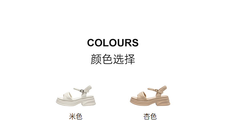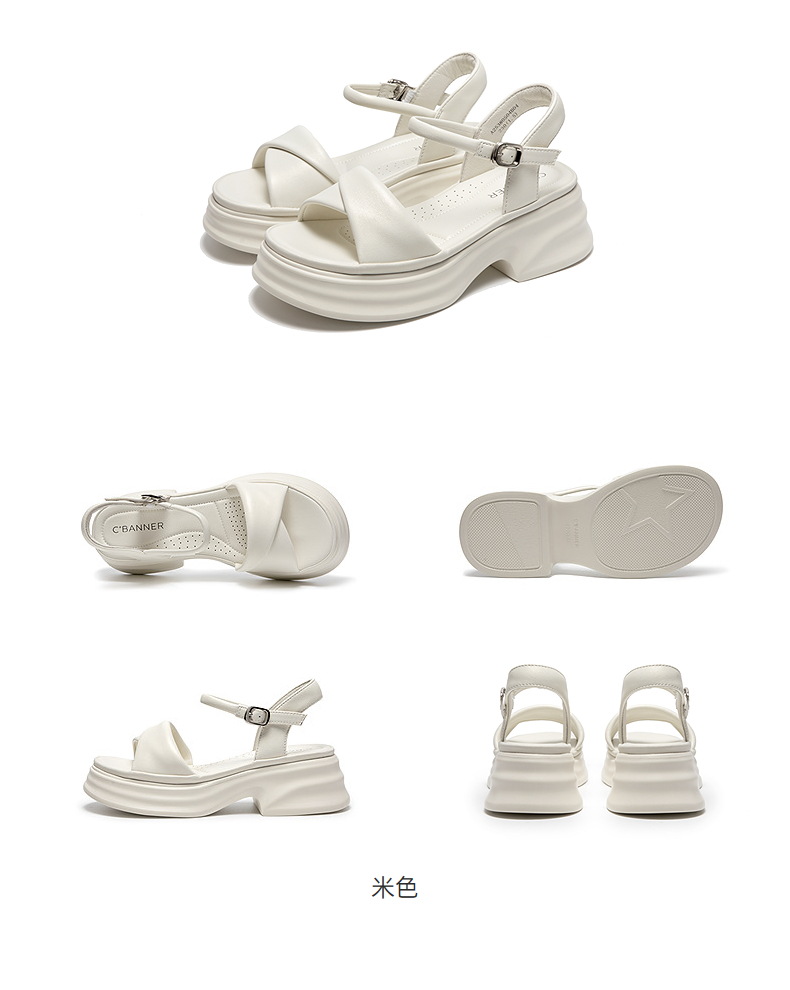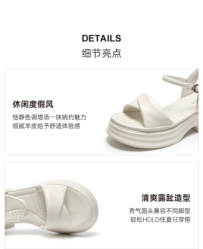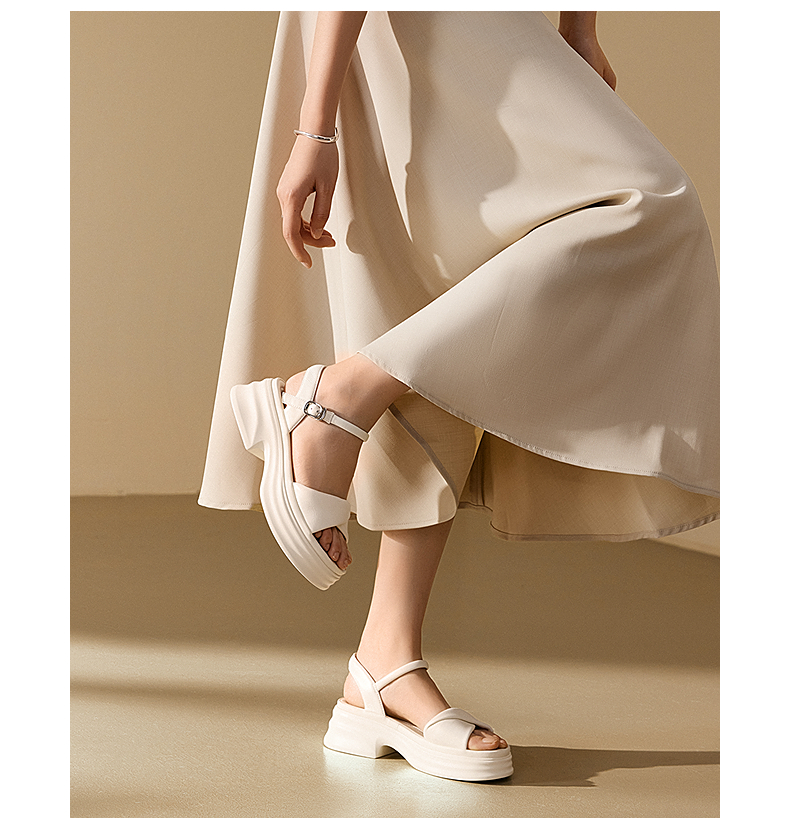 千百度厚底羊皮一字带凉鞋女休闲度假增高配裙子凉鞋A25380504