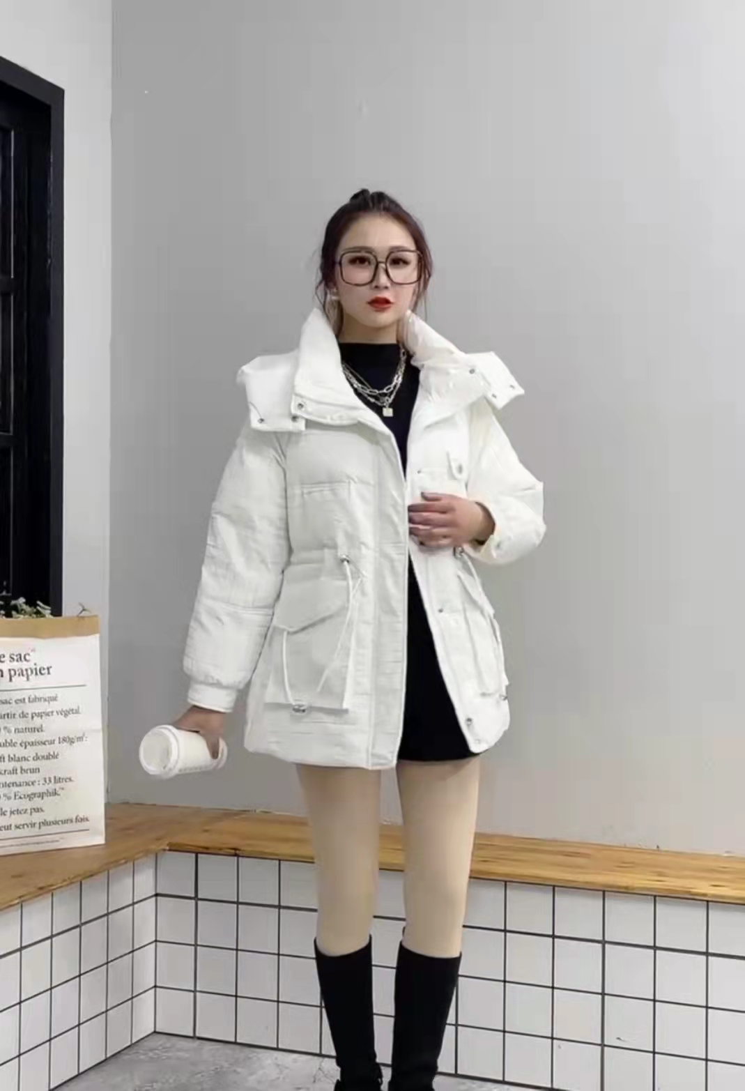 特点:中款半收腰设计,显瘦时尚,简单大气,保暖性强,免洗面料好保养