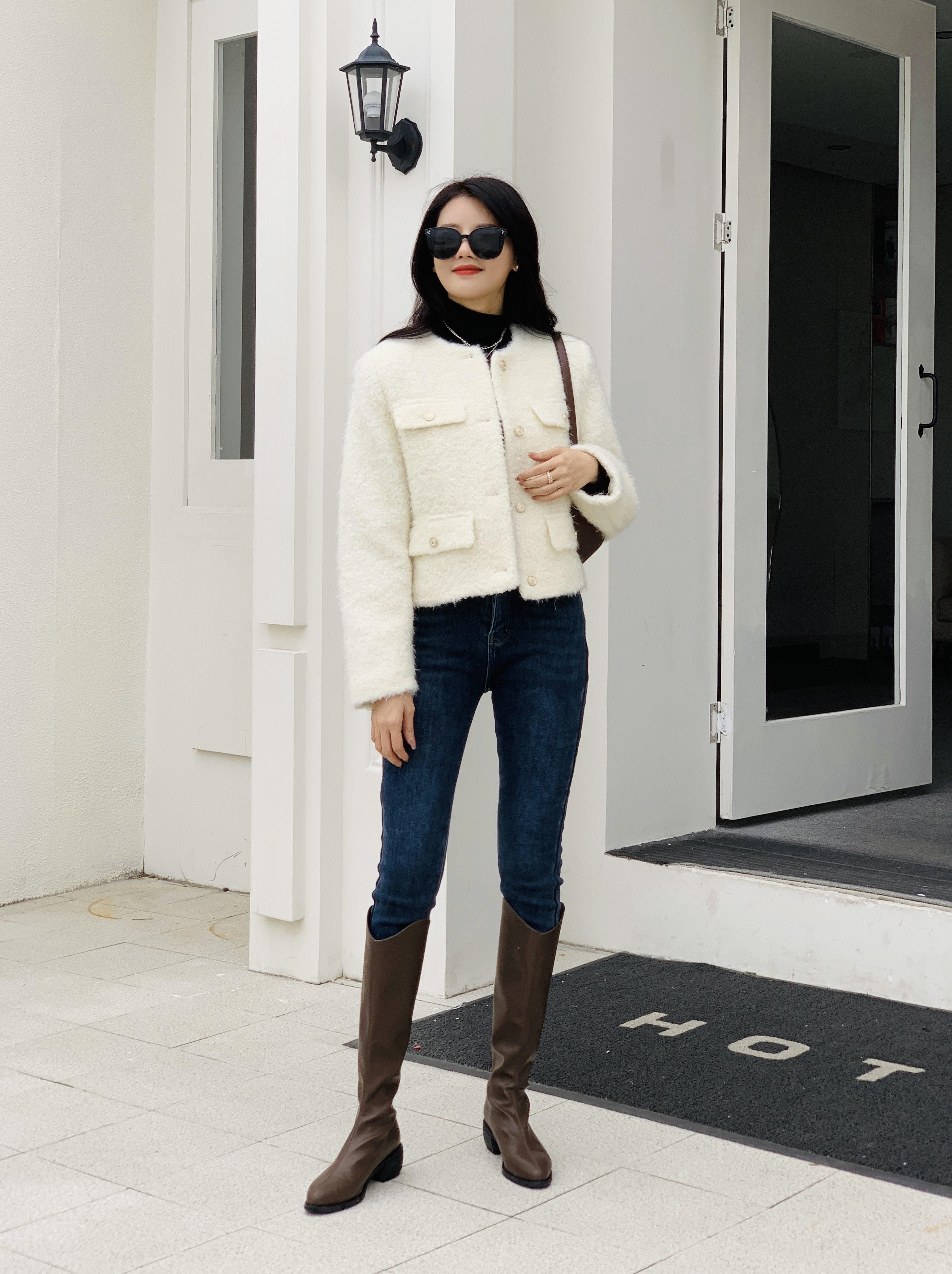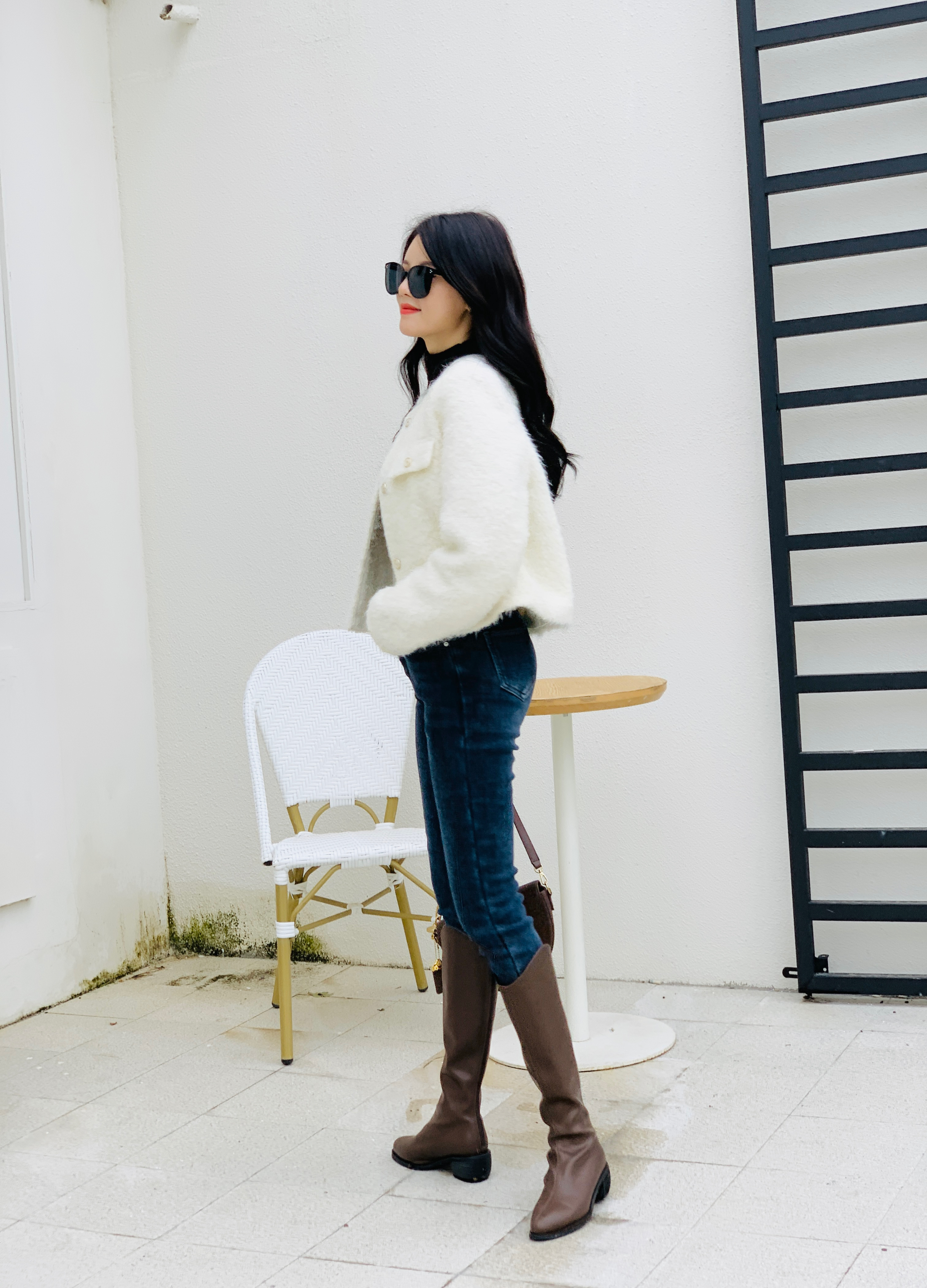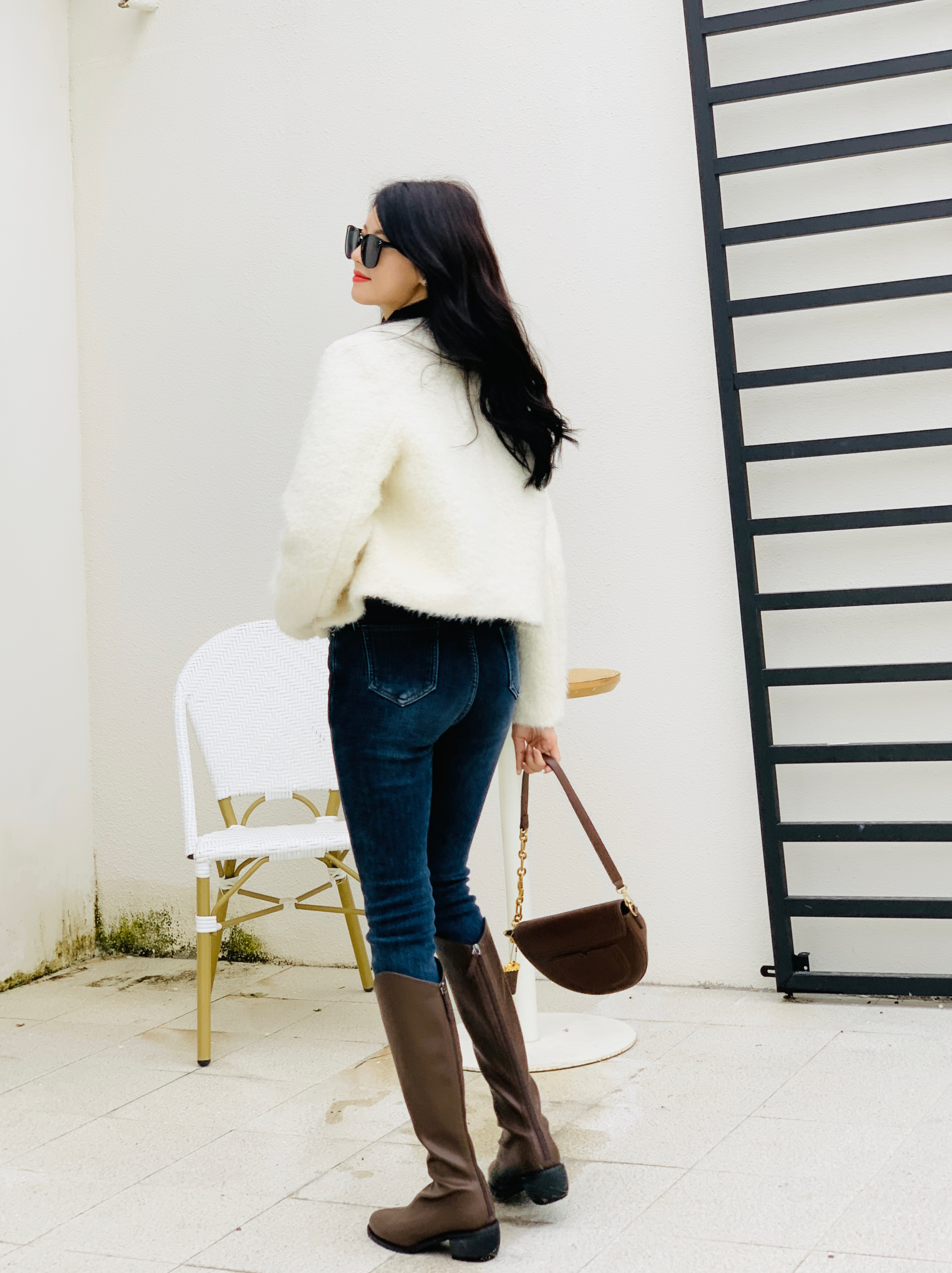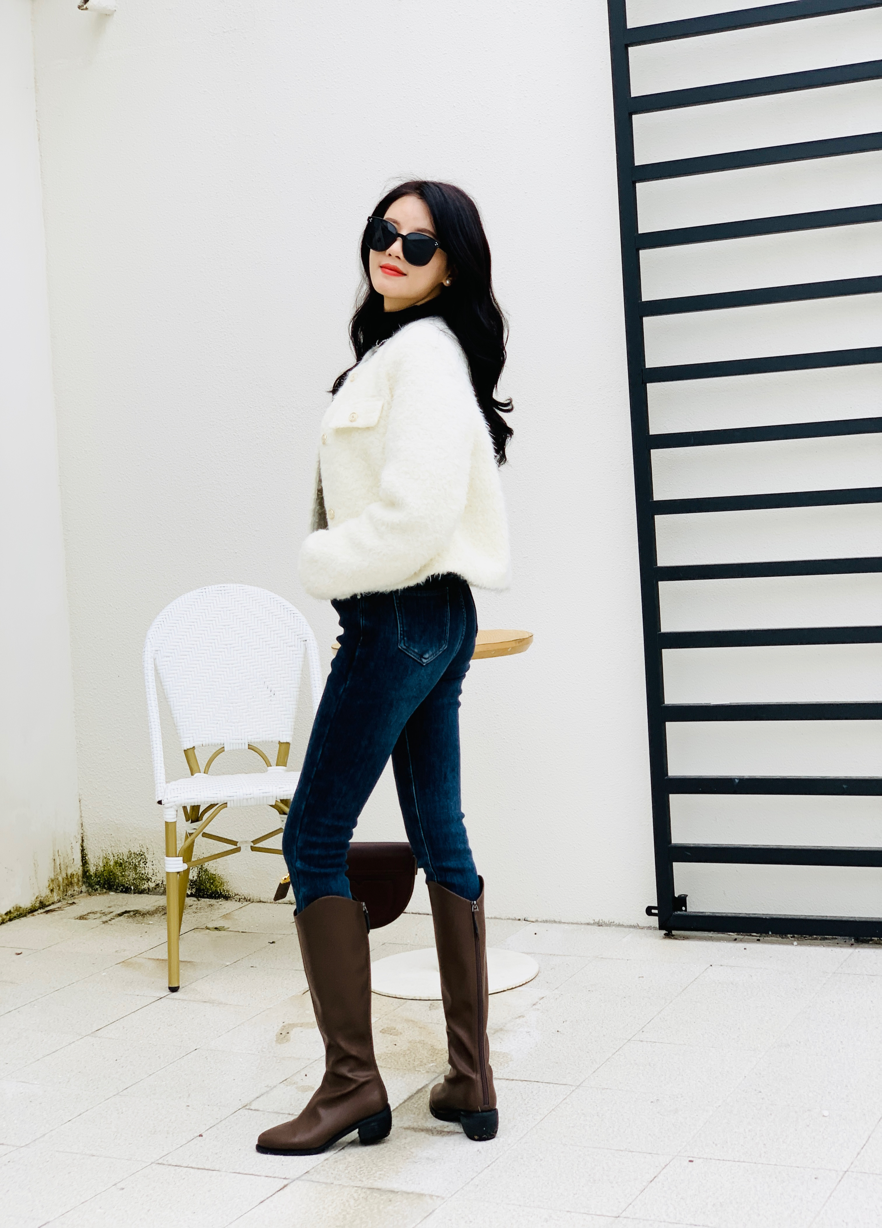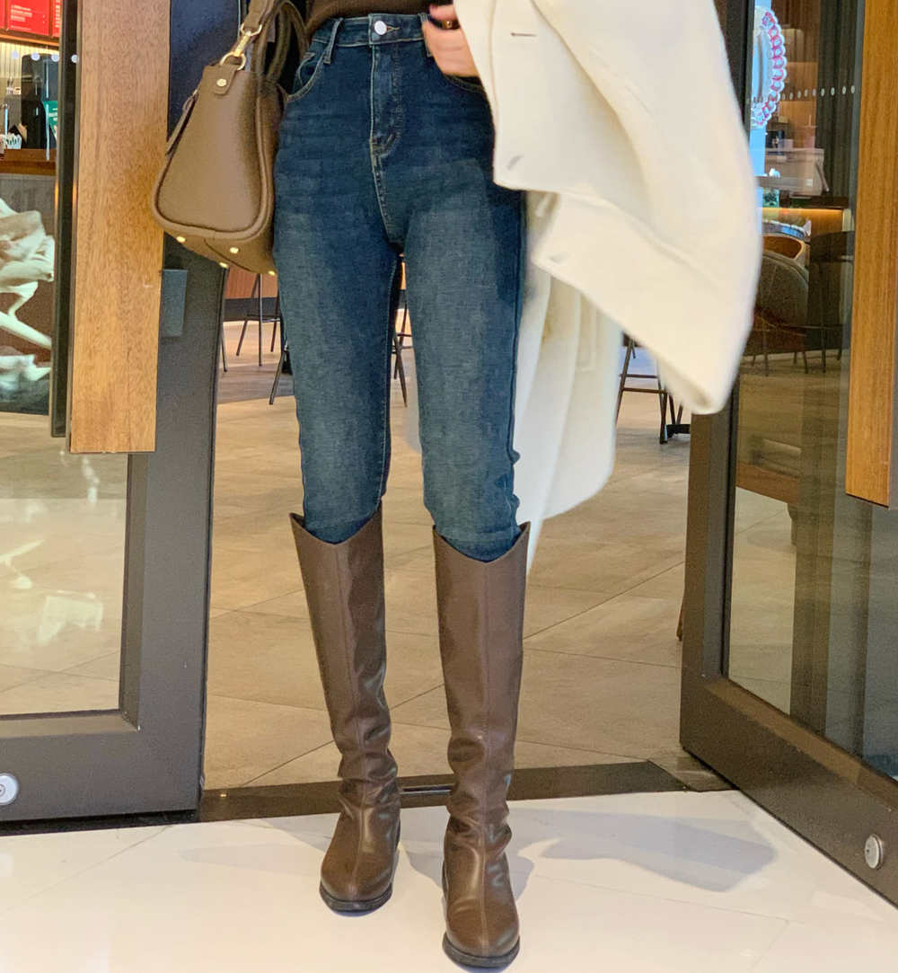 小脚牛仔裤和中筒/长筒靴都是极佳显瘦CP