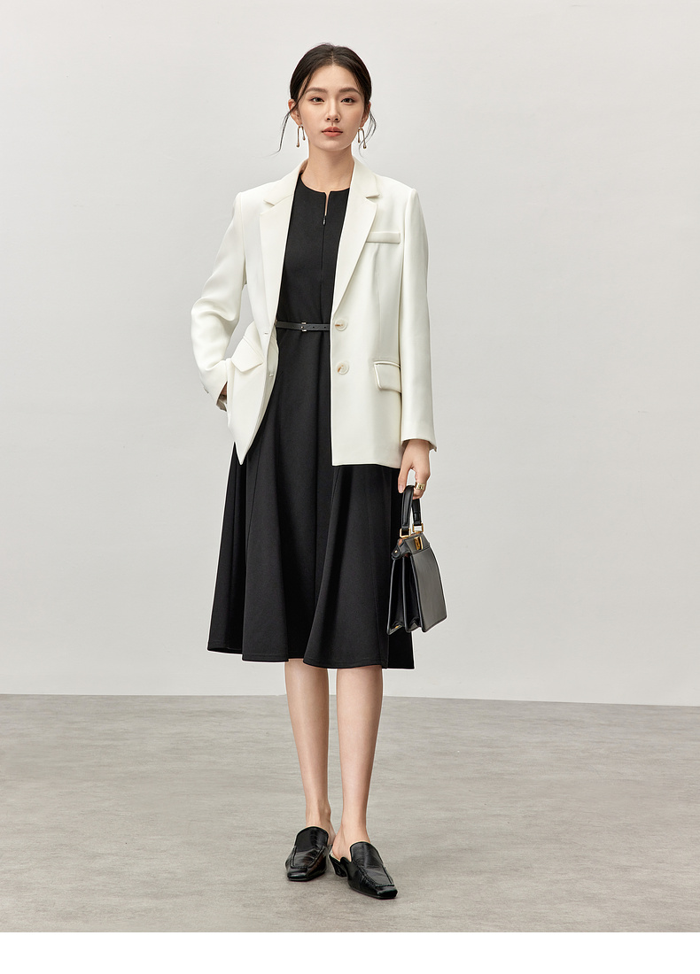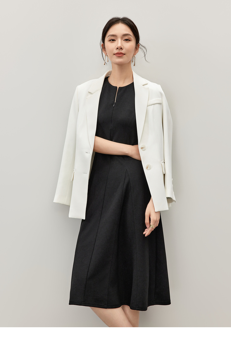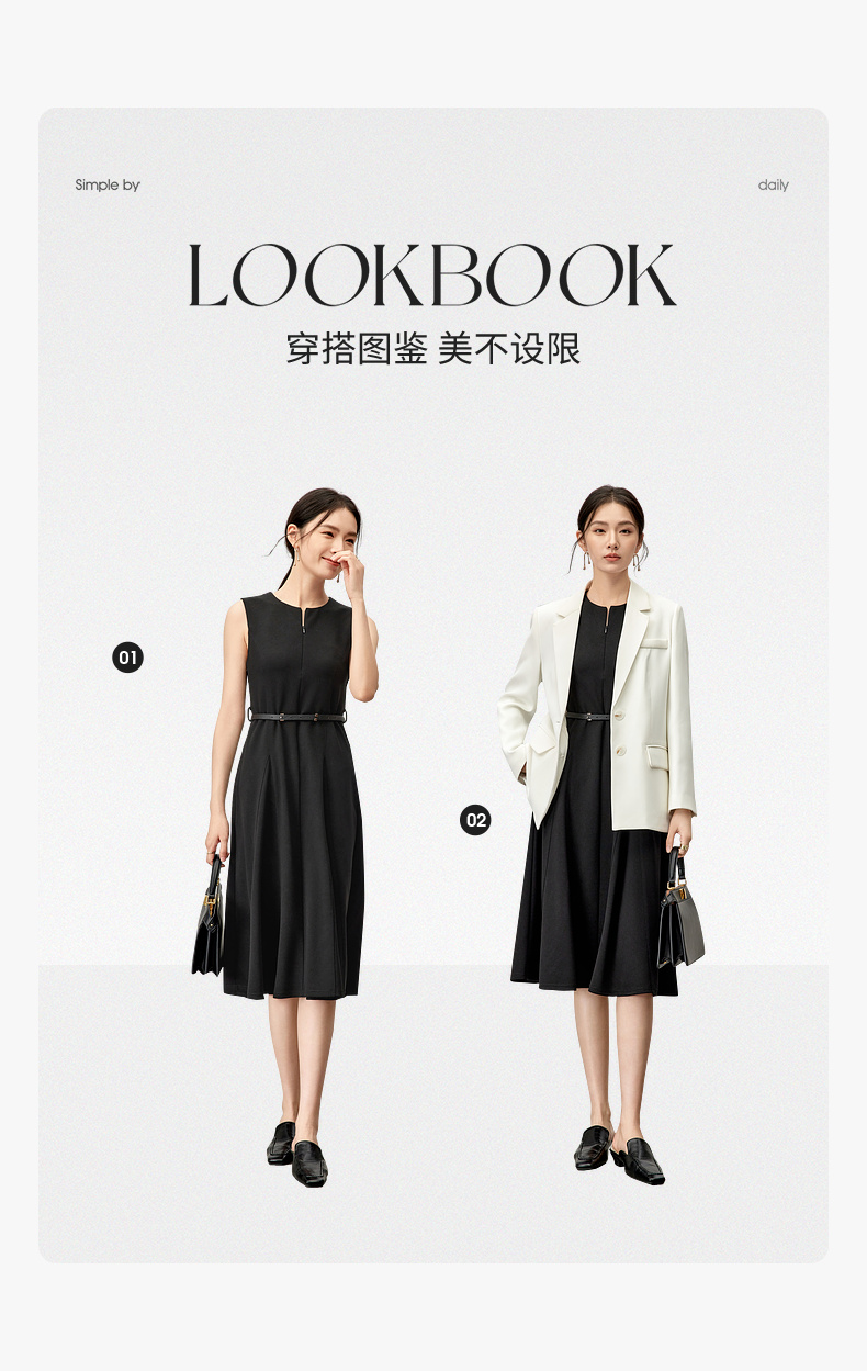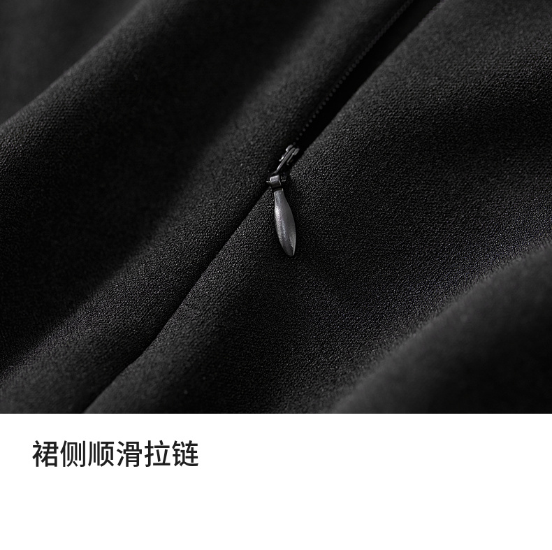 【内购】拉链半开小圆领无袖收腰显瘦气质背心连衣裙长款黑色赫本风裙子-151L57383