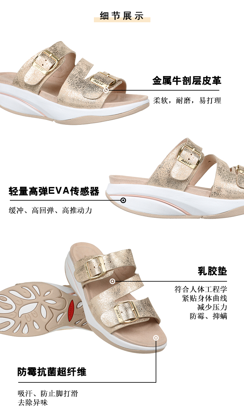 MBT足健康鞋 女厚底 凉拖鞋足弓支撑拉伸小腿增高防滑 金属色KACE