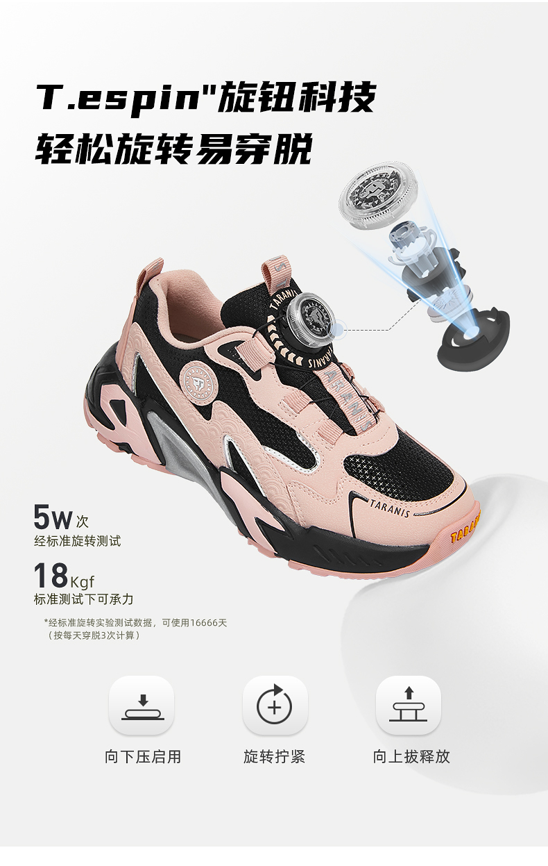泰兰尼斯儿童运动鞋2026年春季新款男女童运动鞋时尚旋钮跑步鞋T01X6A8688