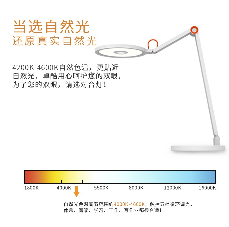 卓酷(JOCU)H8国A级减蓝光护眼台灯LED工作阅读触控调光儿童学生学习台灯ZK