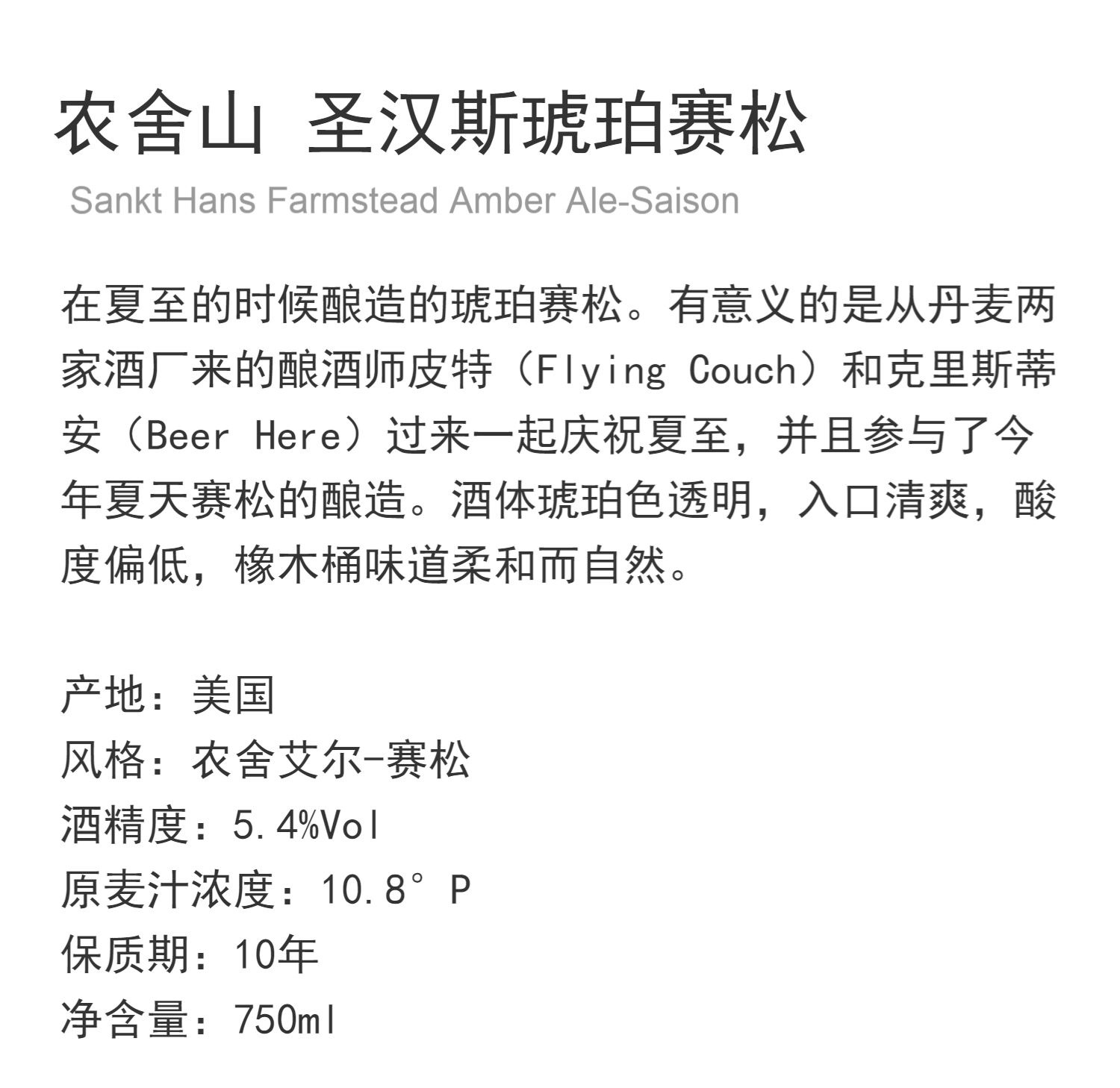 农舍山圣汉斯啤酒