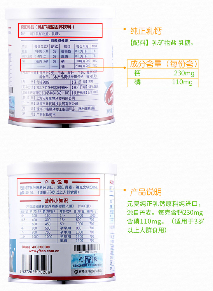 元复宝纯正乳钙90G