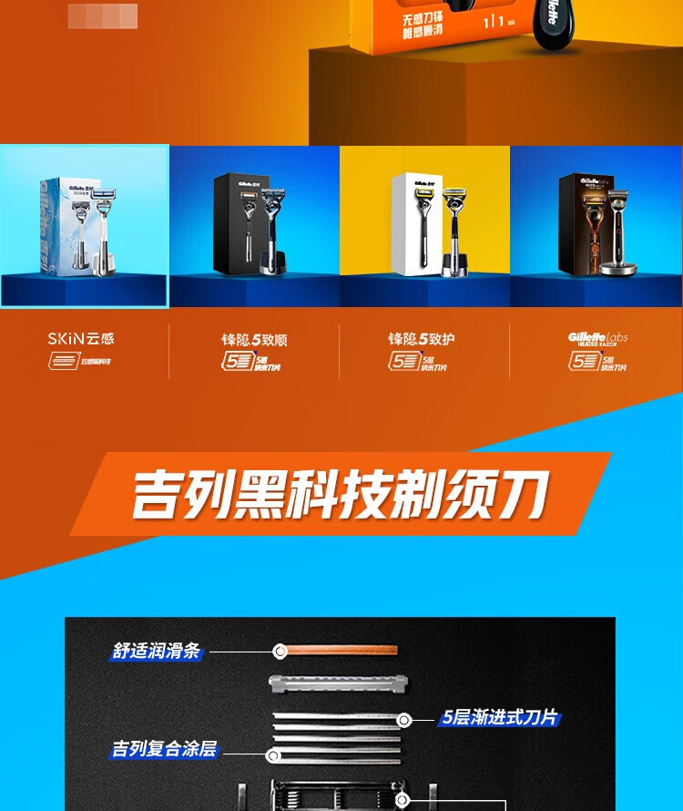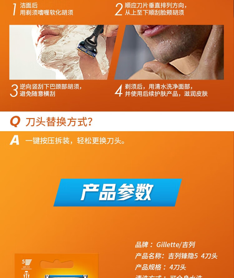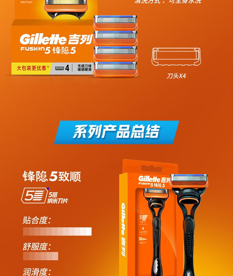 吉列锋隐5层刀片(4刀头)