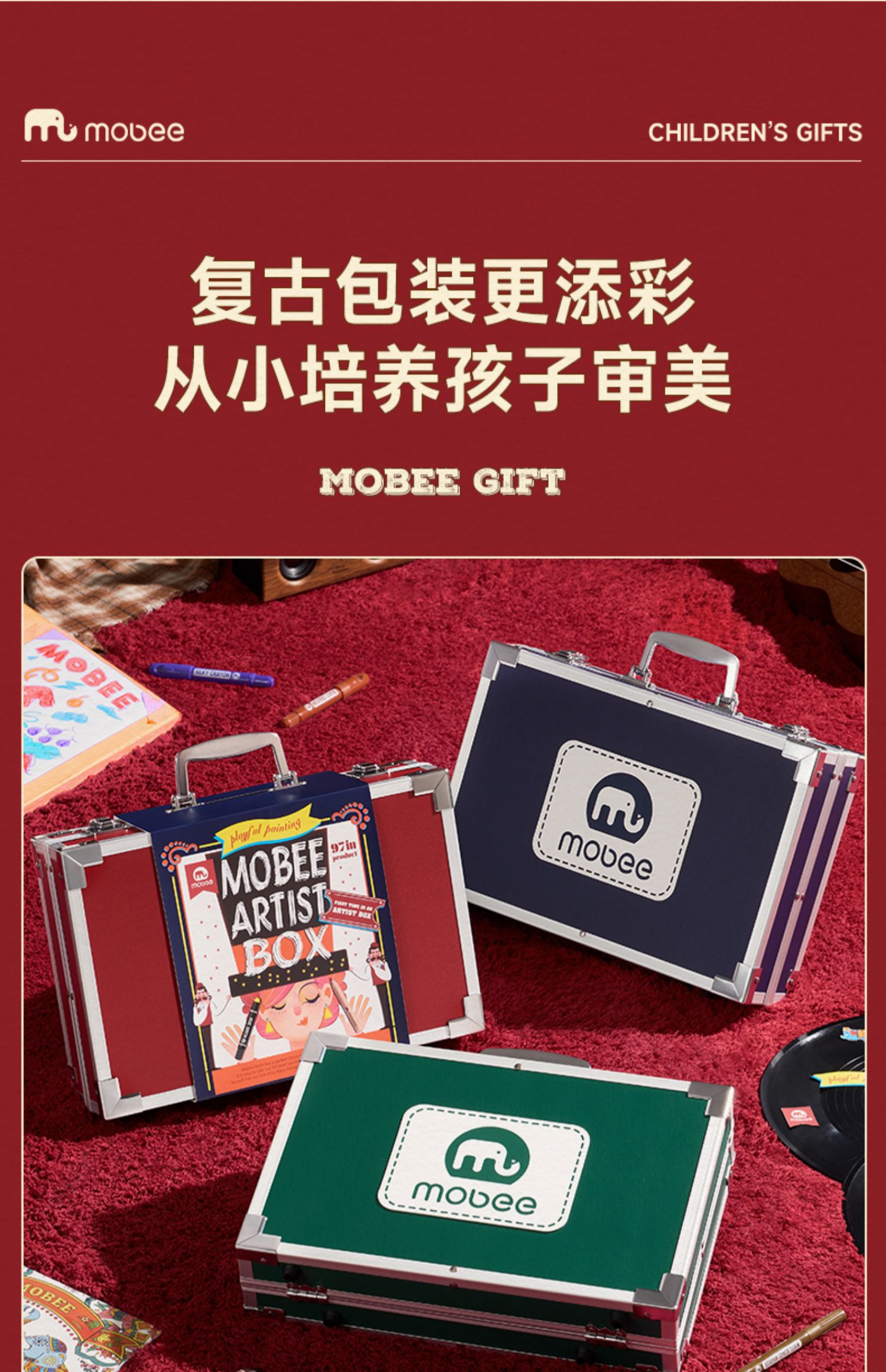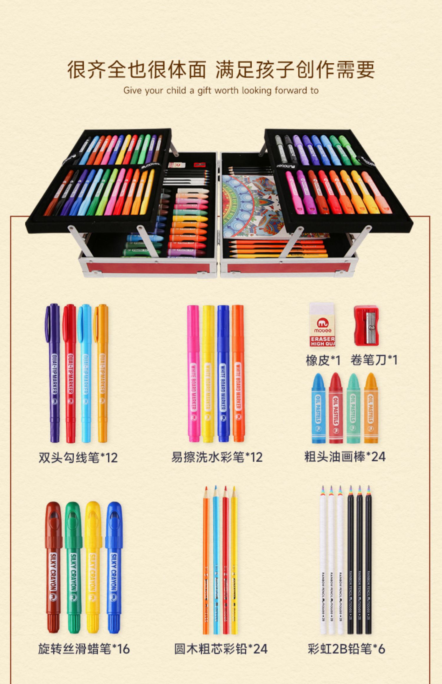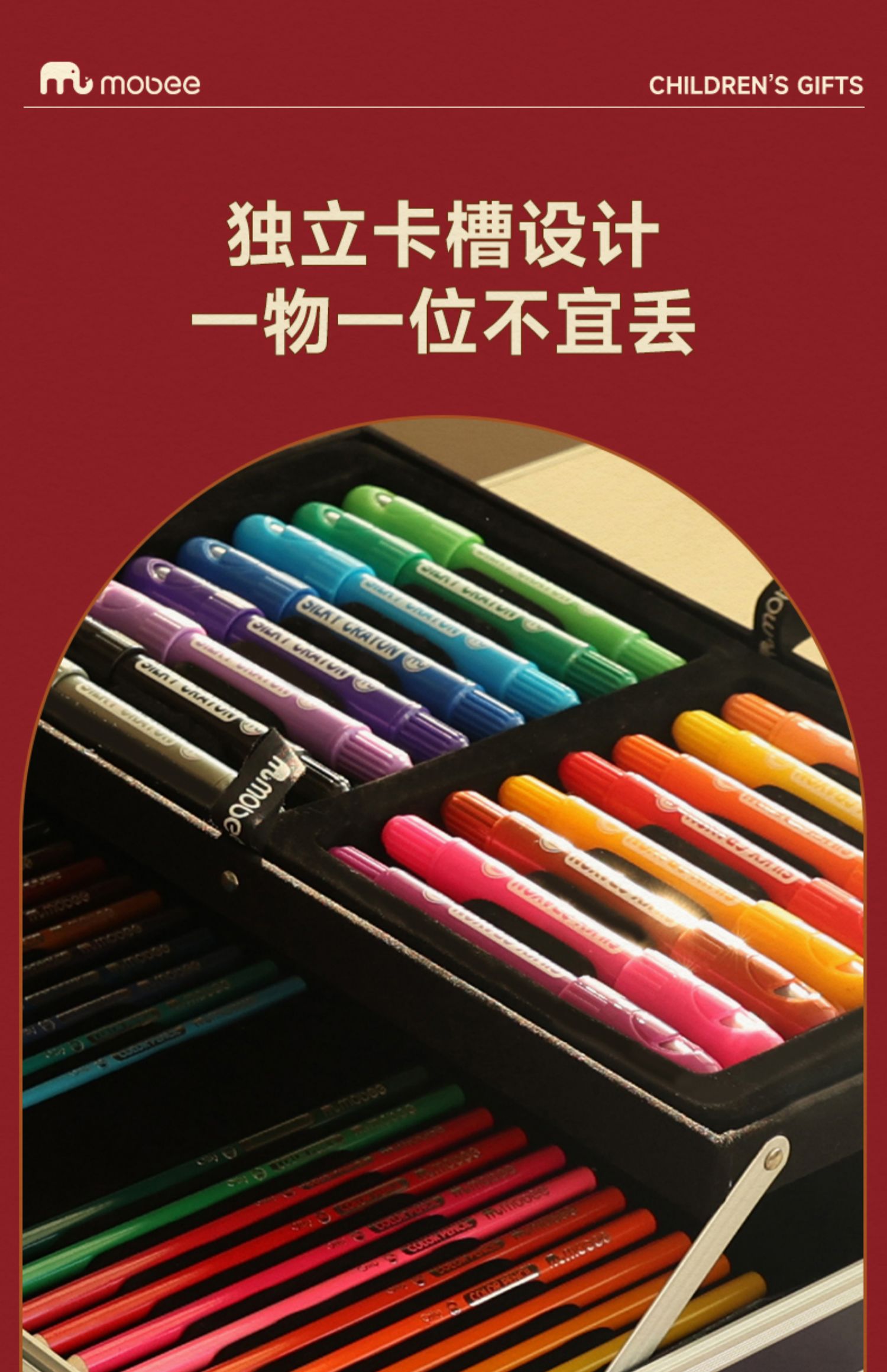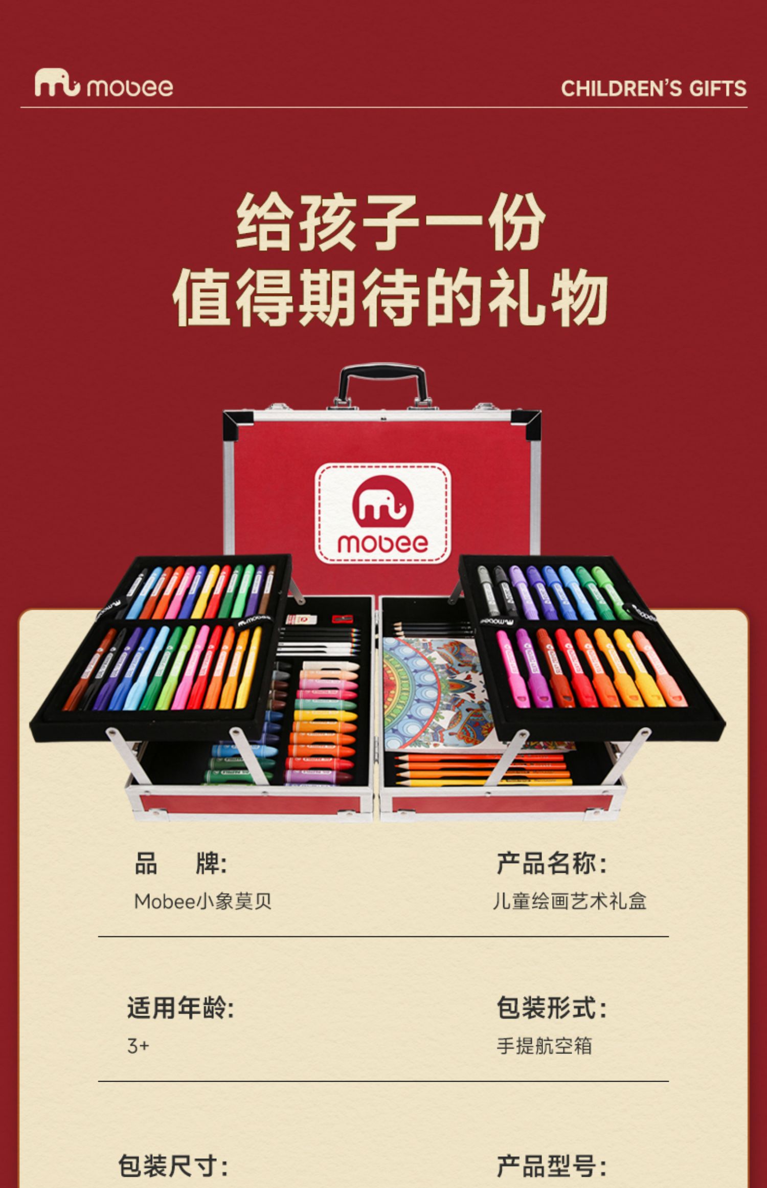 Mobee 绘画套装 新春款儿童水彩笔画笔礼盒蜡笔画画工具小学生绘画套装美术彩色笔幼儿园可水洗彩笔生日男孩女孩新年礼物(包装图案随机)