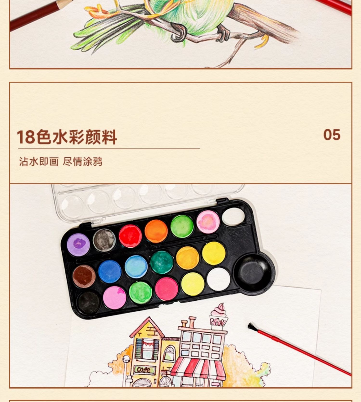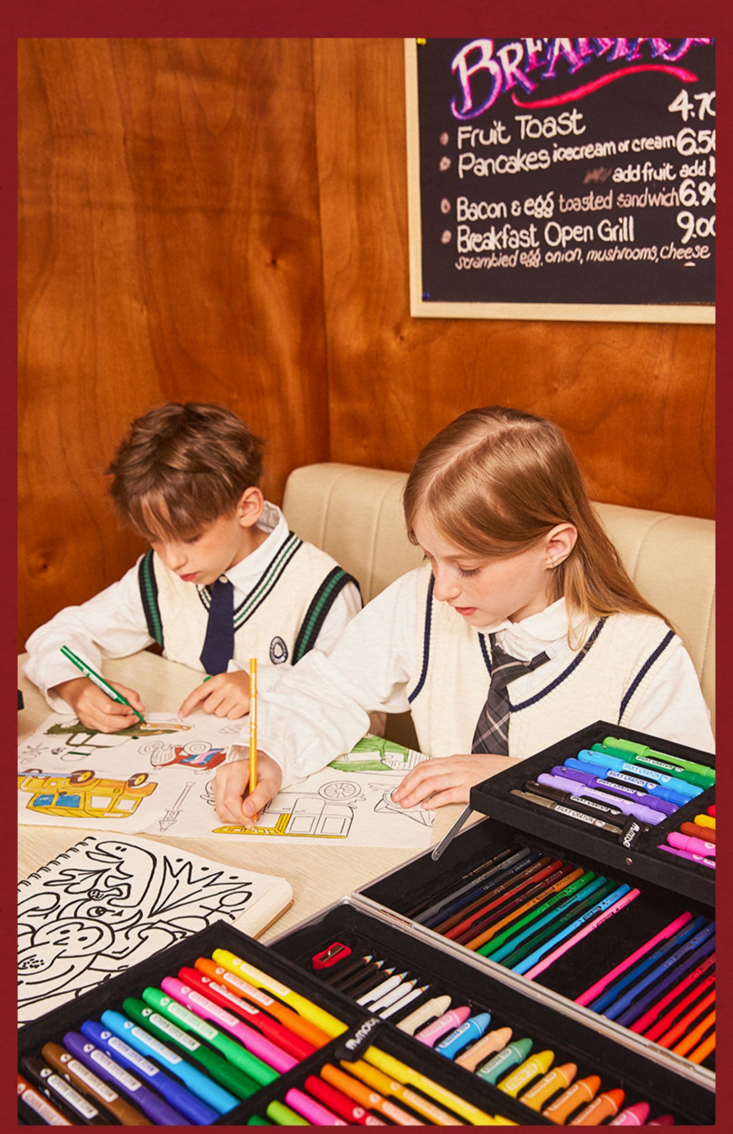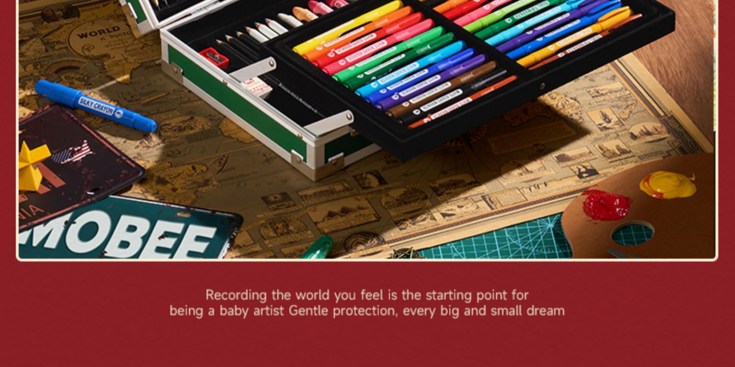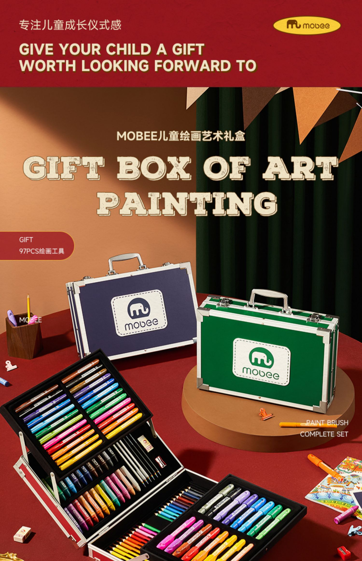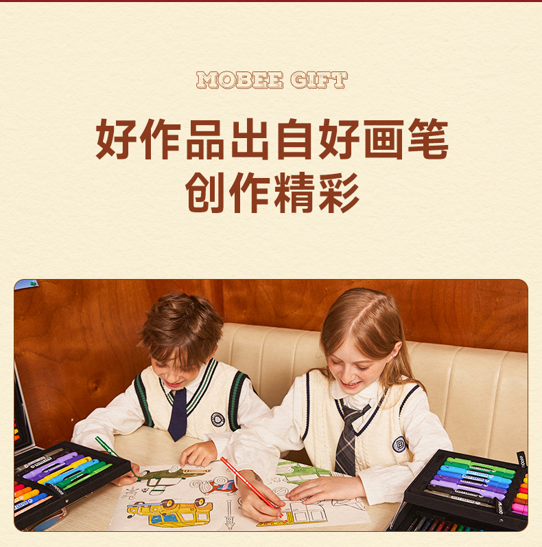 Mobee 绘画套装 新春款儿童水彩笔画笔礼盒蜡笔画画工具小学生绘画套装美术彩色笔幼儿园可水洗彩笔生日男孩女孩新年礼物(包装图案随机)