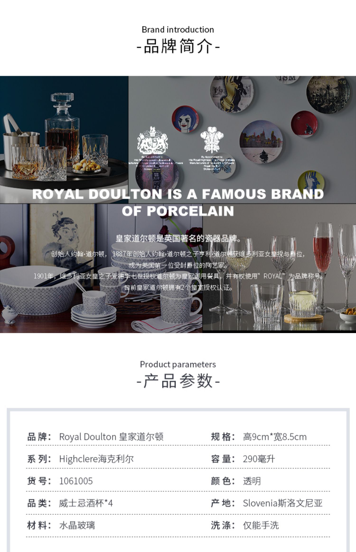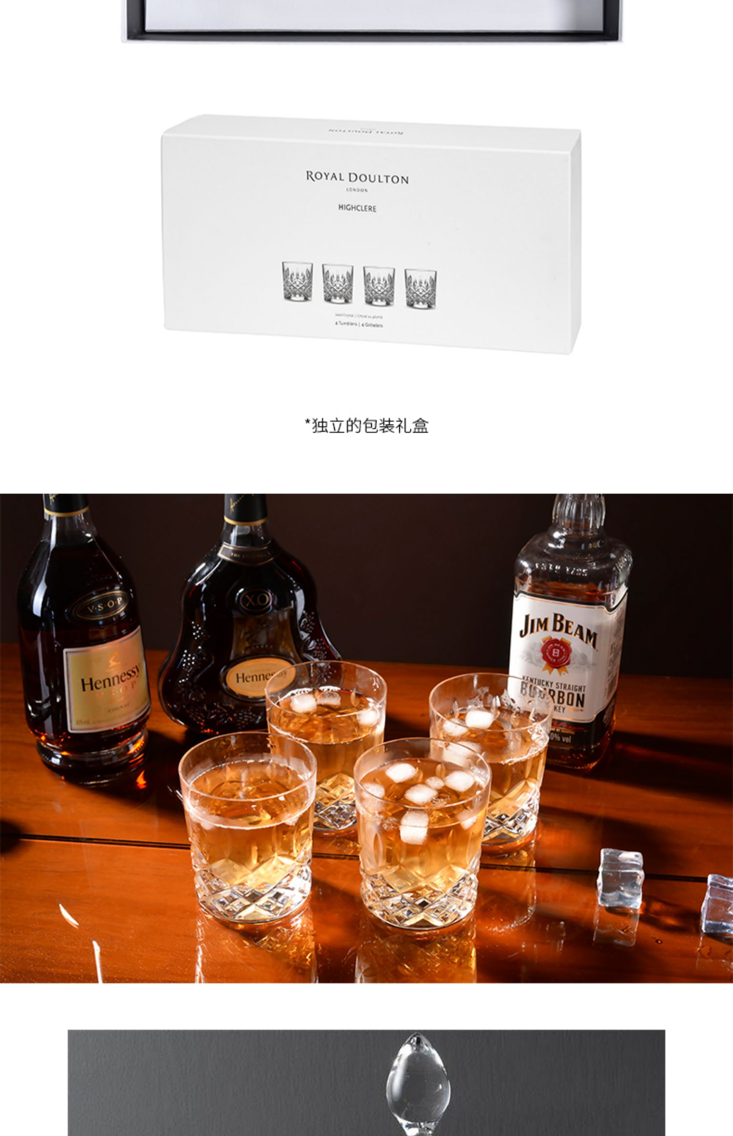 Royal Doulton 海克利尔烈酒杯四件套 水晶玻璃酒杯 威士忌酒杯朗姆酒杯