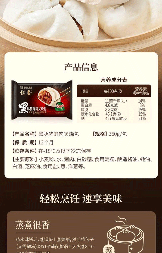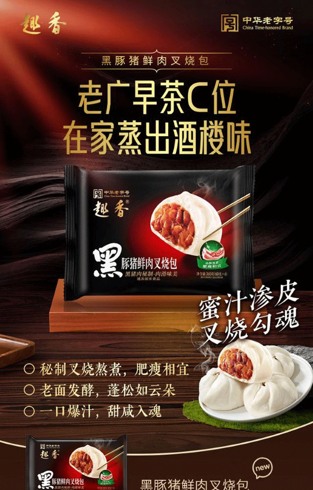 趣香黑豚猪鲜肉叉烧包360g/袋