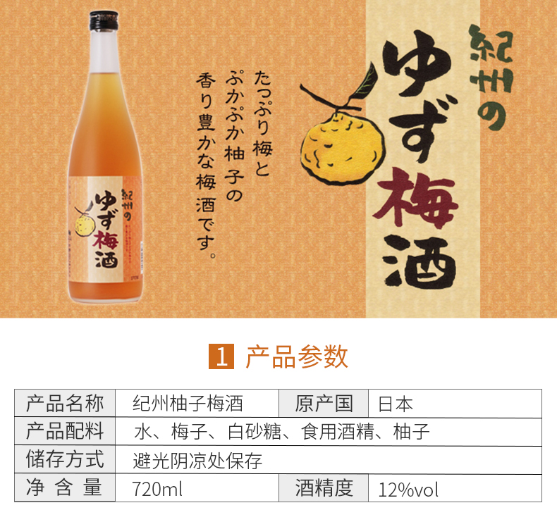 中野 纪州柚子梅酒 低度女士果酒微醺