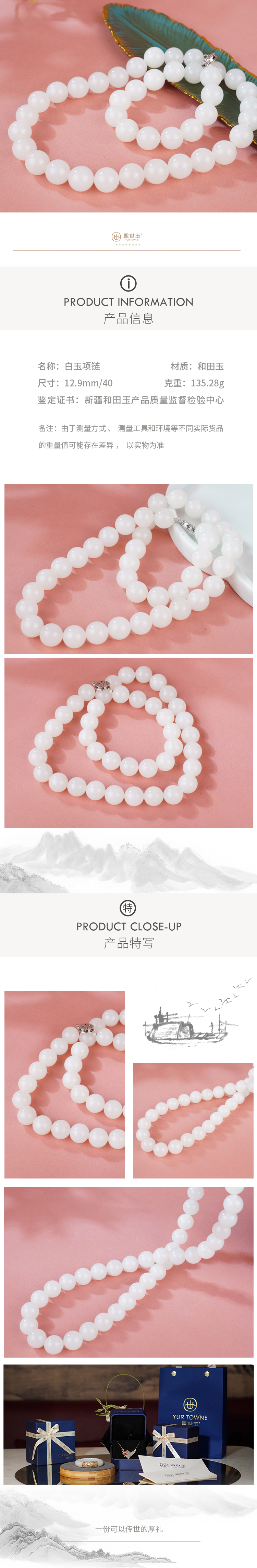 新疆国玉盟世玉【皎玉芳心】和田白玉项链【带证书·顺丰物流】