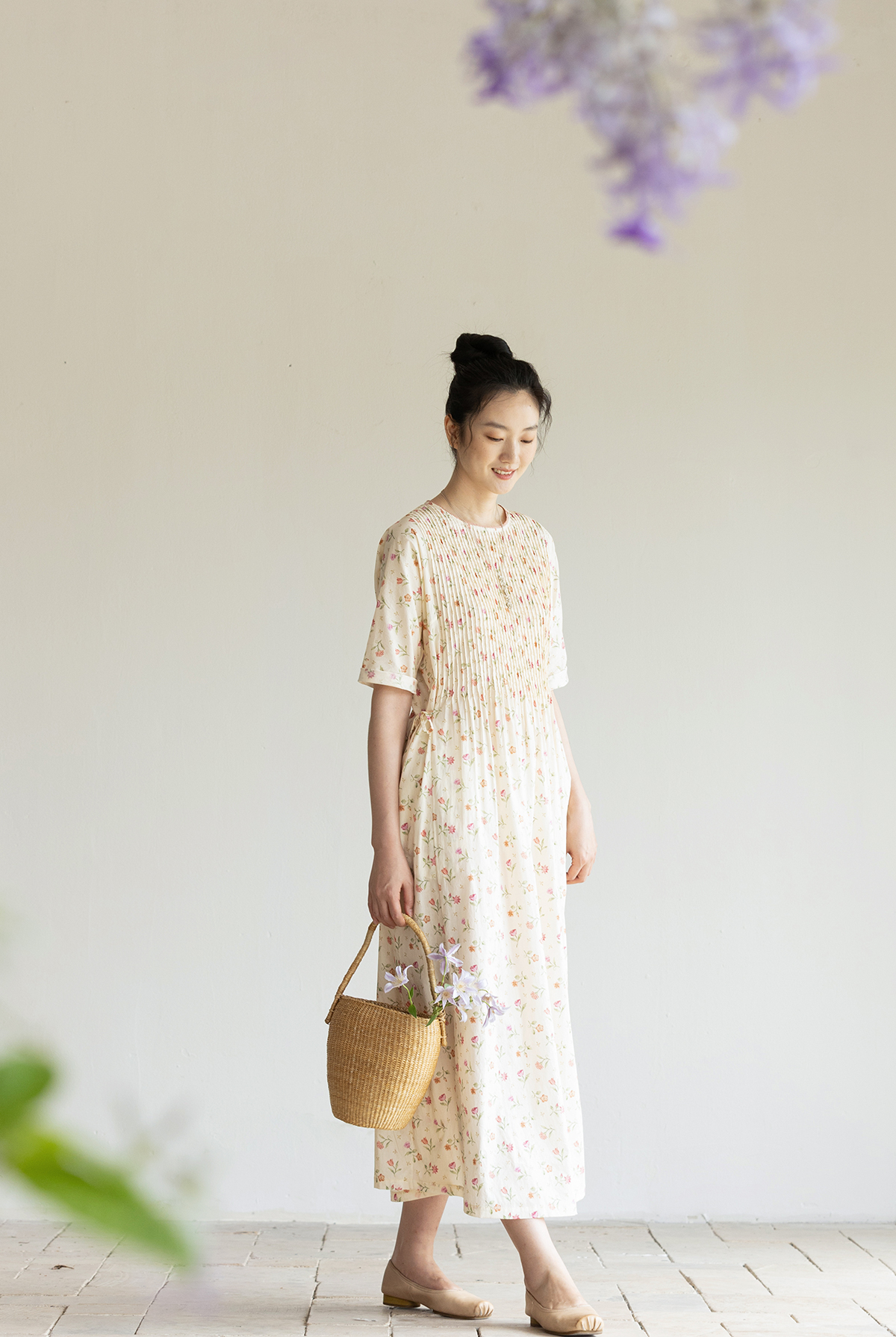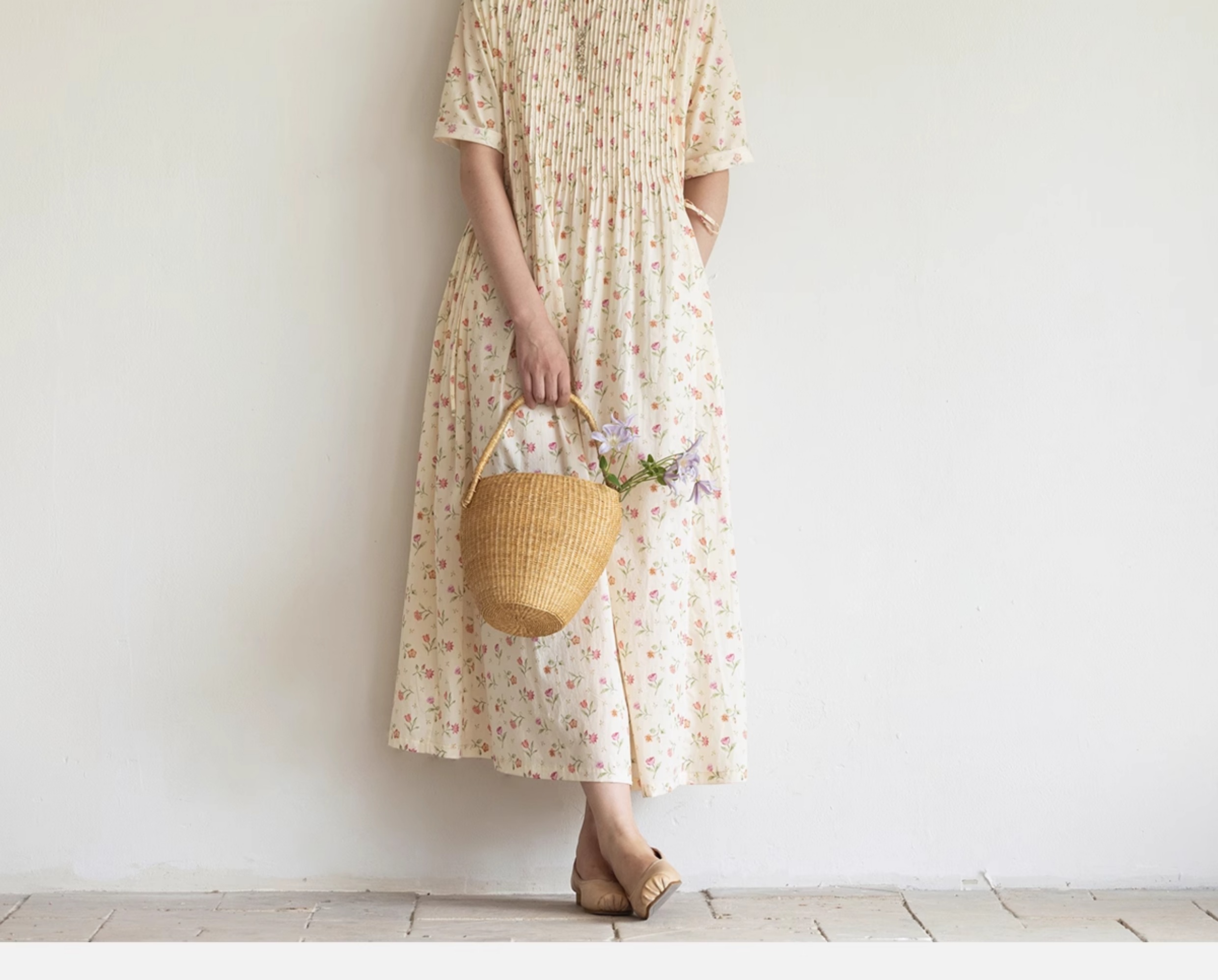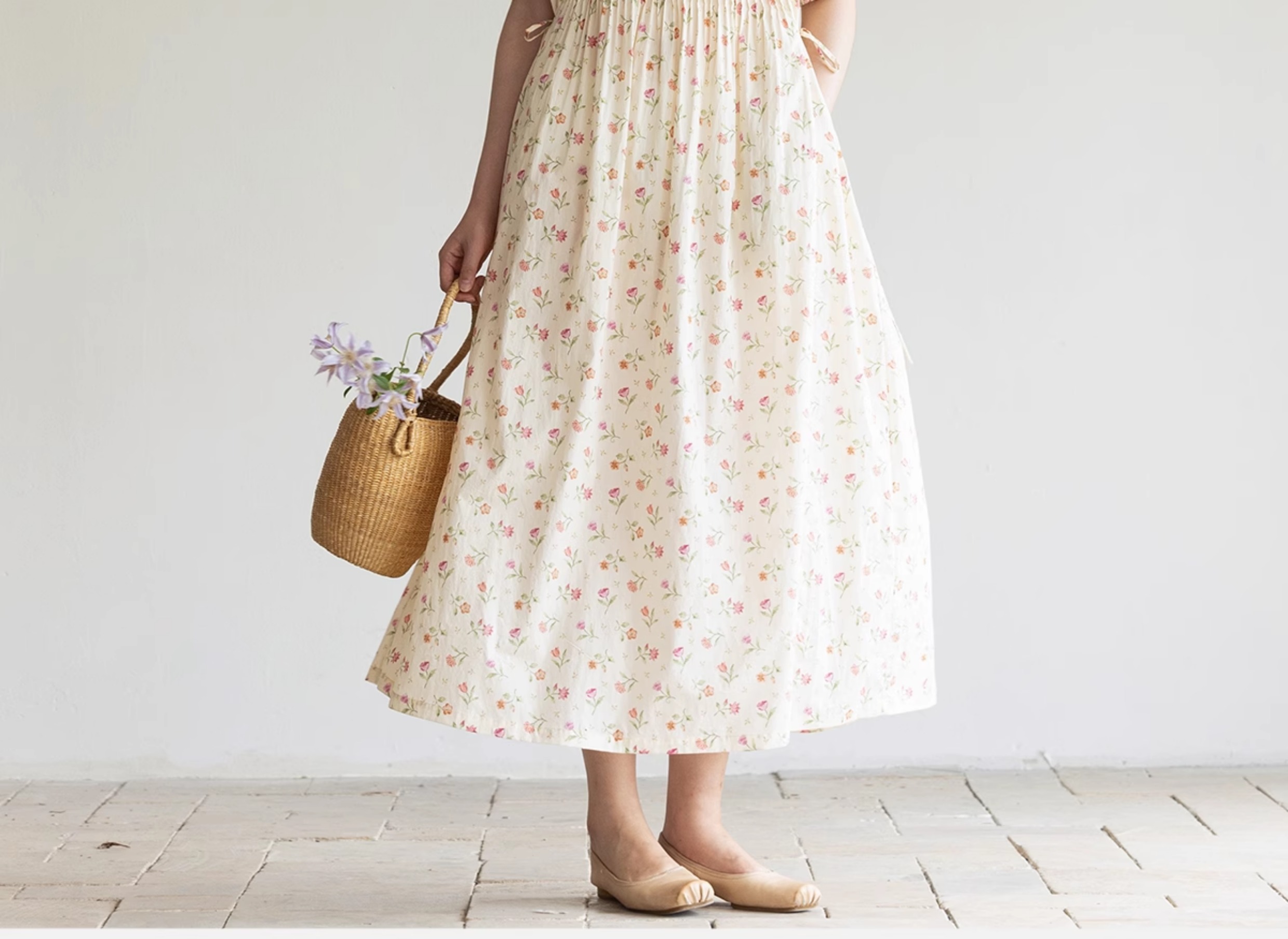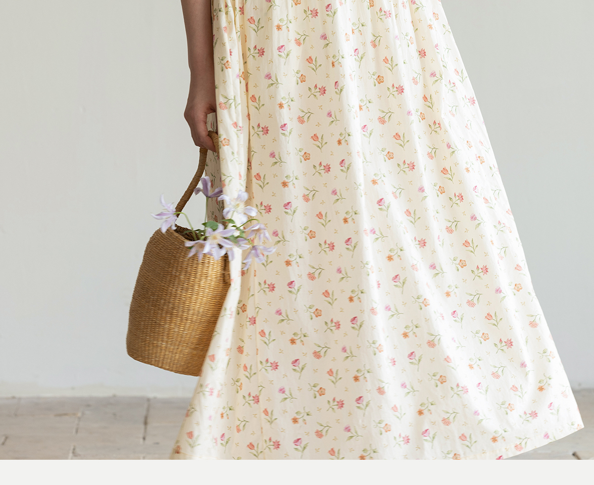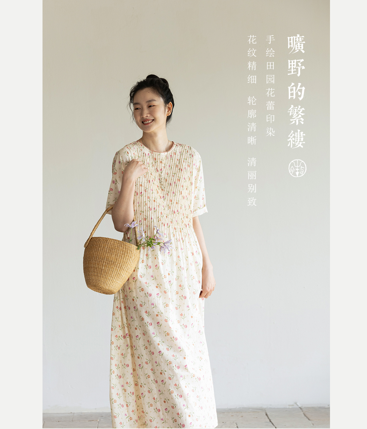 牧衣游原创 长绒棉印花连衣裙新款轻薄文艺复古气质长裙 今晚夏