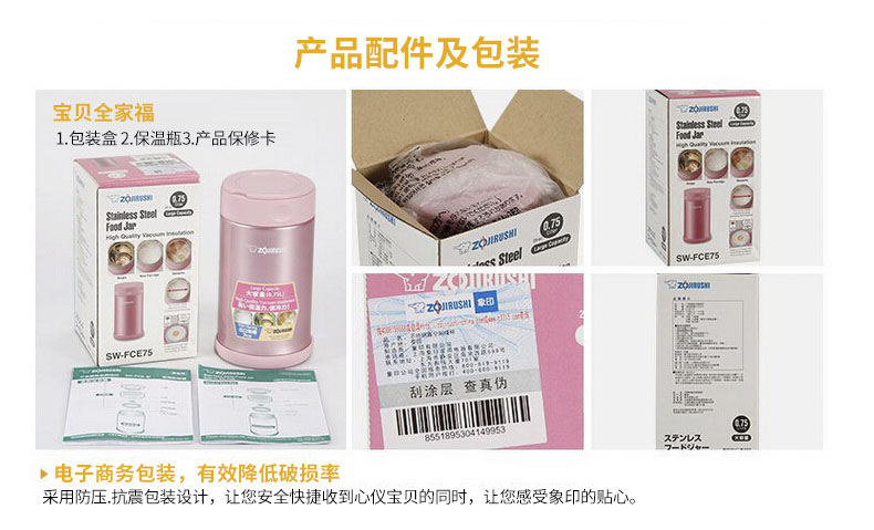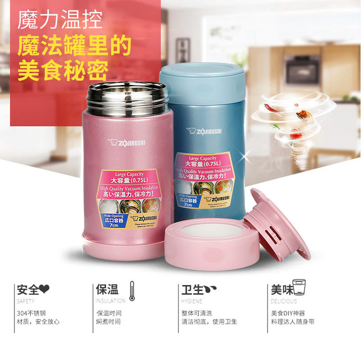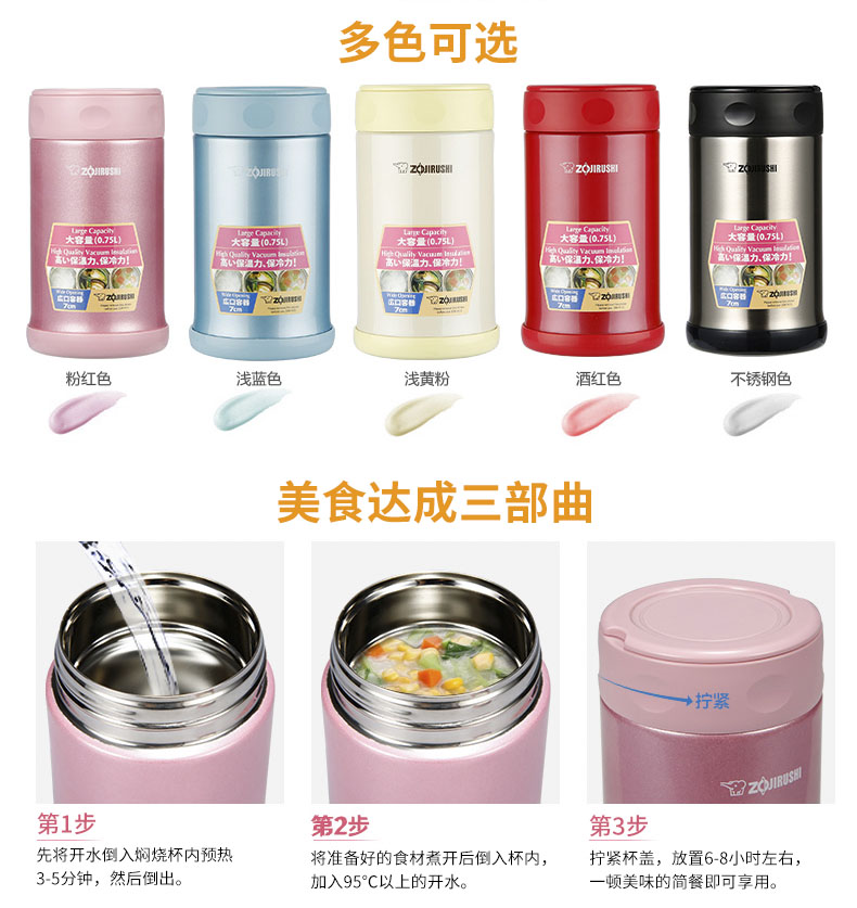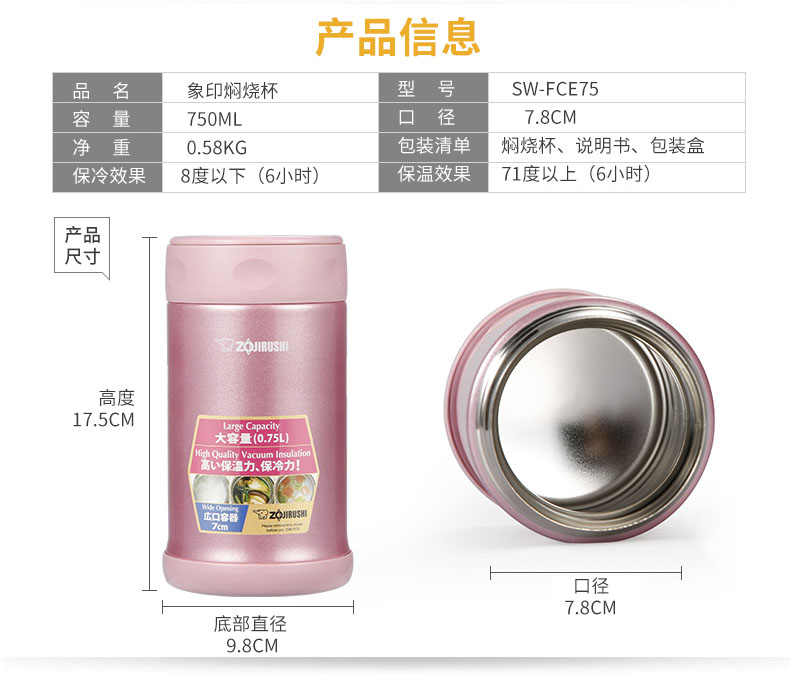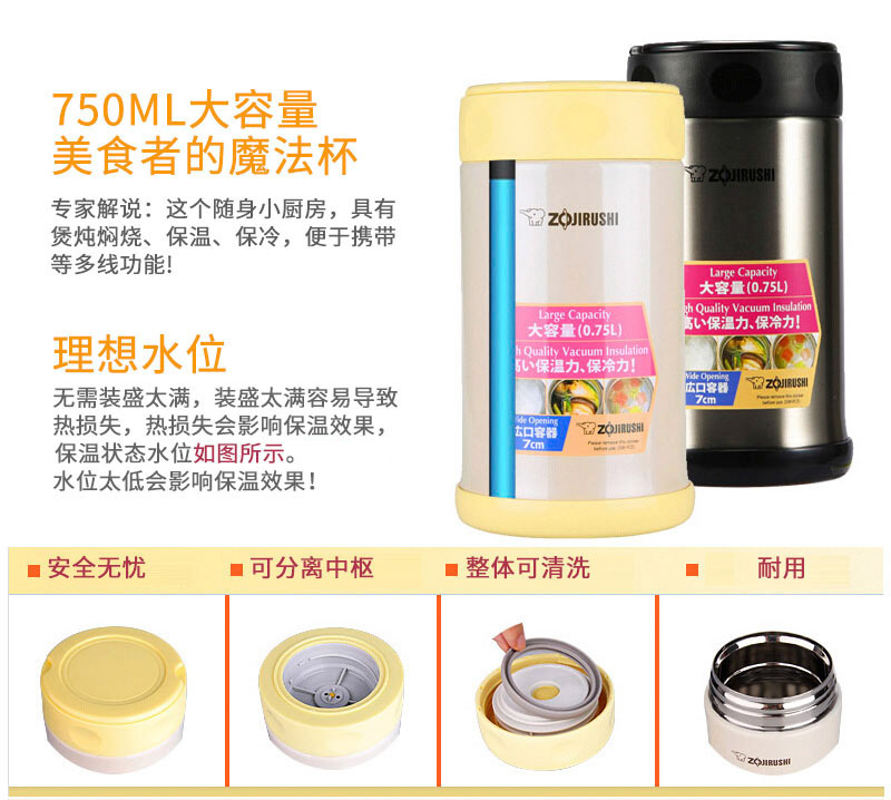 象印进口不锈钢真空焖烧杯750ml大容量焖烧罐焖粥神器FCE75便携食物罐 米黄色