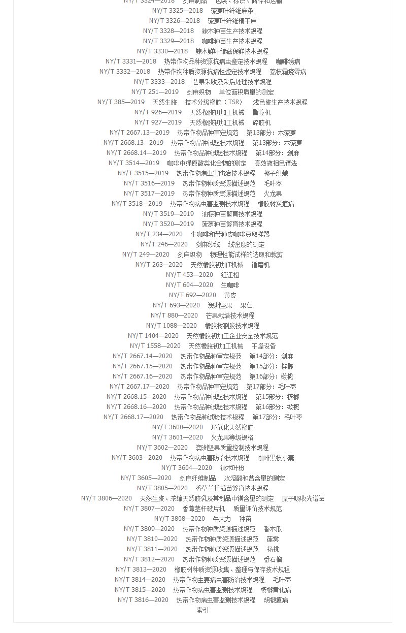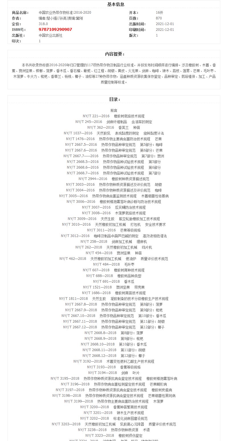中国农业热带作物标准:2016-2020【官方正版】