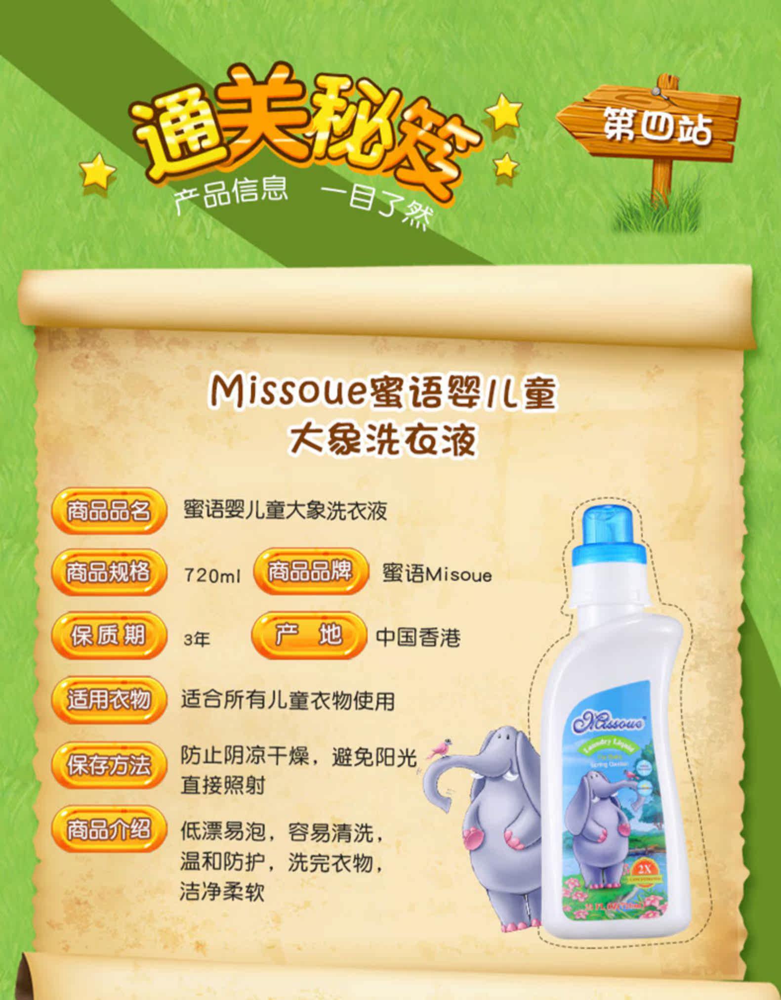 蜜语 婴童洗衣液 (大象长颈鹿2款可选)720ml