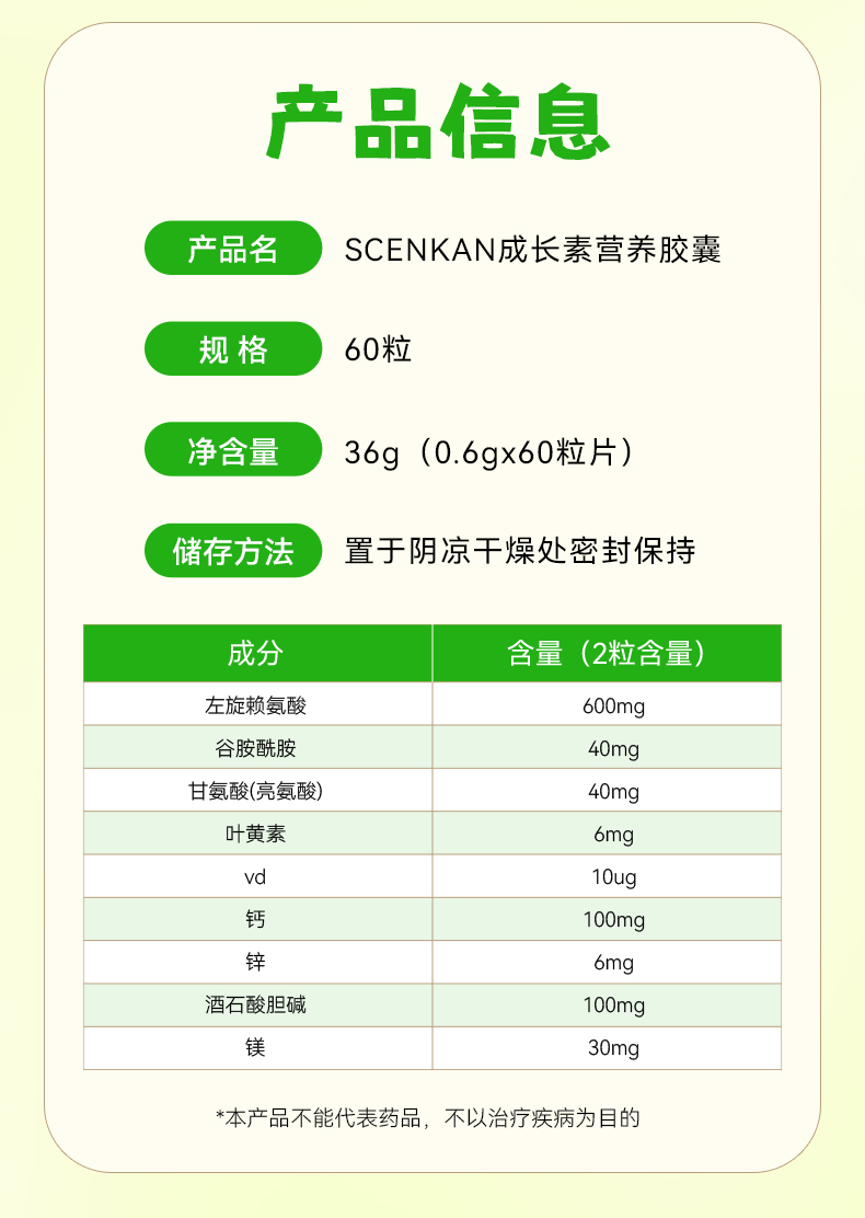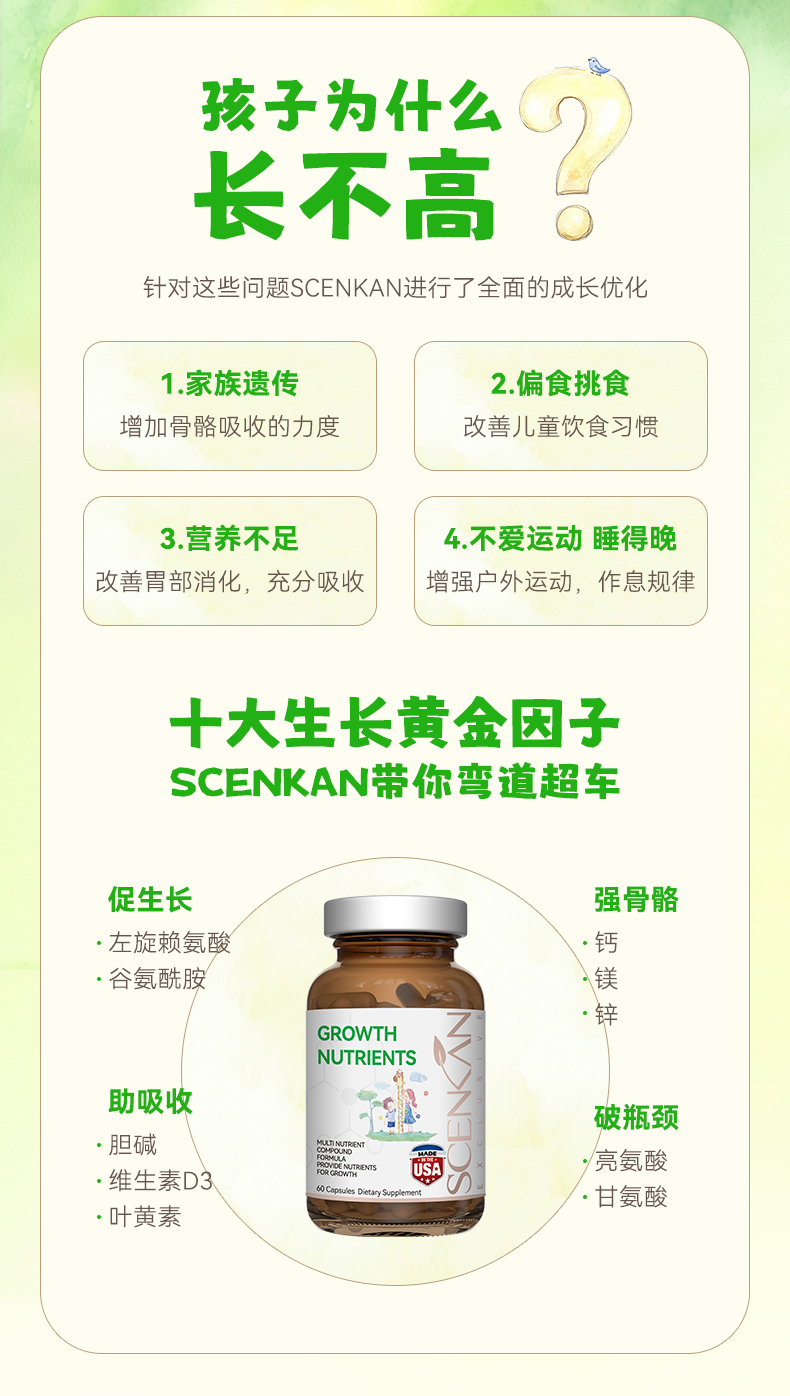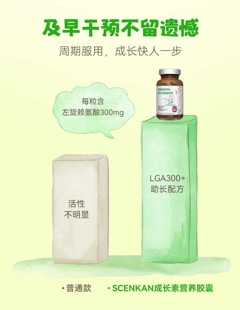 【Z】【scenkan生长素】成长赖氨酸补钙儿童青少年成长钙镁片4倍成长效力 LGA300+助长配方