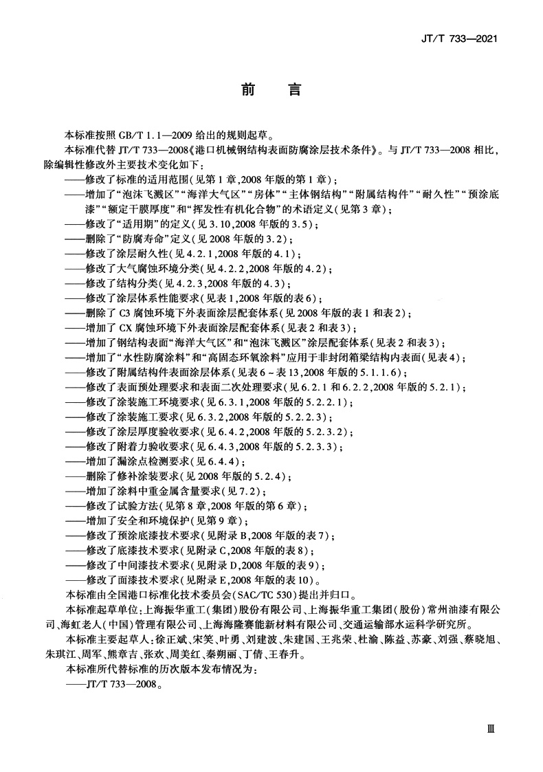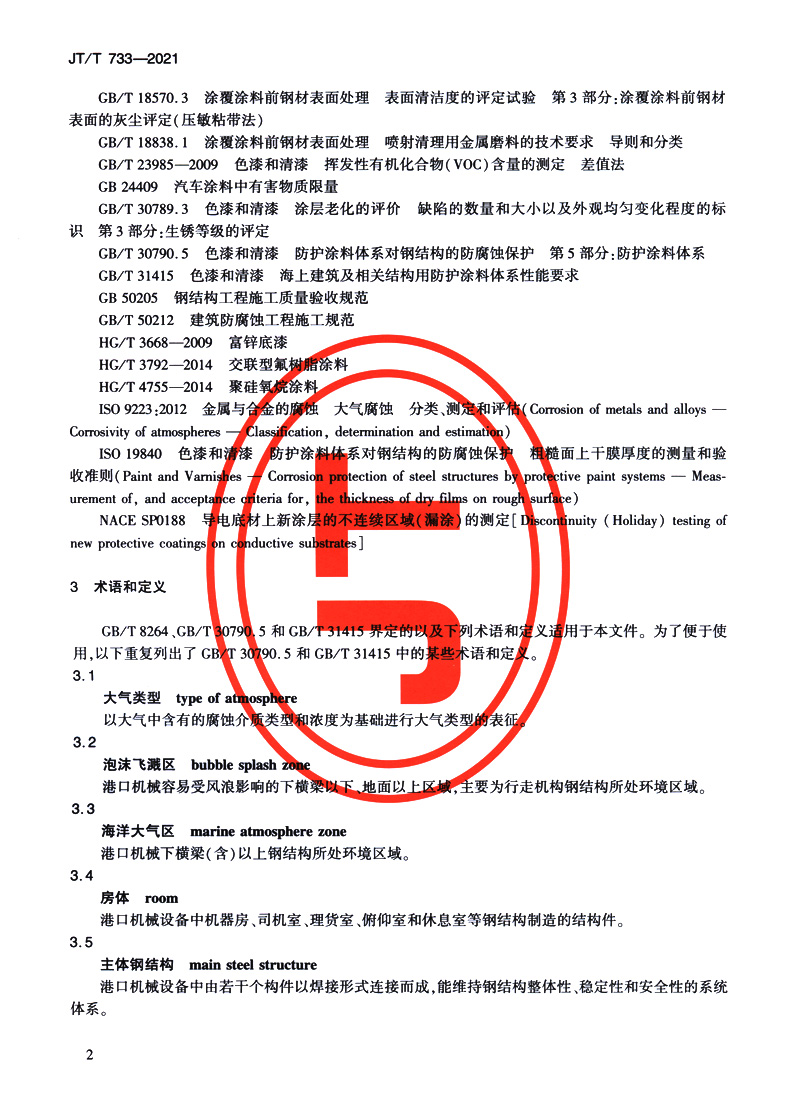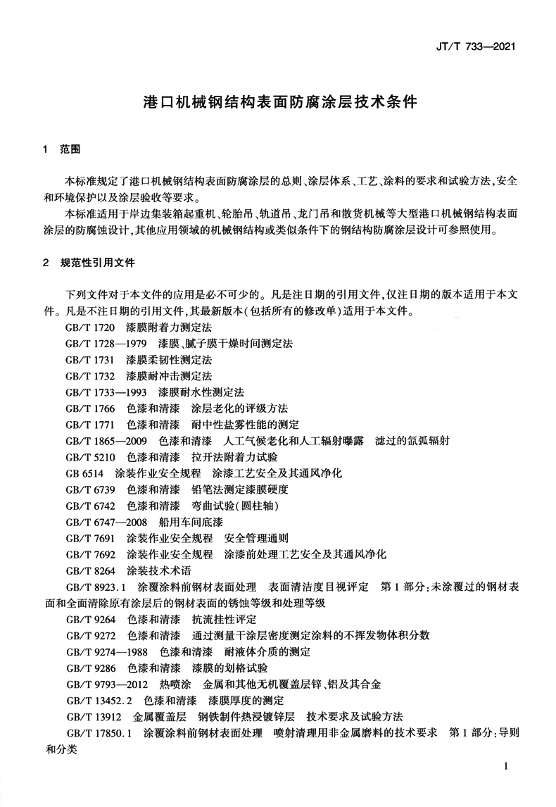 书名:港口机械钢结构表面防腐涂层技术条件(JT/T 733—2021)
