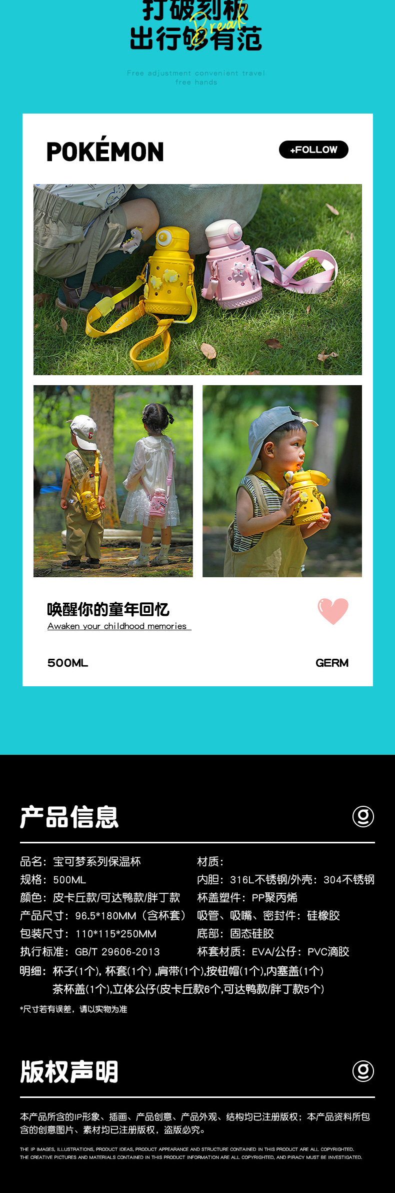 GERM 宝可梦系列保温杯(胖丁款/可达鸭款)