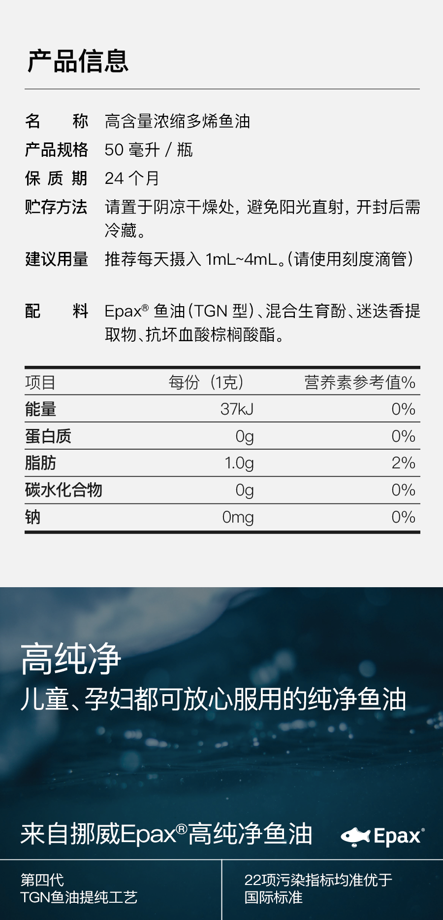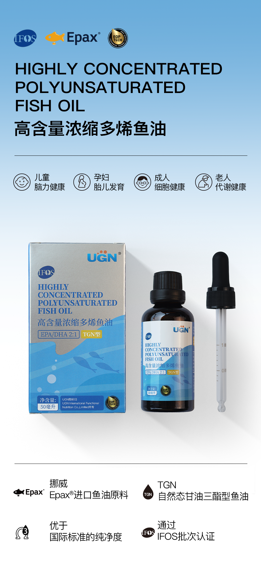 UGN高含量浓缩鱼油/第四代TGN型/去腥液体鱼油/儿童孕妇老年都可用的纯净鱼油(50毫升/瓶)